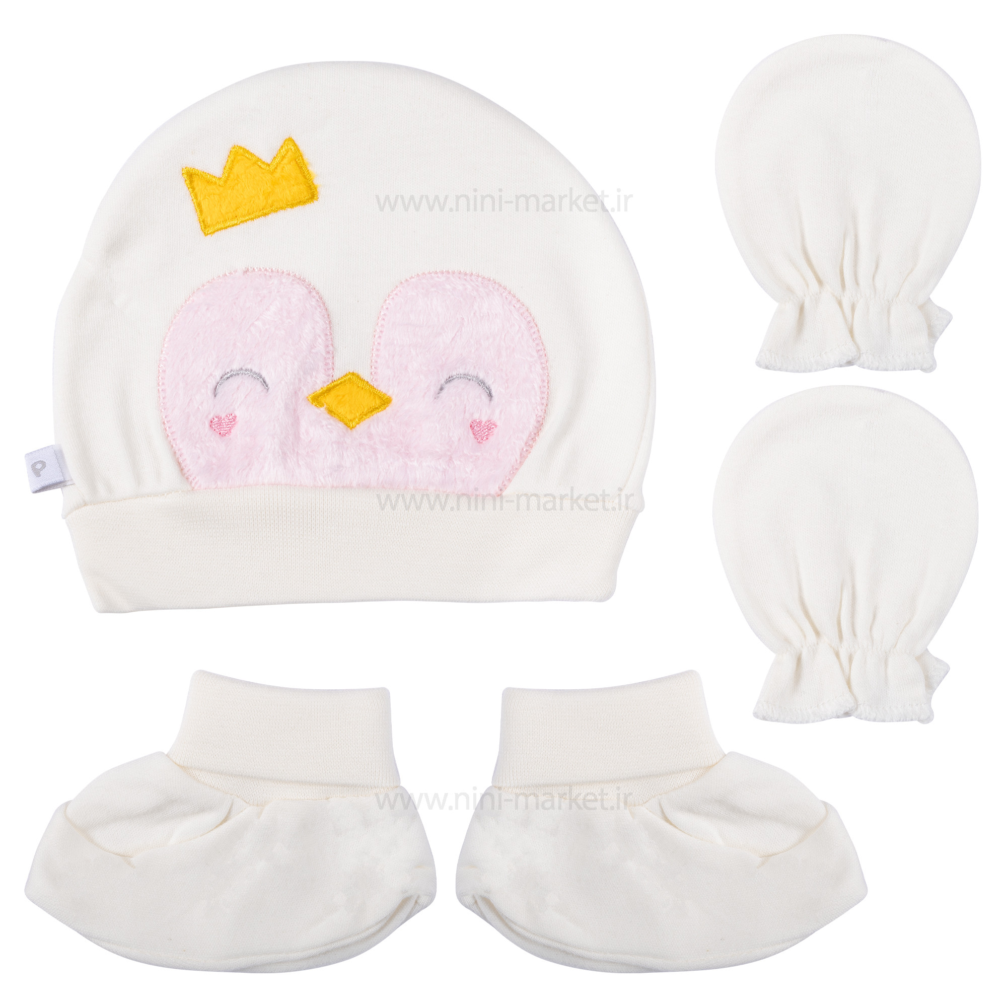 ست کلاه دستکش و پاپوش طرح پنگوئن رنگ سفید پاپو Papo