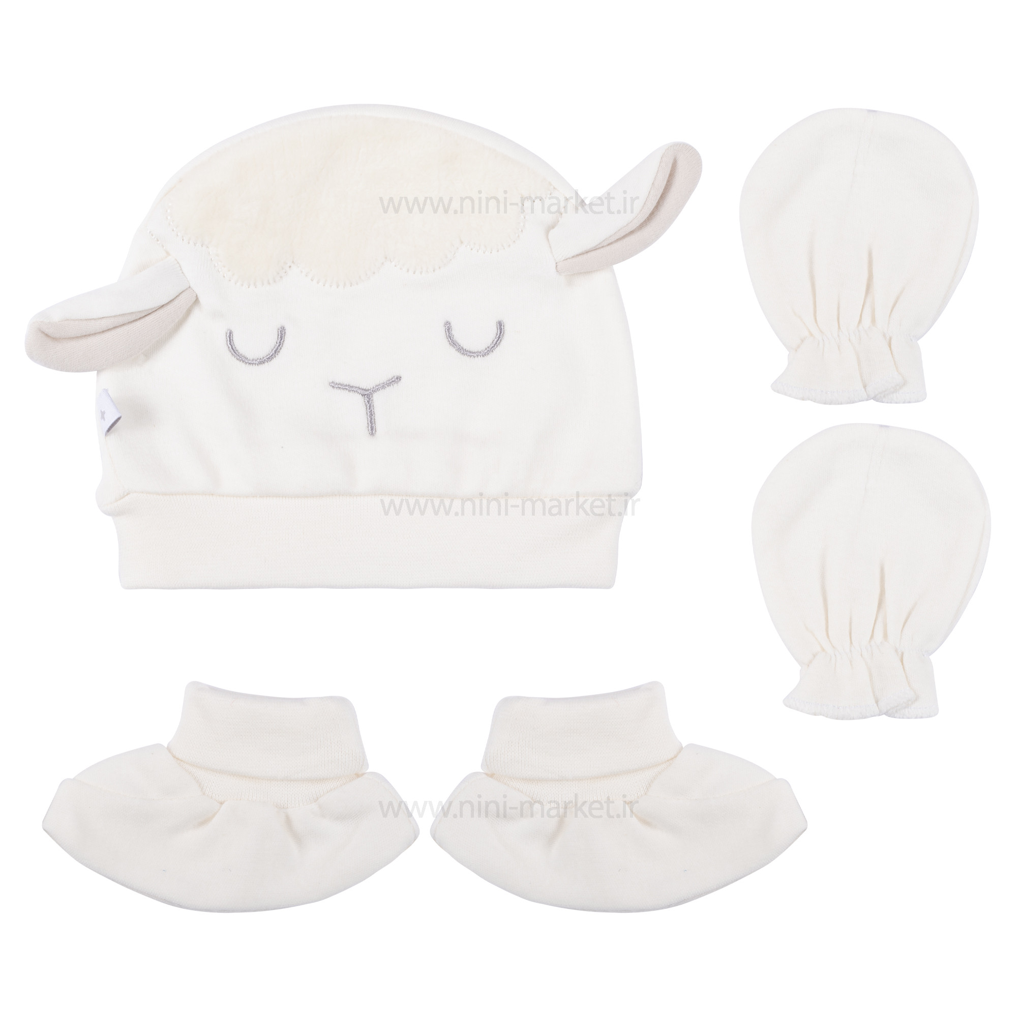 ست کلاه دستکش و پاپوش طرح بره رنگ سفید پاپو Papo