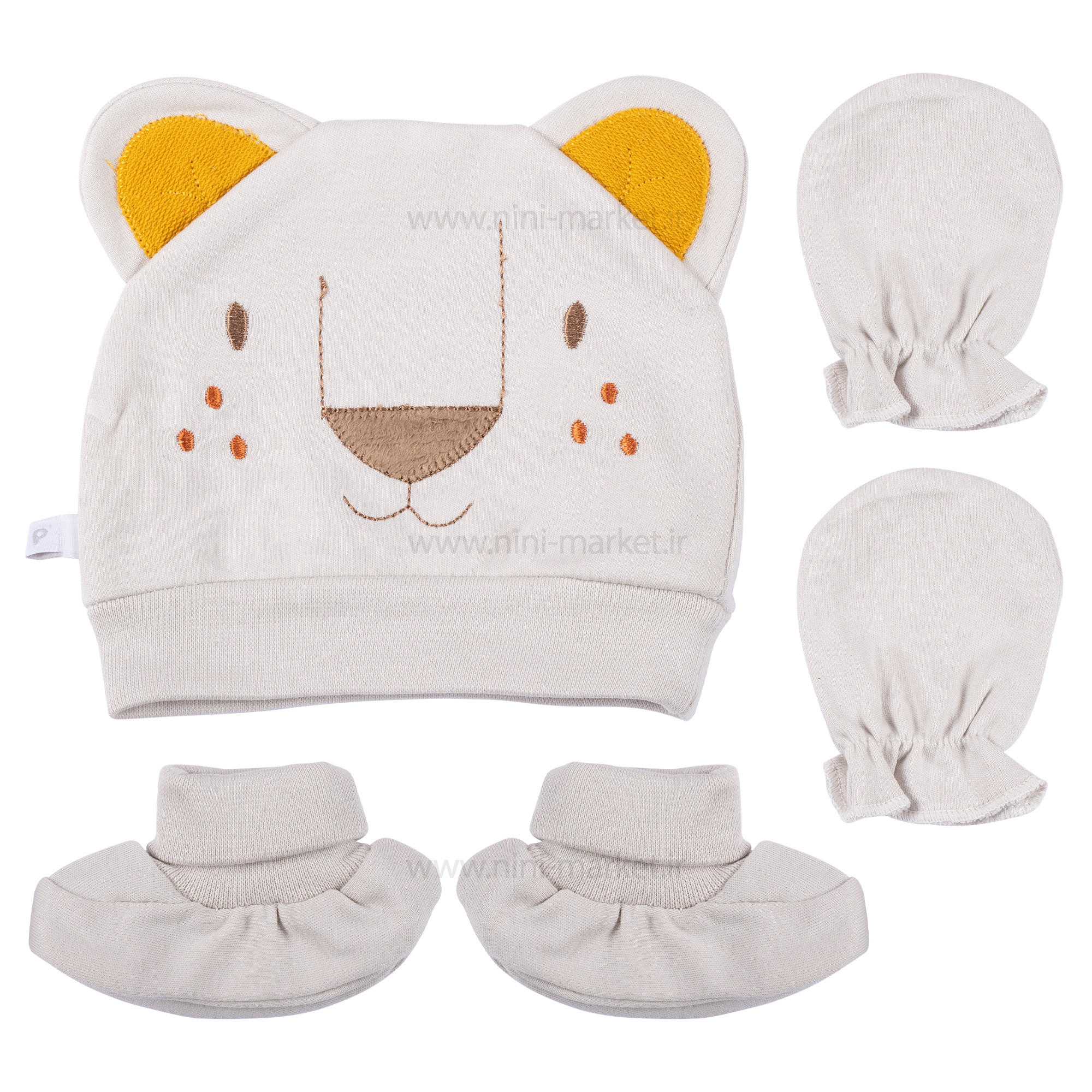 ست کلاه دستکش و پاپوش طرح شیر رنگ کرم پاپو Papo