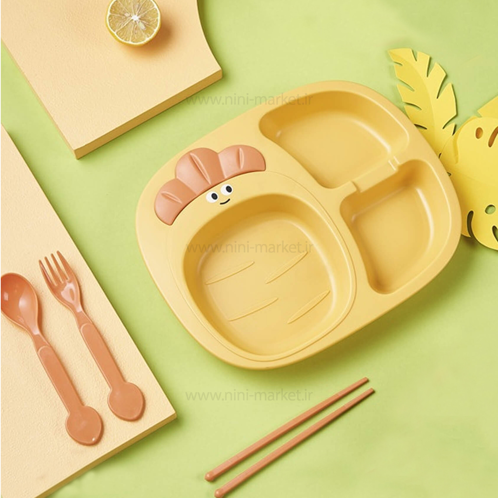 ظرف بامبو طرح هويج رنگ زرد منگلین Mengqilin یک ست زیبا و دوست داشتنی برای کودکان دلبندتان است . بین لوازم مورد نیاز نوزاد و کودک، وسایل مربوط به غذاخوری بسیار مهم و حائز اهمیت هستند.لوازم بزرگسالان به خاطر شکل و شمایل جدی و نداشتن رنگ های مورد علاقه ی بچه ها، خیلی کودک را برای غذاخوردن به وجد نمی آورند. طراحی جذاب این ظروف با طرح هویج که کودک را به خوردن غذا ترغیب کرده و تمایل کودک به غذا را بیشتر می کند. از طرفی جدا سازی ظروف مورد استفاده کودک از دیگر اعضای خانواده یک امر ضروری می باشد. ظرف غذا بامبو Mengqilin شامل : قاشق ، چنگال ، یک جفت چاپ استیک و یک ظرف چند اسلایدی برای خوردن انواع غذا و خوراکیها می باشد.یک هدیه مناسب برای کسانی که تازه شروع کردن به غذا خوردن . بشقاب تقسیم با سه بخش مختلف برای قرار دادن انواع خوراکی های متنوع است. داشتن یک بشقاب بخش بندی سبب می شود نیازی نباشد چندین ظرف مختلف را روی میز قرار دهید.ست قاشق چنگال با داشتن دسته های بلند مناسب و راحت برای به دست گرفتن کودک است. تحمل دما از 20- تا 120 درجه سانتیگراد است؛ بنابراین می توانید آن را داخل فریزر یا مایکرویو قرار دهید. ظرف غذا هویج فاقد مواد مضر و شیمیایی است؛ بنابراین نگرانی بابت استفاده از آن نداشته باشید.