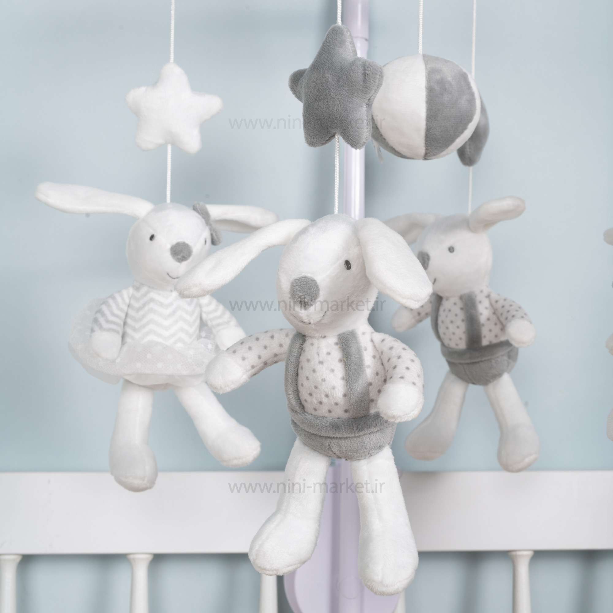 آويز بالای تخت طرح خرگوش سفید طوسی یانیک تویز Yanic Toys