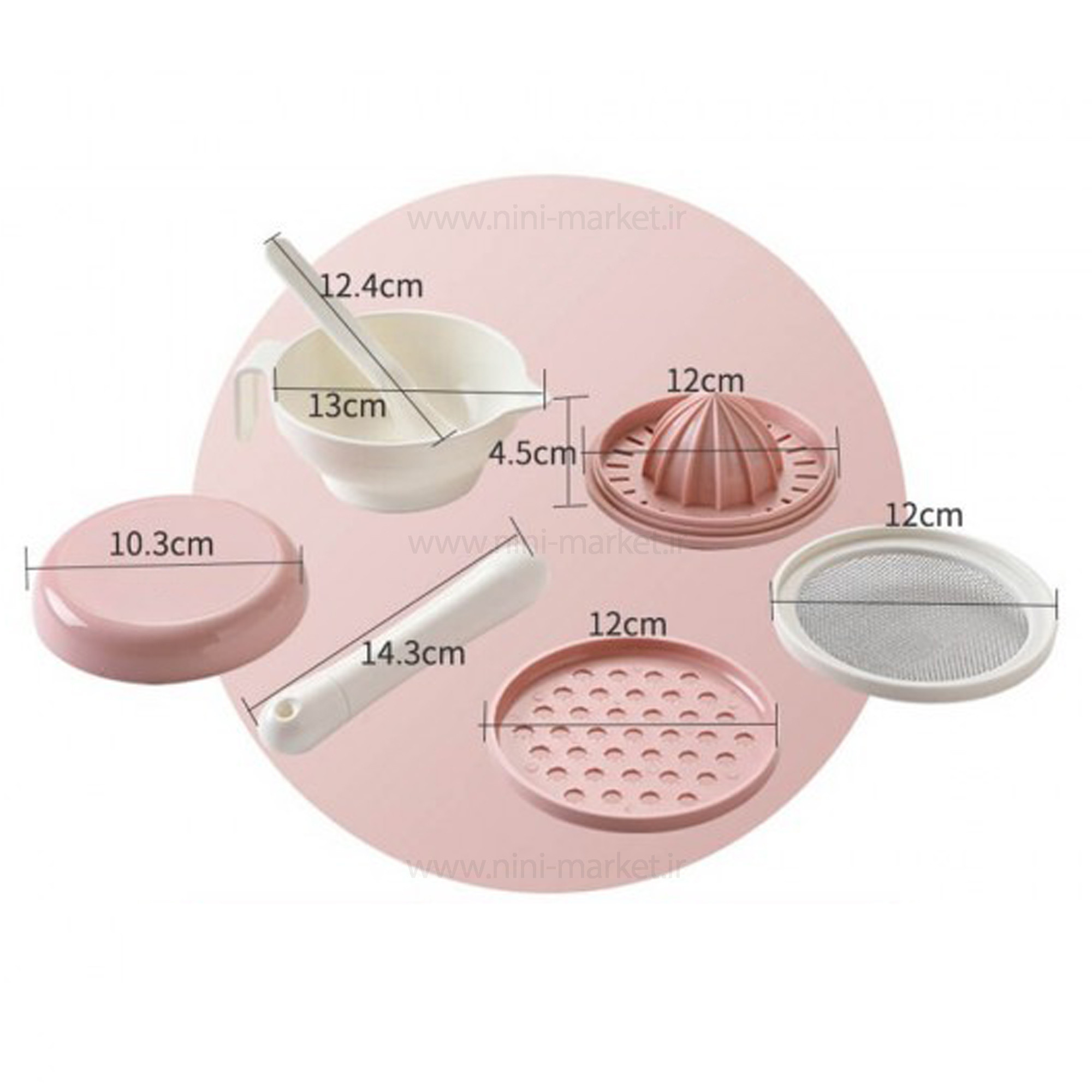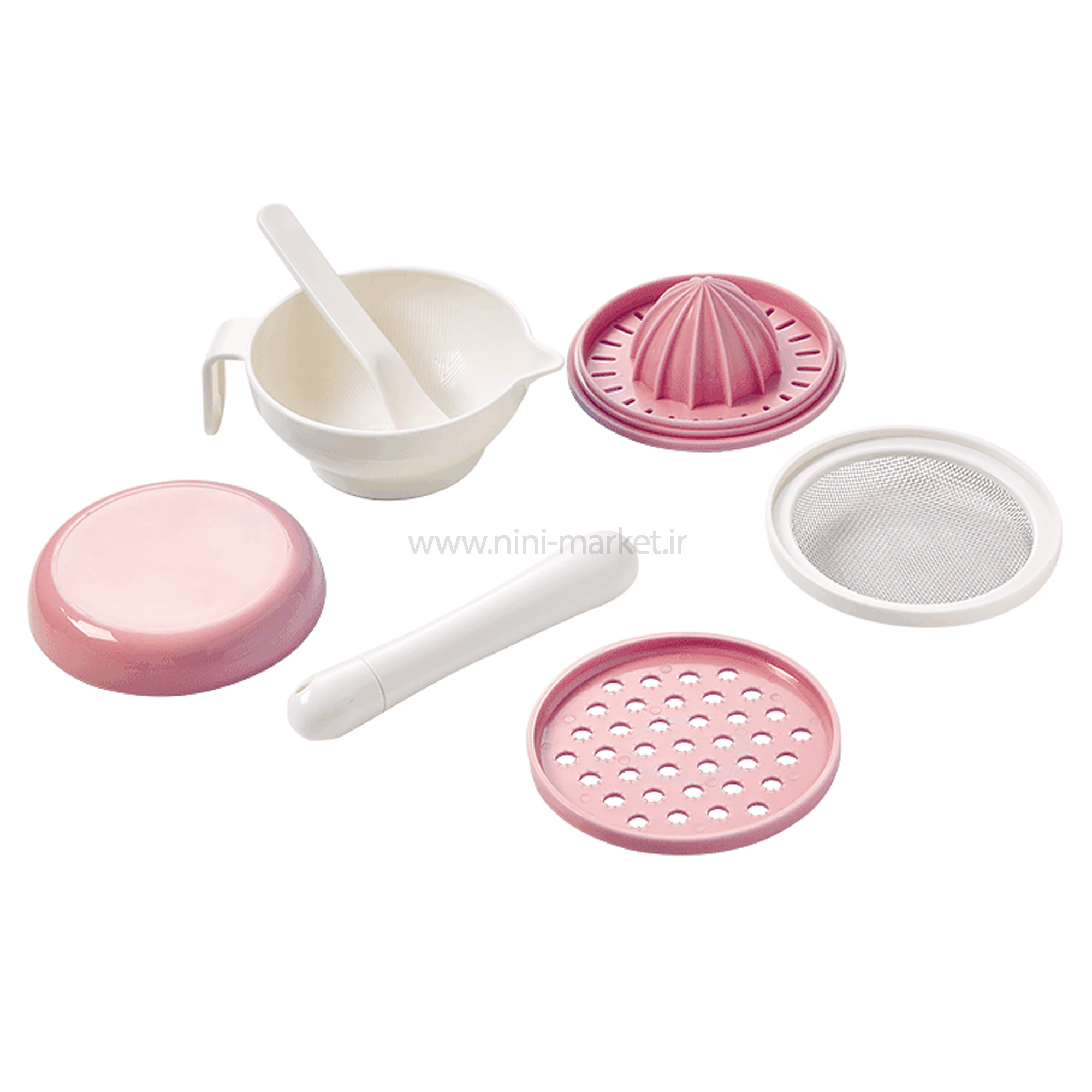 ست غذاساز دستی 7 تکه رنگ صورتی رووکو Rovco