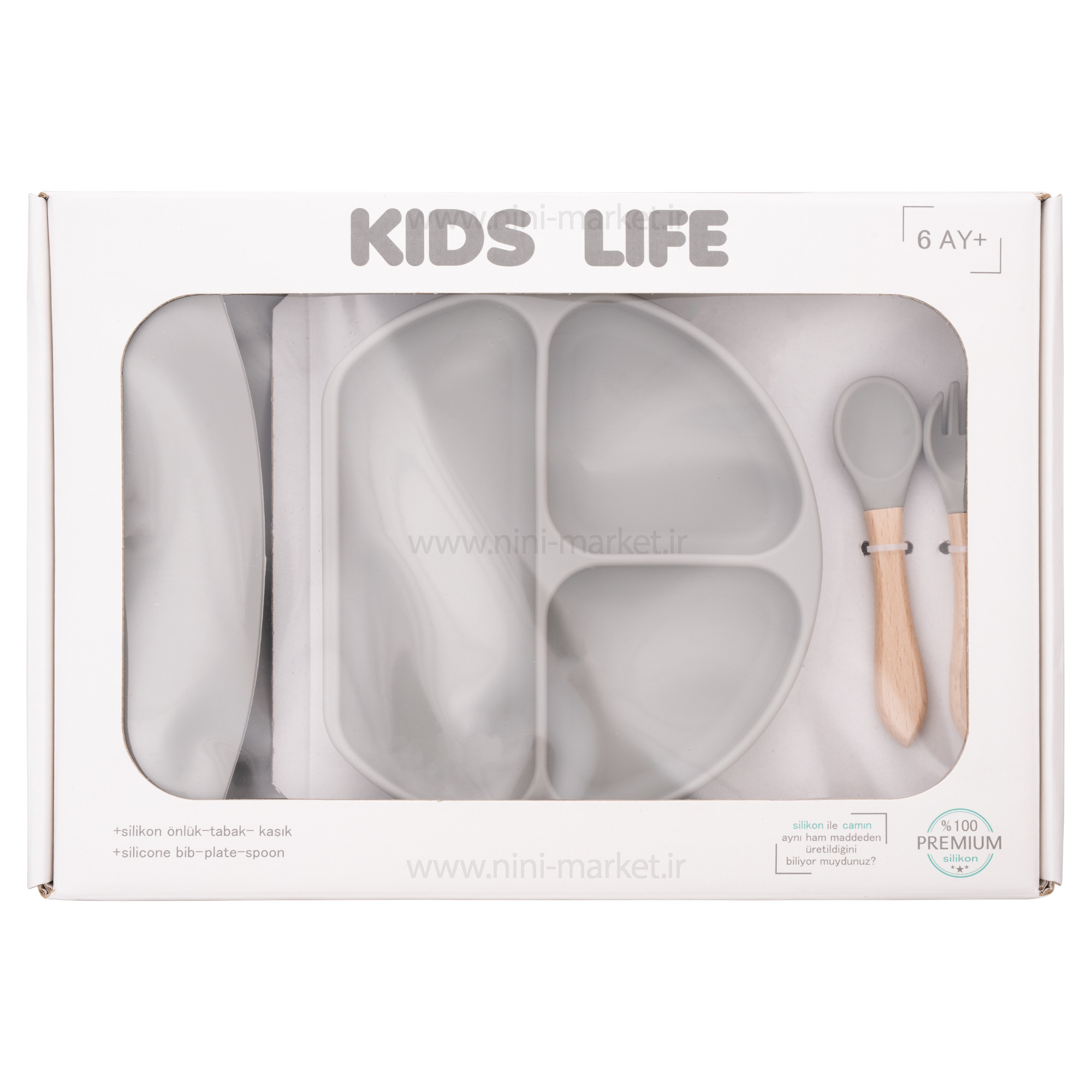ست ظرف غذا سیلیکونی 4 تکه رنگ طوسی کیدز لایف Kids Life