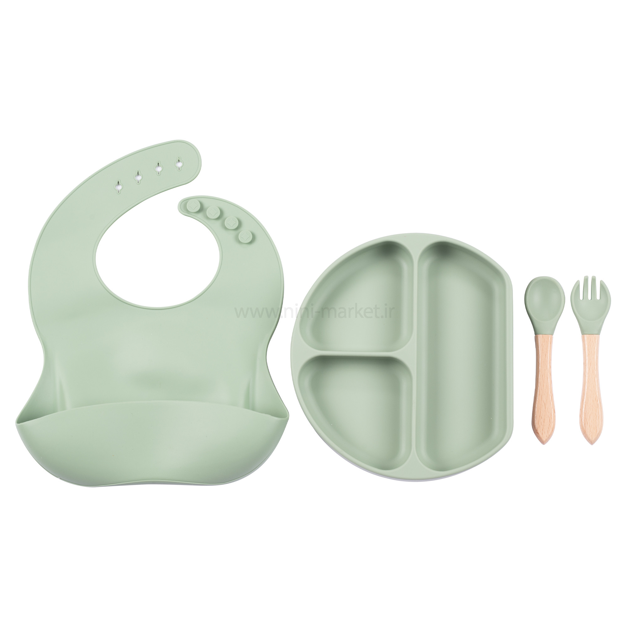 ست غذاخوری سیلیکونی رنگ سبز کیدز لایف Kids Life یک محصول بسیار کاربردی برای نوزادانیست که تازه شروع به غذا خوردن کرده اند . انتخاب یک ظرف غذای مناسب برای کودکان آن هم در بین طیف گسترده ای از محصولات میتواند کار دشواری باشد. با خرید ظرف غذا سیلیکونی کیدزلایف میتوانید خیال راحتی از بابت خرید یک محصول منحصر به فرد و کاملاً مرغوب داشته باشید. این ظرف با طراحی جذاب و همچنین قیمت بسیار مناسب خود یک انتخاب عالی برای کلیه کودکان عزیز به شمار میآید. این ست غذاخوری شامل یک بشقاب تقسیم، پیشبند، قاشق و چنگال می شود. جنس تمامی تکه ها از سیلیکونی بسیار با کیفیت است. تنها دسته قاشق و چنگال از جنس سیلیکون نیست. از بامبویی بسیار با کیفیت ساخته شده اند. بشقاب منقسم دمایی تا 200 درجه سانتی گراد را تحمل می کند؛ به همین علت قابل استفاده در ماکرویو است. پیشبند قابلیت تغییر سایز و استفاده برای سنین بالاتر را نیز دارد. از نوع کاسه دار است و هنگام غذاخوری کودک، بسیار مفید واقع می شود. این محصول کاملا عاری از BPA، PVC و فتالات است. هیچ ضرری برای کودک ندارد. قابل استفاده برای 6 ماهگی به بالا می باشد. اکثر ظروف روزمره دارای ساختار خاصی هستند که موجب لغزش آنها بر روی میز میشود. قاعدتاً این لغزش میتواند موجب سر خوردن ظرف مدنظر در اثر حرکات کودک گردد و این موضوع نتیجهای جز آسیب دیدن کودک و ظرف ندارد. ظروف غذاخوری کودکان باید به صورت کامل ضد لغزش باشد. این بدان معنی است که حتی در صورت تماس کودک با آن و وارد کردن فشار، ظرف مربوطه به هیچ وجه از جای خود تکان نخورد و ثابت باشد. چنین موضوعی یک امر مهم محسوب میشود . با خریداری این محصول میتوانید خیال کاملاً راحتی از بابت ارائه غذای کودک خود بدون نگرانی در زمینه خراب شدن و یا شکسته شدن ظرف غذا داشته باشید. این در حالی است که با استفاده از ظروف معمولی همچون ظروف چینی در هر لحظه امکان آسیب دیدن فرزند شما وجود دارد. بهترین متریال موجود جهت تولید ظروف مناسب برای کودکان، متریالی به نام سیلیکون است. سیلیکون جزو معدود موادی به شمار میآيد که علاوه بر داشتن استحکام بالا، وزن بسیار کمی دارد. یکی دیگر از قابلیتهای بسیار مناسب سیلیکون در مقابل پلاستیک آن است که سیلیکون به هیچ وجه وارد غذای کودک شما نمیشود. احتمالاً از این امر مطلع هستید که با ریختن غذای داغ در درون ظروف پلاستیکی این احتمال وجود دارد که مقداری از مواد پلاستیکی مضر وارد غذای کودکتان گردد. خوشبختانه این امر در زمینه ظروف سیلیکونی به هیچ وجه صحت ندارد و میتوانید بدون نگرانی در این باره از آنها استفاده کنید. یکی دیگر از ویژگیهای بسیار مناسب سیلیکون را میتوان امکان قرار دادن ظروف تولید شده توسط آن در درون مایکرویو دانست. اگر جزو افرادی هستید که زمان کافی برای گرم کردن مناسب غذای فرزند خود ندارند، این ظروف میتوانند یک خرید عالی برای شما باشند. لازم به ذکر است که شکل کلی این محصولات حتی در زمان ریخته شدن غذایی با حرارت بسیار بالا نیز به هیچ وجه تغییر پیدا نمیکند. در ساخت این محصولات به هیچ وجه از مواد مضر شیمیایی برای کودک (BPA FREE) استفاده نشده است. اگر به سلامت کودک خود اهمیت میدهید و دوست دارید که حتی ظروف غذای وی نیز کاملاً بهداشتی باشند، باید به سراغ خرید این محصول بروید. نی نی مارکت به عنوان بزرگترین عرضهکننده ظروف کودک مفتخر است این محصول را با کمترین قیمت ممکن در اختیار شما والدین عزیز قرار دهد تا بتوانید غذای مدنظر خود را در ظروفی بهداشتی و کاملاً مقاوم در برابر حرارت و آسیبهای فیزیکی به فرزند دلبدتان ارائه کنید.