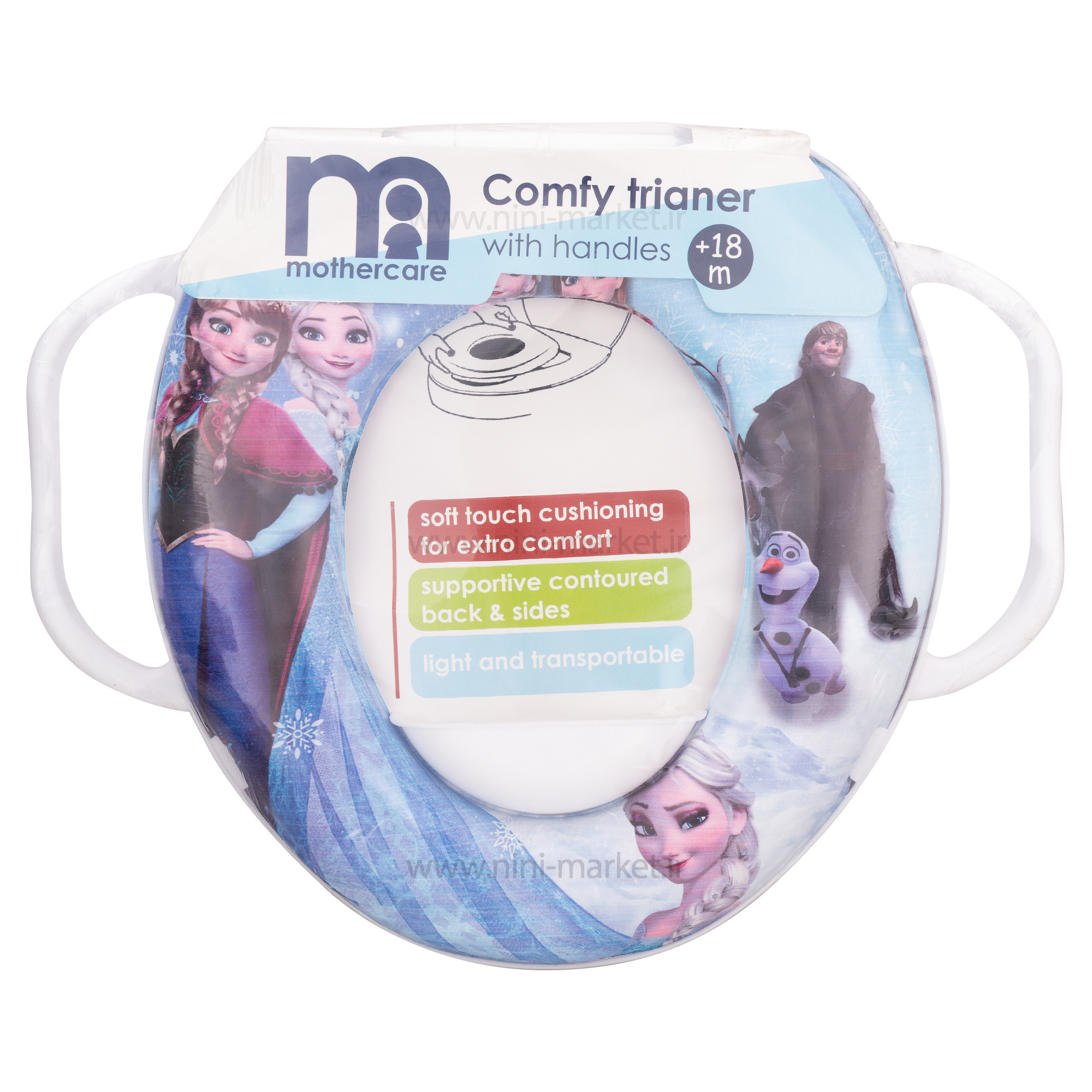 رابط توالت طرح السا و آنا رنگ آبی مادرکر Mothercare یکی از محصولات کاربردی برای کودکانی می باشد که والدین میخواهند آن را از پوشک بگیرد است. برند مادرکر تولید کننده لوازم سیسمونی کودک است و لوازم با کیفیت با طرحها و استانداردهای روز دنیا را برای راحتی مادر و کودک در محصولاتش دارد. رابط توالت فرنگی کودک یکی از لوازمی است که برای کمک به والدین و کودک ساخته شده است و برای عادت دادن کودک به دستشویی رفتن و یا به اصطلاح گرفتن کودک از پوشک کارایی دارد. با استفاده از رابط توالت مادرکر می توانید کم کم کودک را به دستشویی رفتن تشویق و سپس عادت دهید. از آنجا که توالت بزرگسالان به دلیل کوچک بودن جثه کودک برای کودکان قابل استفاده نیست, گذاشتن این رابط توالت فرنگی بر روی توالت , آن را برای کودک قابل استفاده می کند. تبدیل های مخصوص کودک با داشتن رنگ های جذاب و طرح های کودکانه برای بچه ها بسیار هیجان انگیز هستند. سطح این تبدیل ها اسفنجی نرم بوده و کودک در زمان نشستن بر روی آن احساس راحتی می کند. در دو طرف آن دو دسته وجود دارد که کودک با گرفتن آن ها می تواند تعادل خود را بهتر حفظ کند. رابط توالت مادرکر از مواد اولیه درجه یک و بهداشتی برای استفاده کودک ساخته شده است. این محصول دارای جنس پلاستیکی و فاقد ماده مضر است. قسمت نشیمنگاه آن نیز از جنس اسفنجی و نرم است تا کودک هنگام نشستن بر روی آن احساس راحتی کند. همچنین با برخورد پوست بدن کودک و سطح تبدیل احسای سرما نکند. رابط توالت مادرکر چون از تماس مستقیم کودک با توالت بزرگسالان جلوگیری می کند به حفظ بهداشت و سلامت کودک نیز کمک می کند و می توانید آن را در سفر و .. نیز به راحتی آت را حمل کنید. رابط توالت مادرکر دارای دسته در کناره ها می باشد. کودک در هنگام استفاده از آن آنها را با دستانش می گیرد و اعتماد به نفس کودک بالا می رود. این تبدیل توالت فرنگی کودک گذاشتن و برداشتن آسان دارد و همچنین قابلیت شستشوی راحتی نیز دارد.این محصول دارای طرحهای کارتونی و رنگارنگ برای کودک است که انگیزه بیشتری به کودک برای استفاده از آن می دهد. این محصول را می توانید به صورت آنلاین و به راحتی از منزل از فروشگاه اینترنتی سیسمونی نی نی مارکت سفارش و در اسرع وقت آن را تحویل بگیرید.