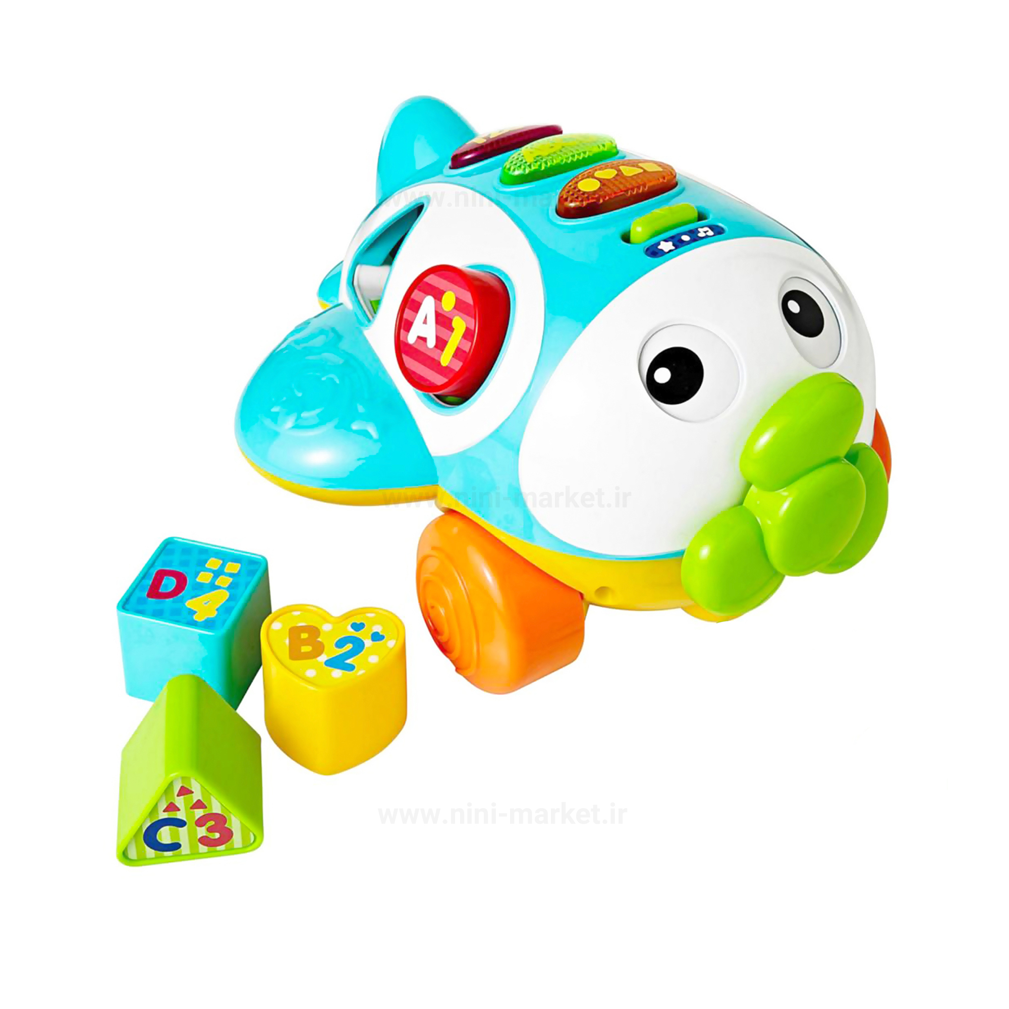 دارای اشکال هندسی دایره، مثلث، مربع و قلب می باشد.  این اسباب بازی مناسب برای افزایش قوه تخیل و درک کودک است و مناسب برای آشنایی کودک با اعداد, رنگ ها و اشکال می باشد. انتهای هواپیما دارای در است که کودک می تواند اشکال را از داخل هواپیما خارج کند. دارای دکمه هایی روی سقف برای پخش ملودی و موزیک و برای کودک سرگرم کننده است .