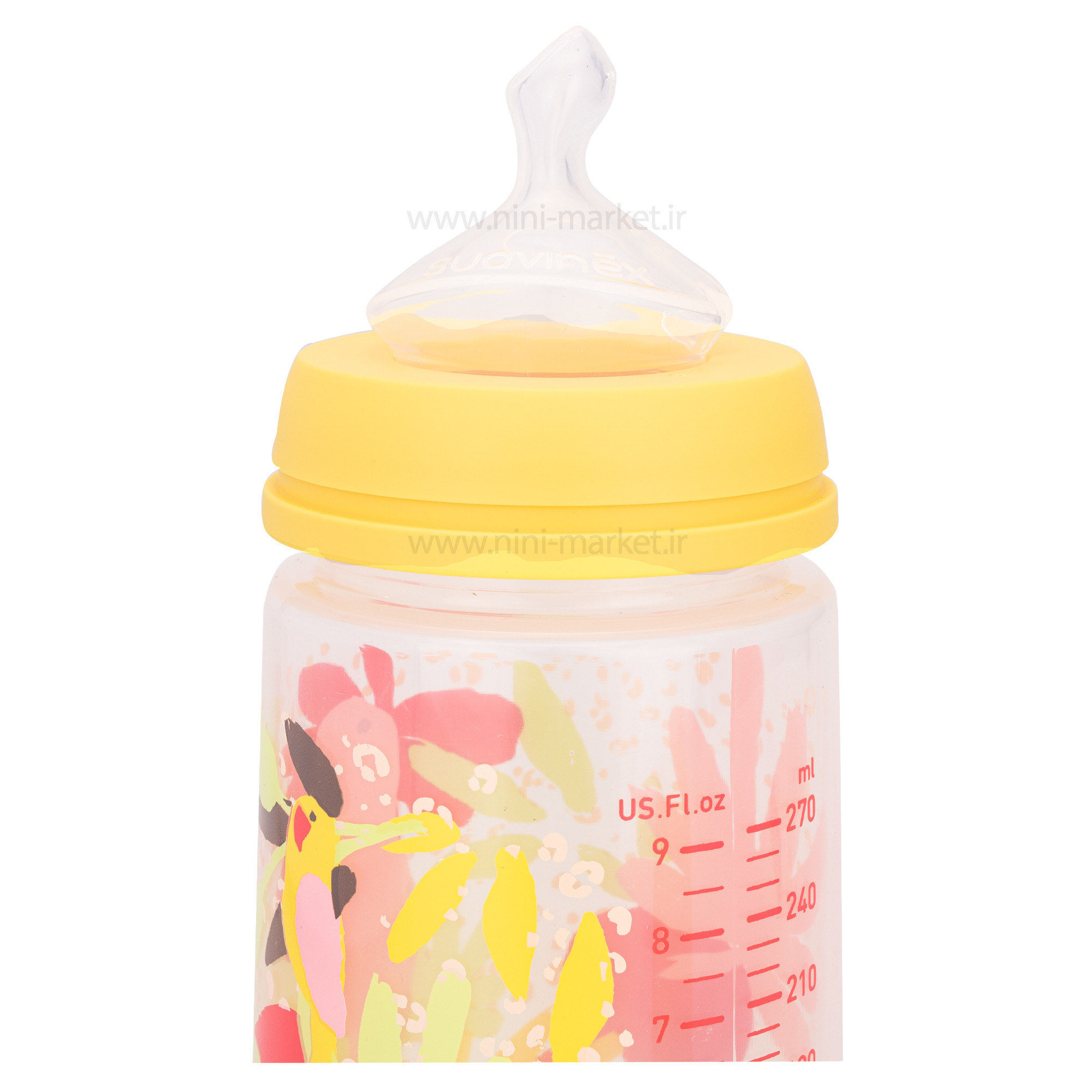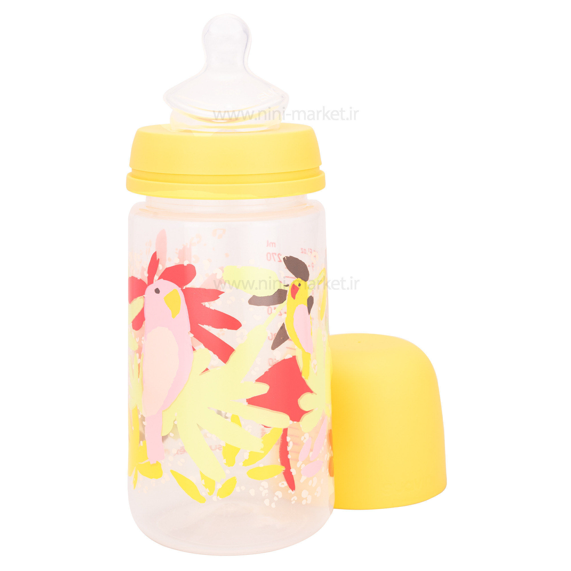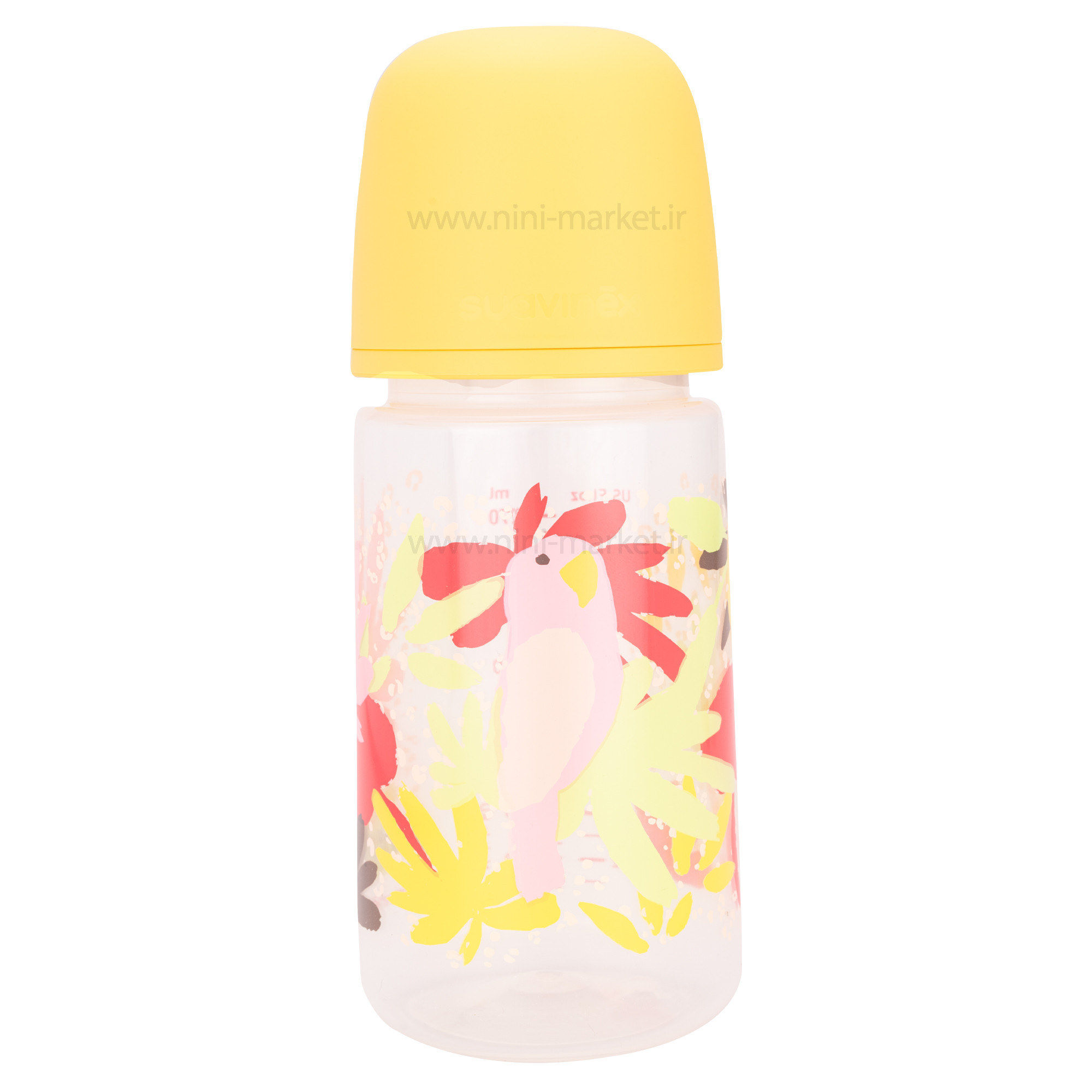 شیشه شیر کارتونی 270 میل طرح طوطی رنگ زرد سوانیکس Suavinex