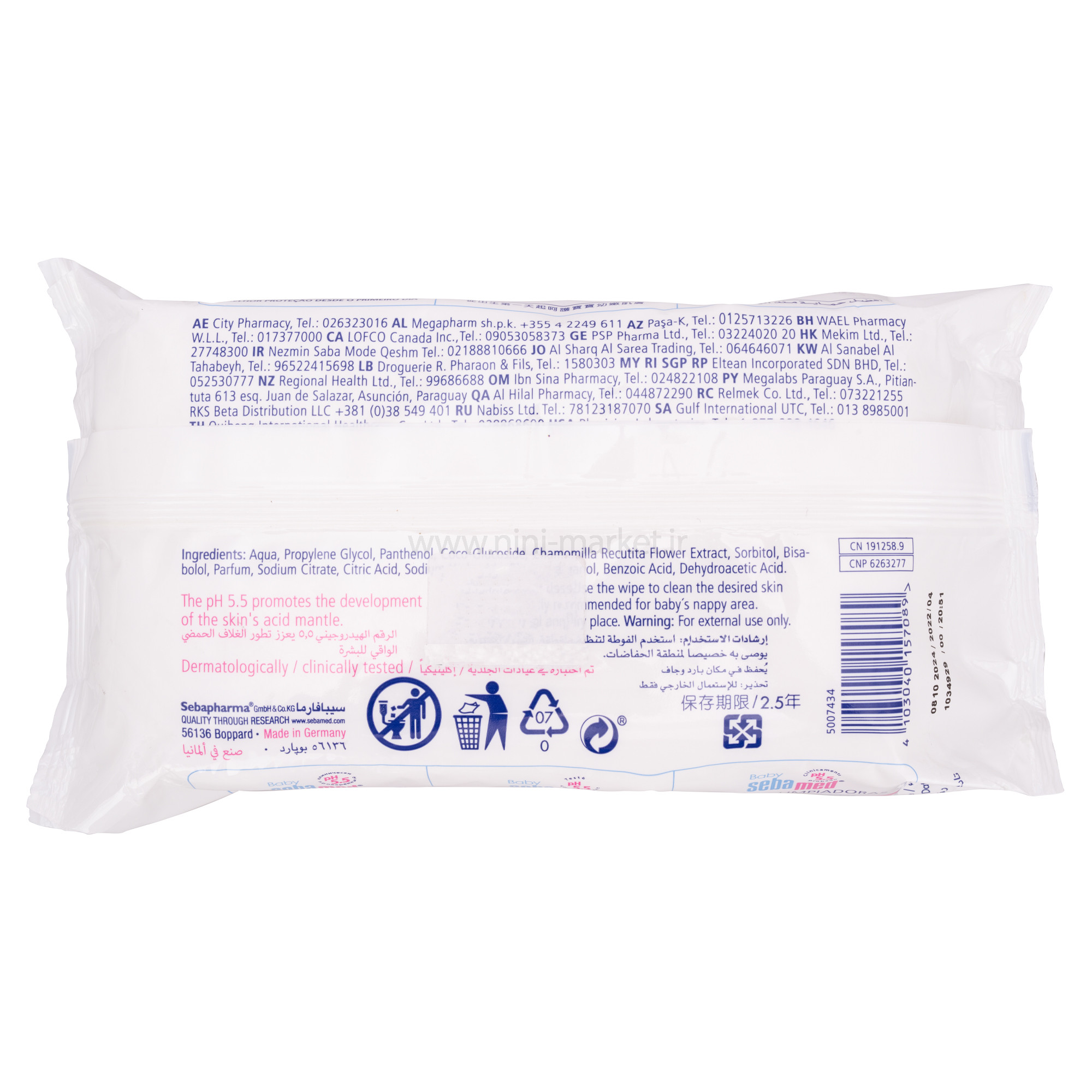 دستمال مرطوب 72 عددی برند سبامد Seba Med