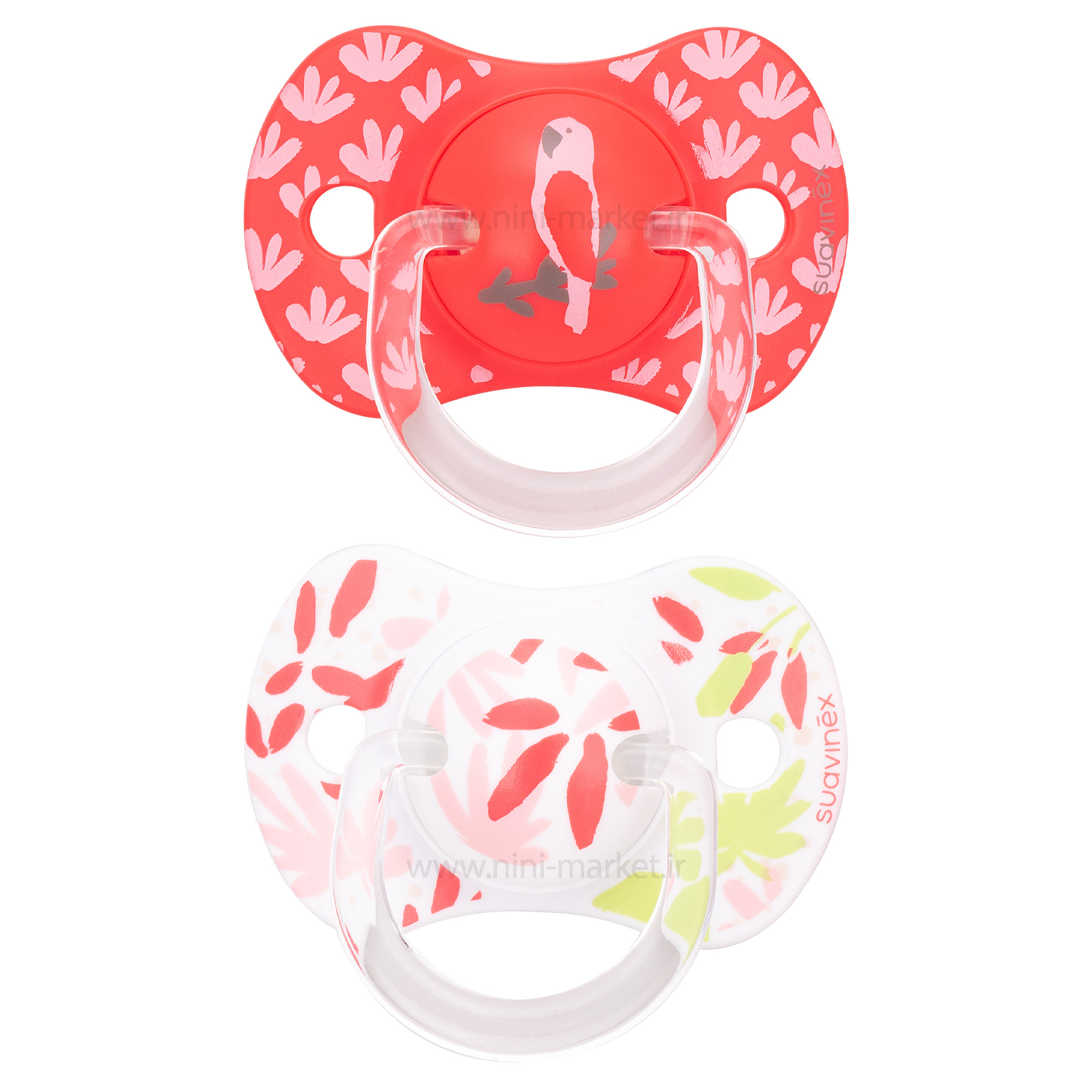 پستانک دوعددی بادامی 6_18 ماه طرح طوطی سواوینکس SUAVINEX