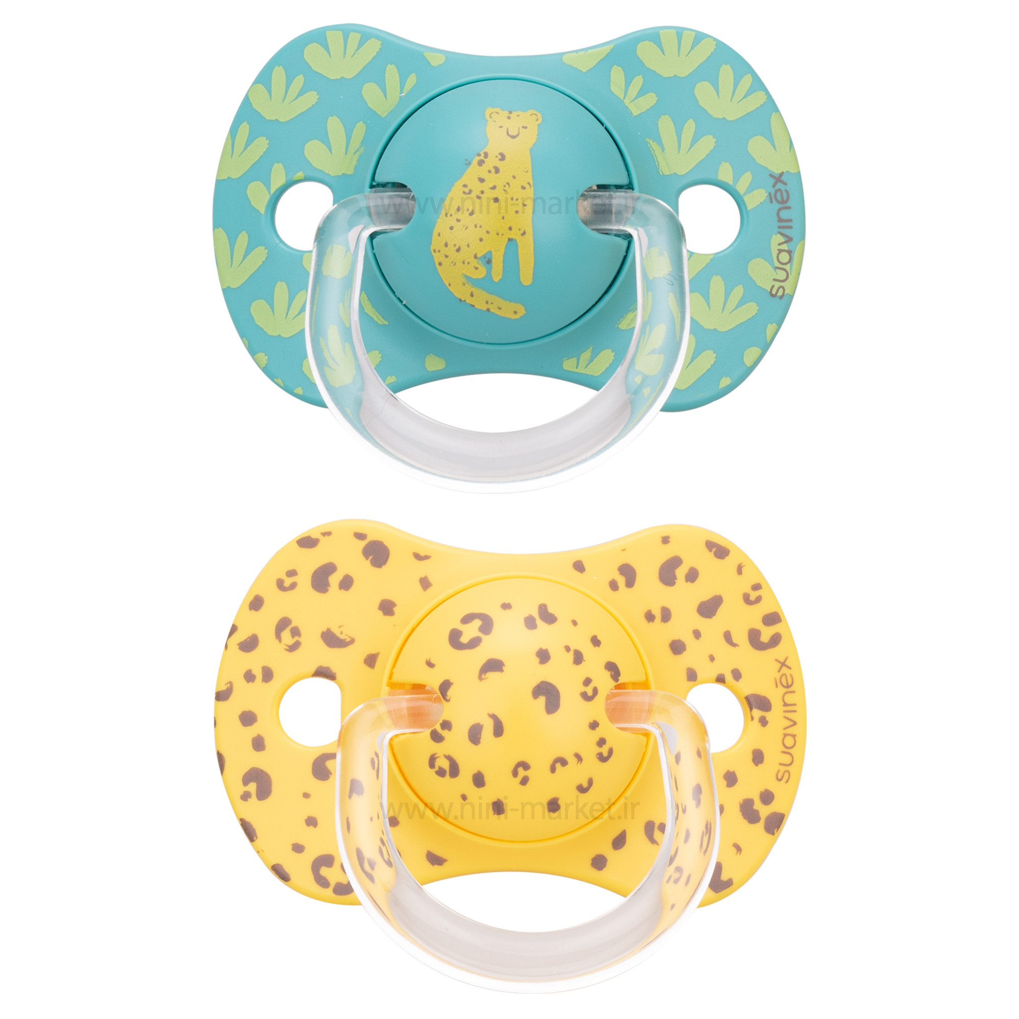 پستانک دوعددی بادامی 18+ طرح ببر رنگ سبز سواوینکس SUAVINEX