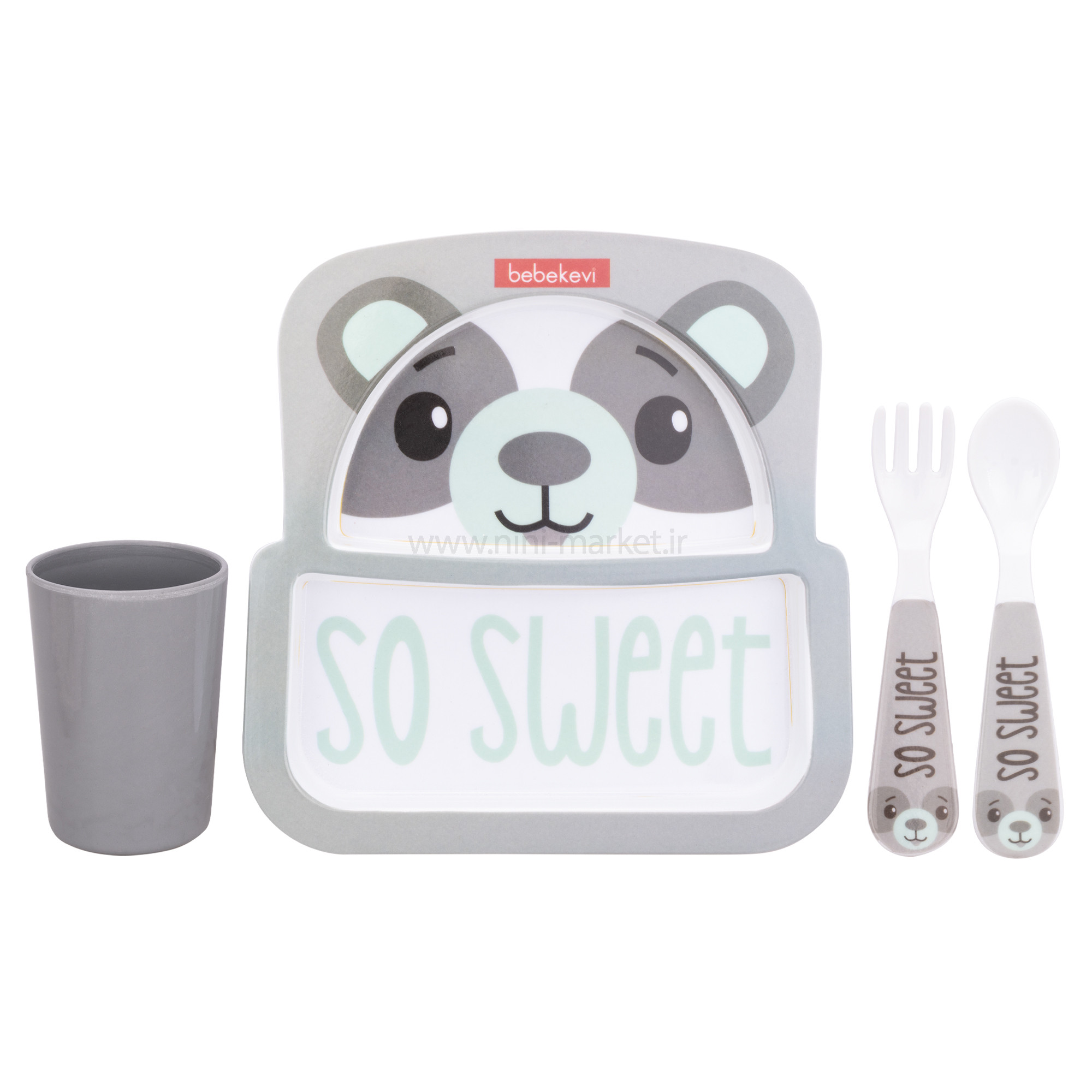 ست ظرف غذا طرح خرس رنگ طوسی سبز ببک اوی Bebekevi