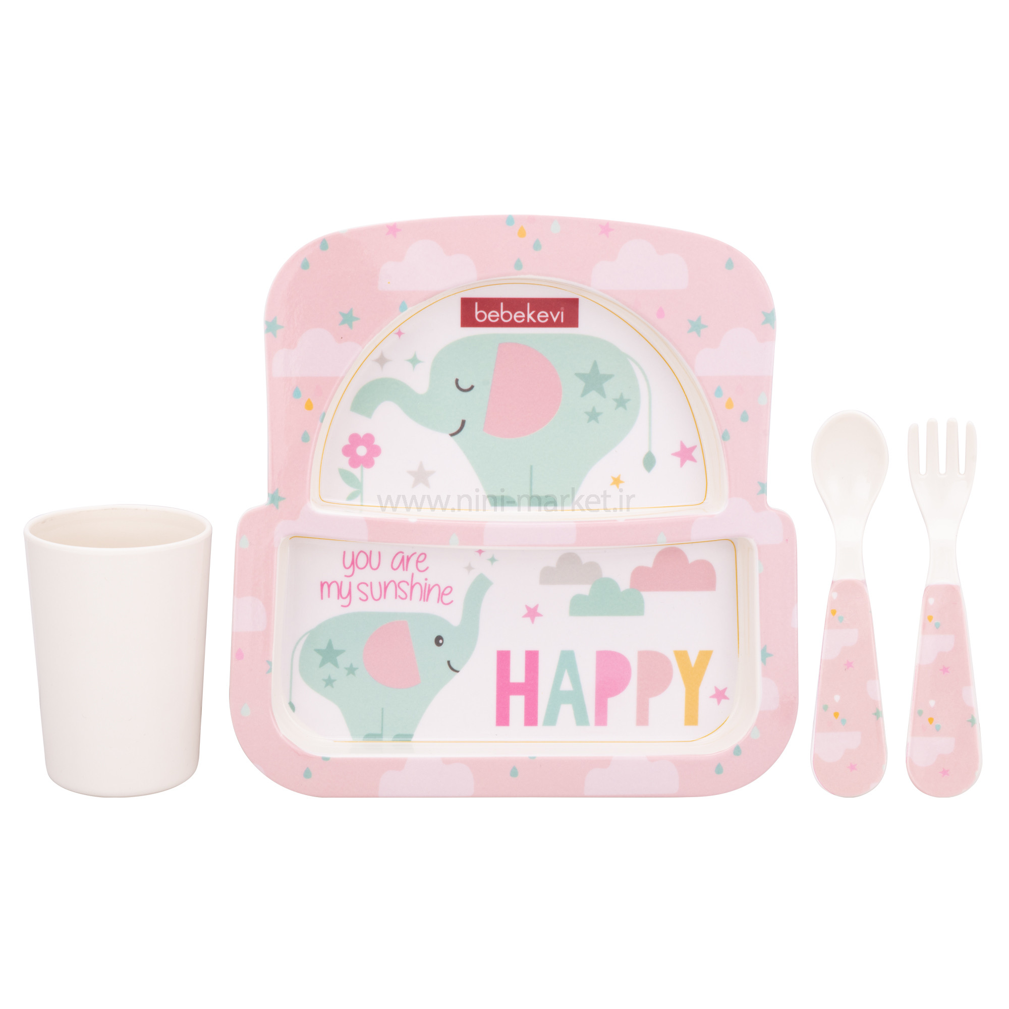 ست ظرف غذا طرح فیل رنگ صورتی ببک اوی Bebekevi