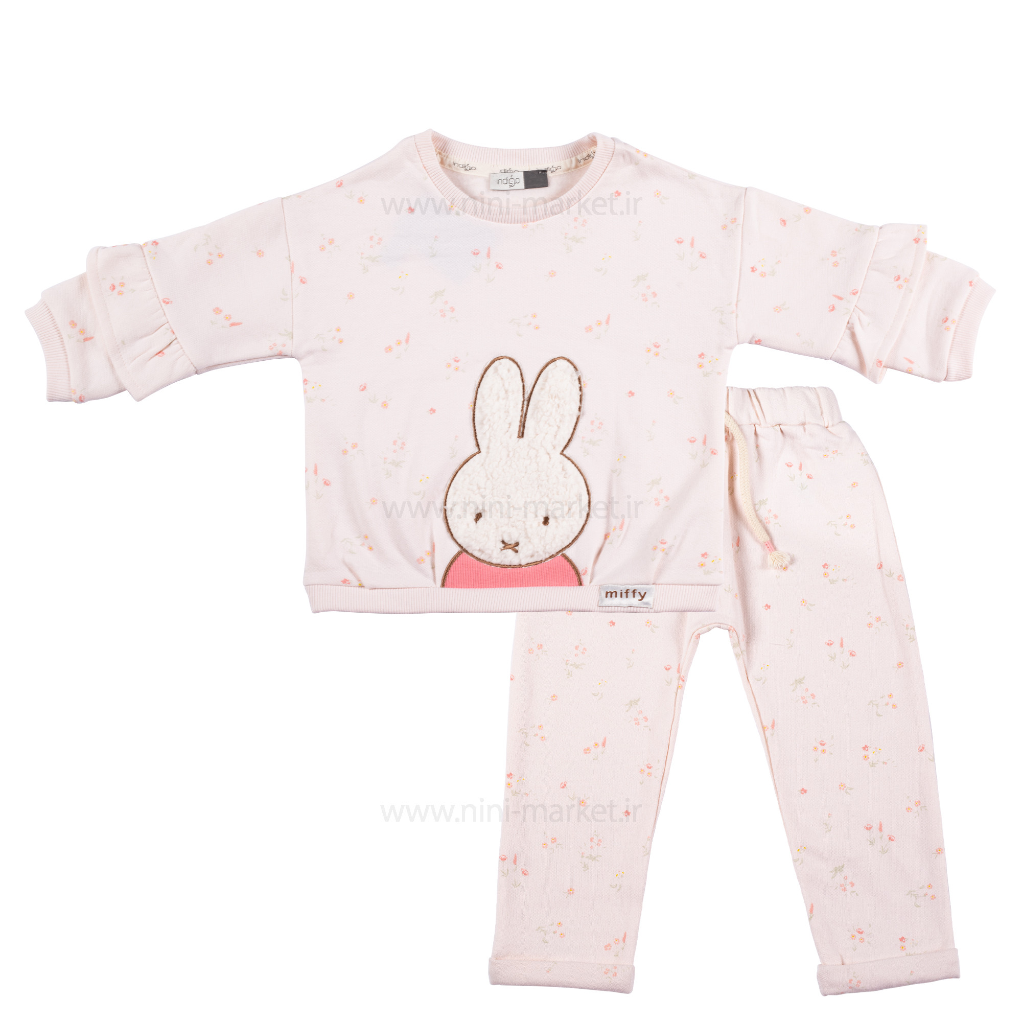 بلوز شلوار دخترانه طرح خرگوش گل رنگ کرمي ایندیگو Indigo