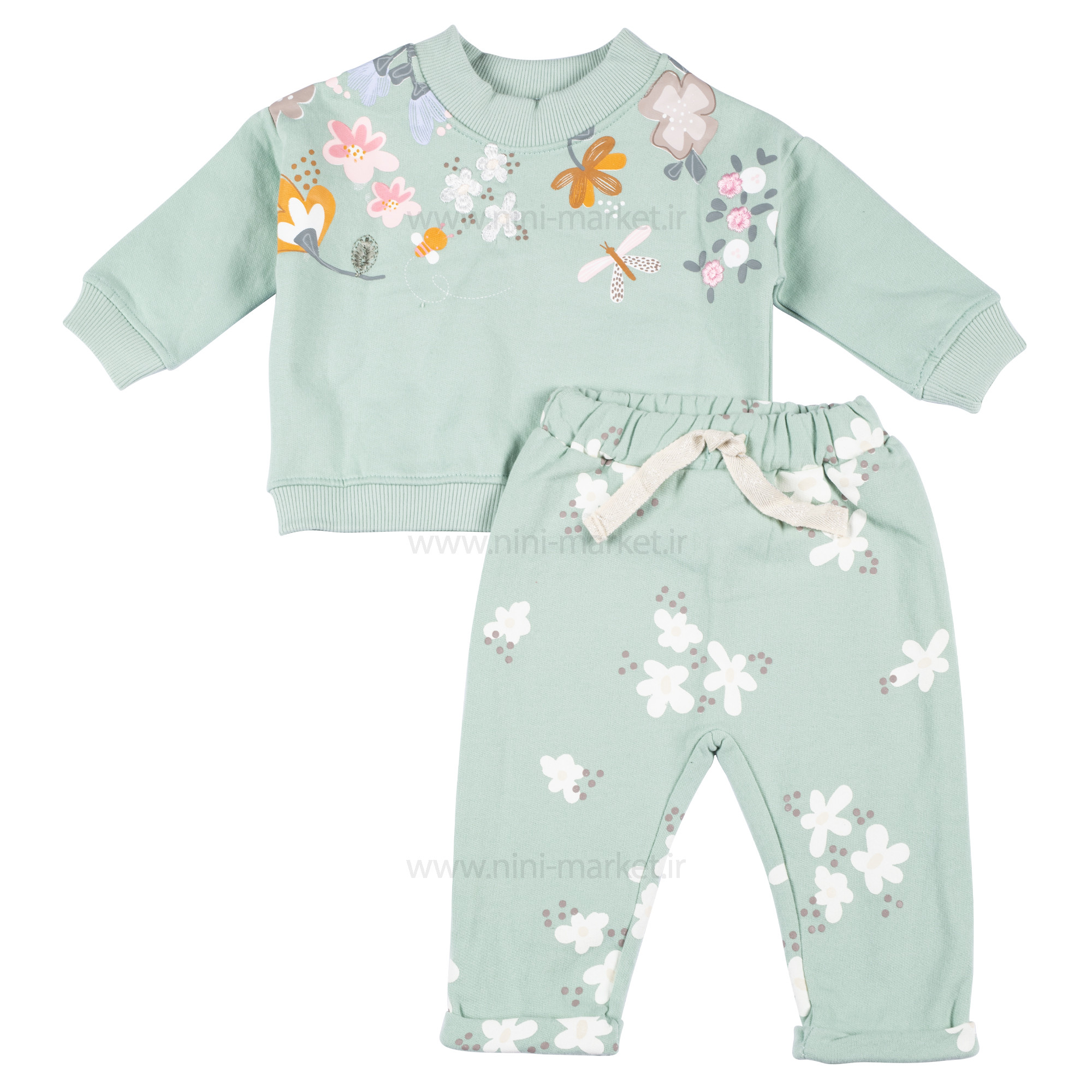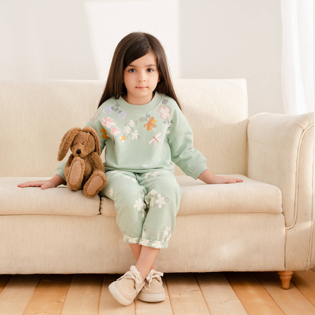 بلوز و شلوار دخترانه طرح گل رنگ سبز ایندیگو Indigo