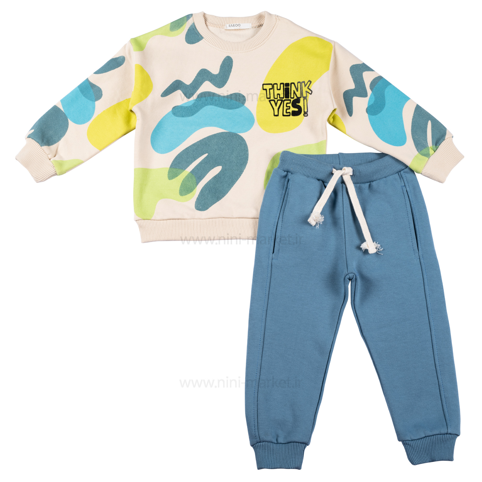 بلوز شلوار اسپرت طرح آبرنگي رنگ آبي رابو Raboo