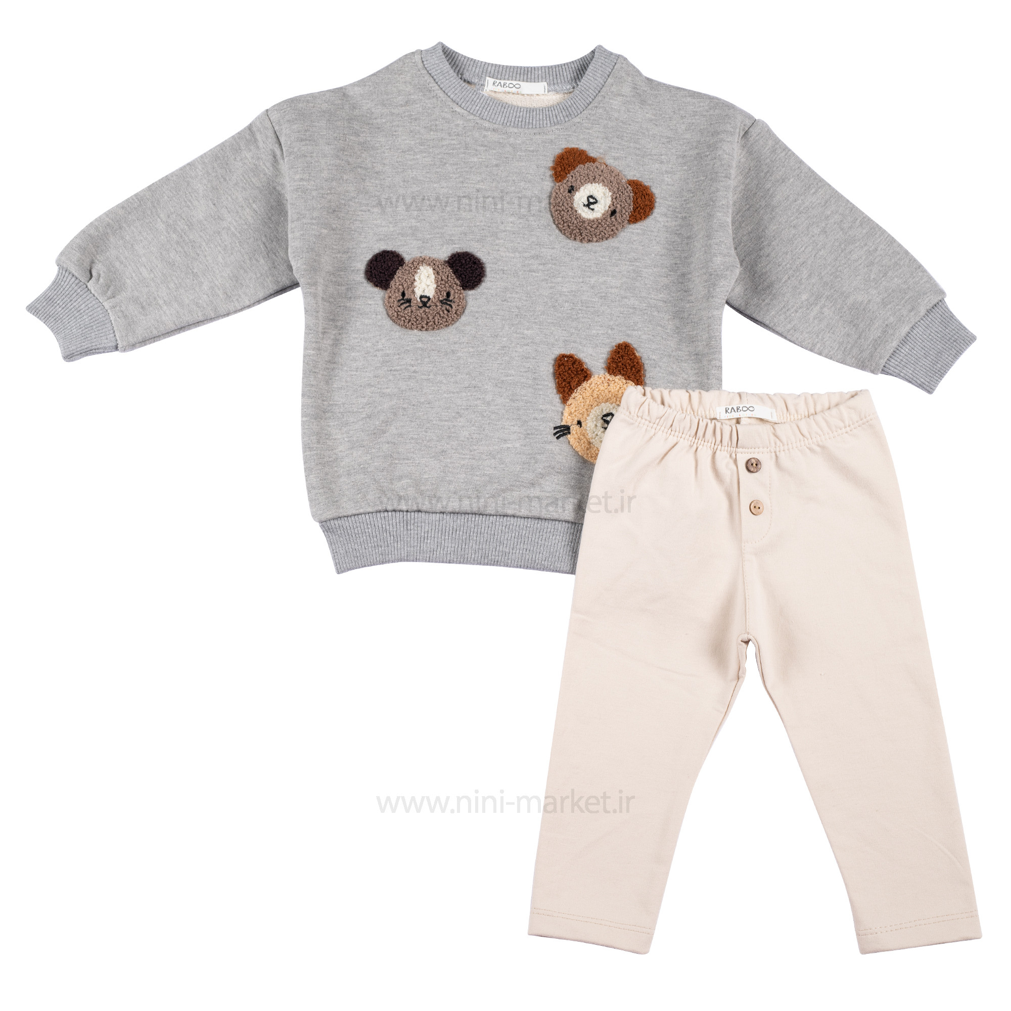 بلوز شلوار طرح حیوانات رنگ طوسی رابو Raboo