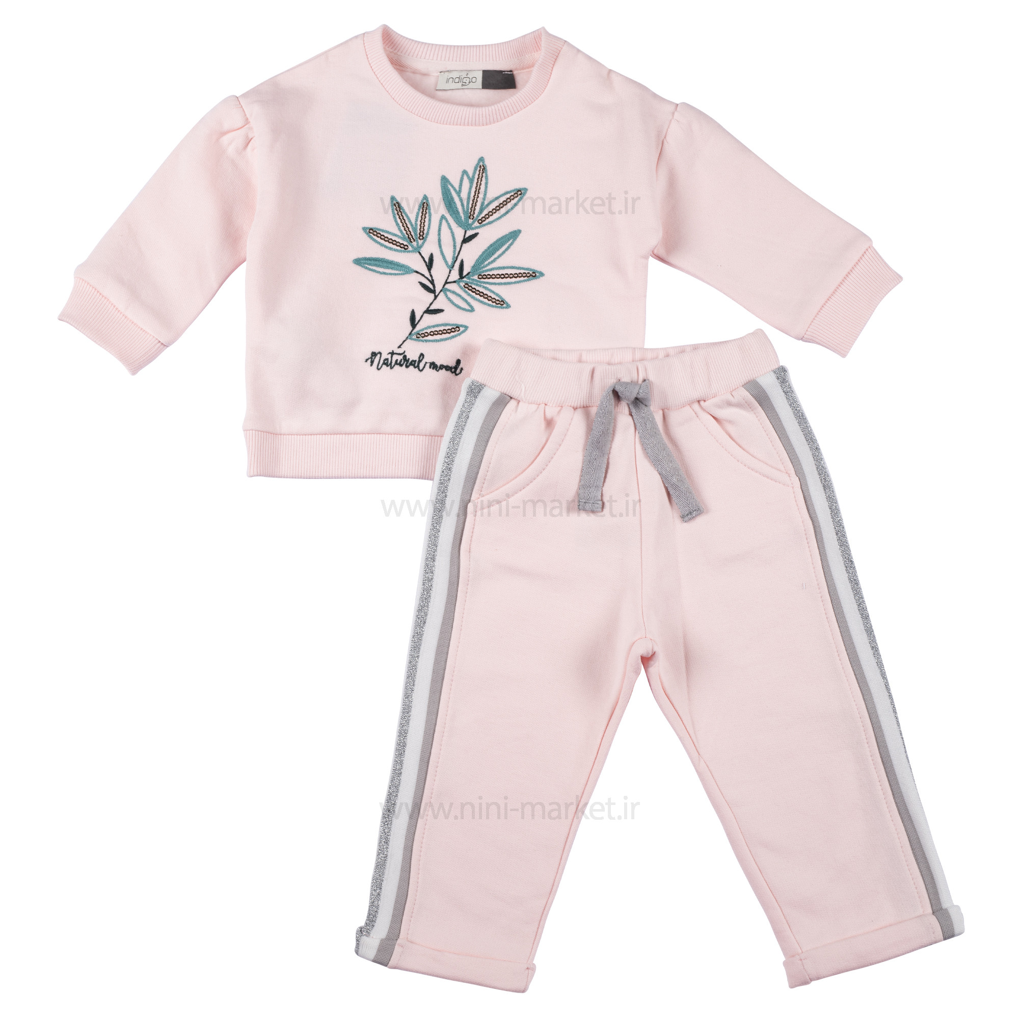 بلوز و شلوار دخترانه طرح برگ پولکي رنگ صورتي ایندیگو Indigo