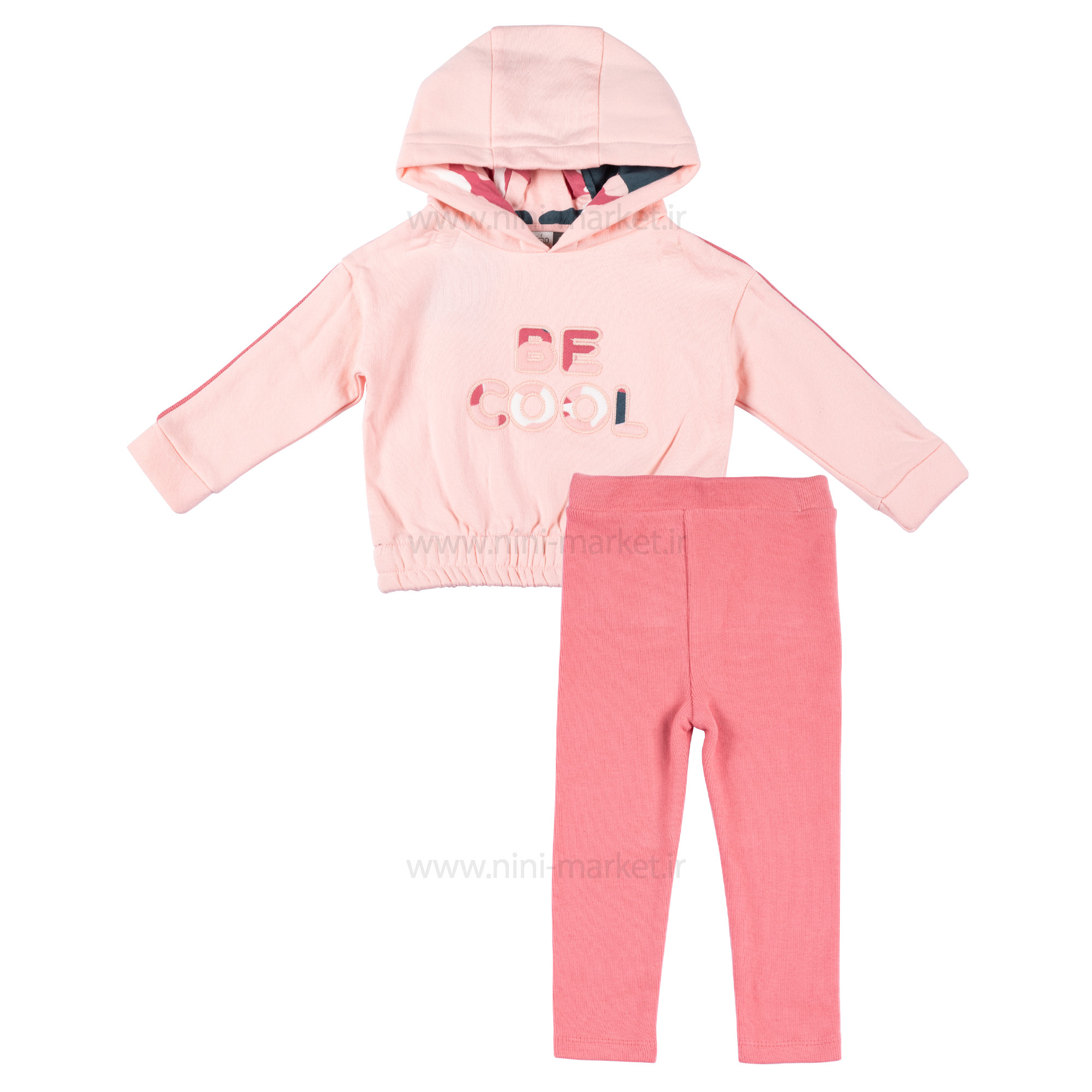 هودي و لگ دخترانه طرح Be cool رنگ صورتي ایندیگو Indigo