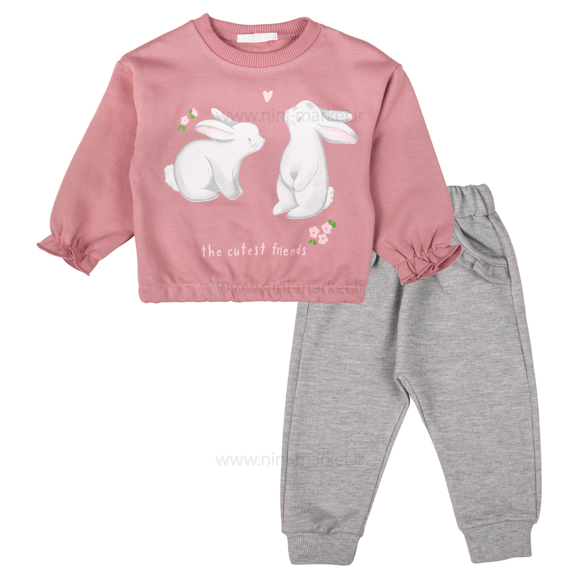 بلوز شلوار طرح دو خرگوش رنگ کالباسي رابو Raboo