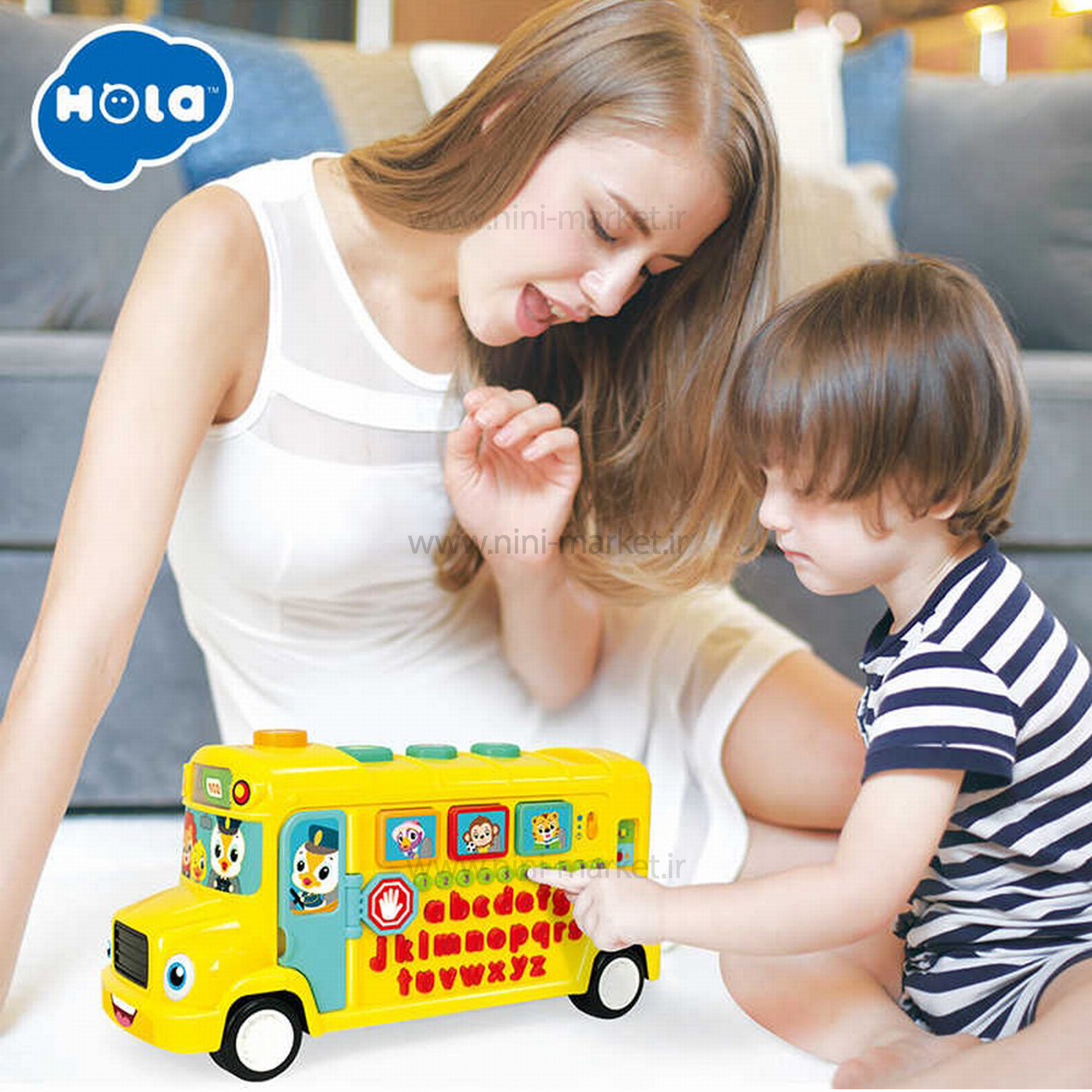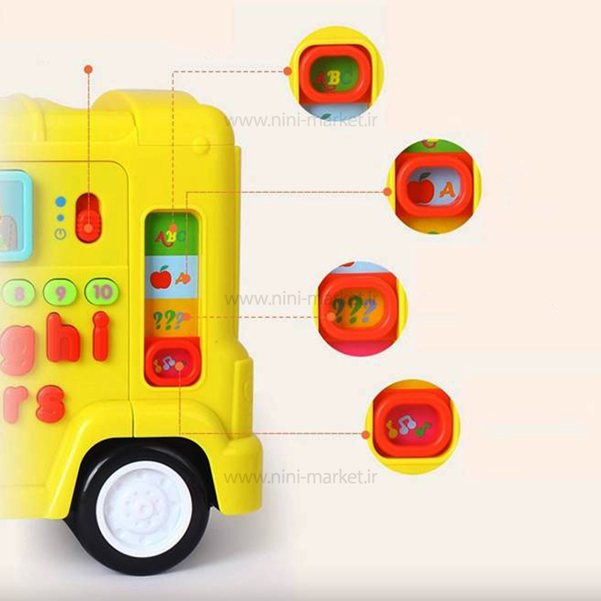 اتوبوس الفبا رنگ زرد هولی تویز Huile Toys