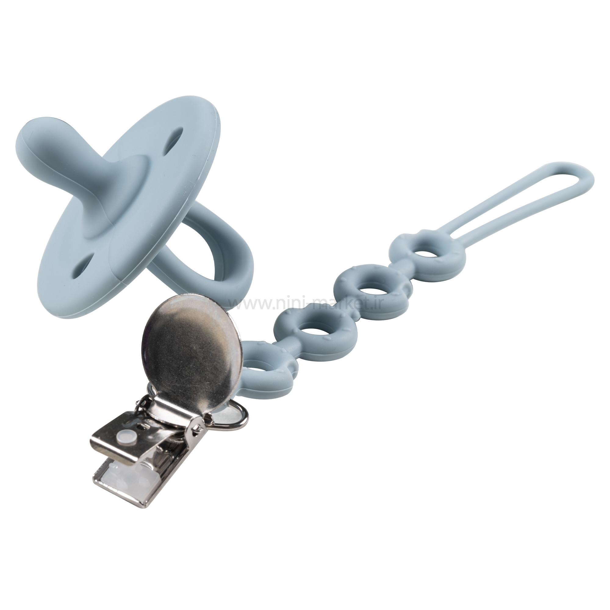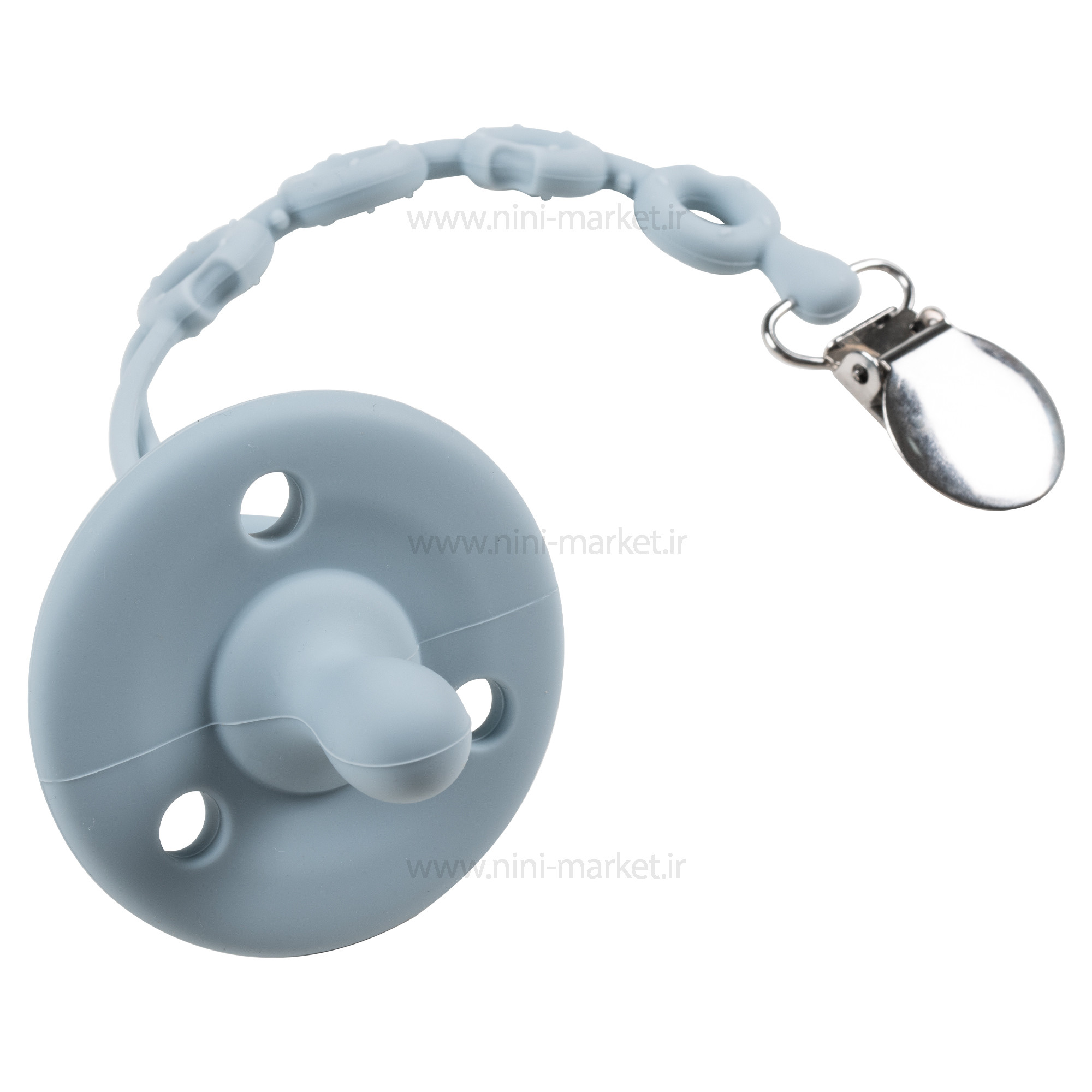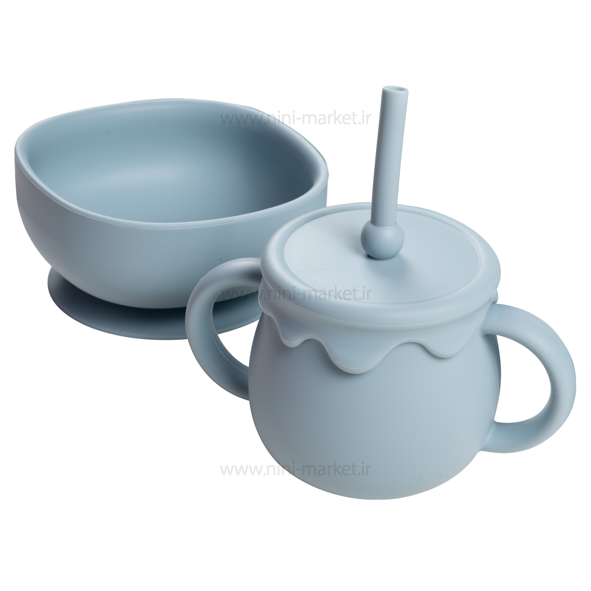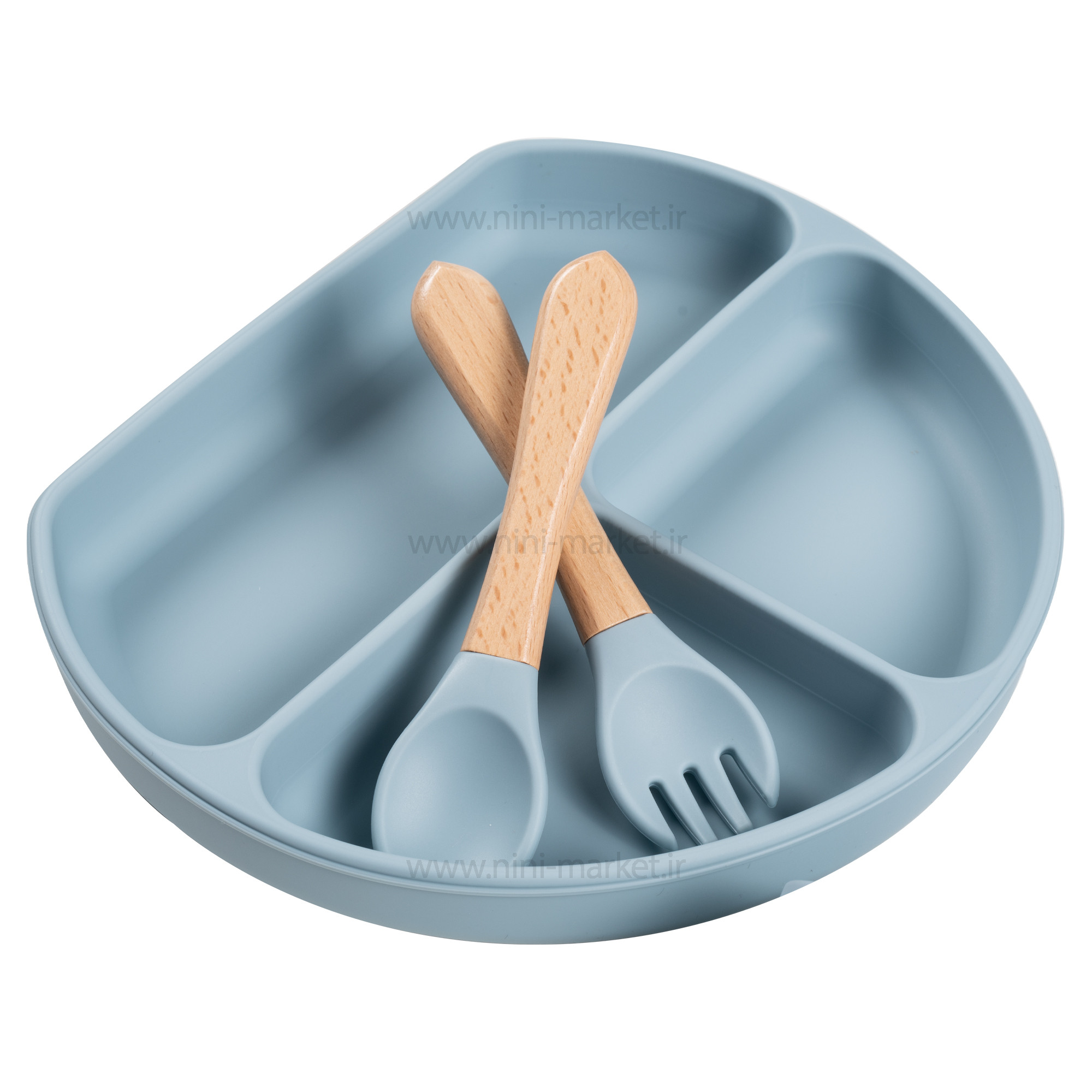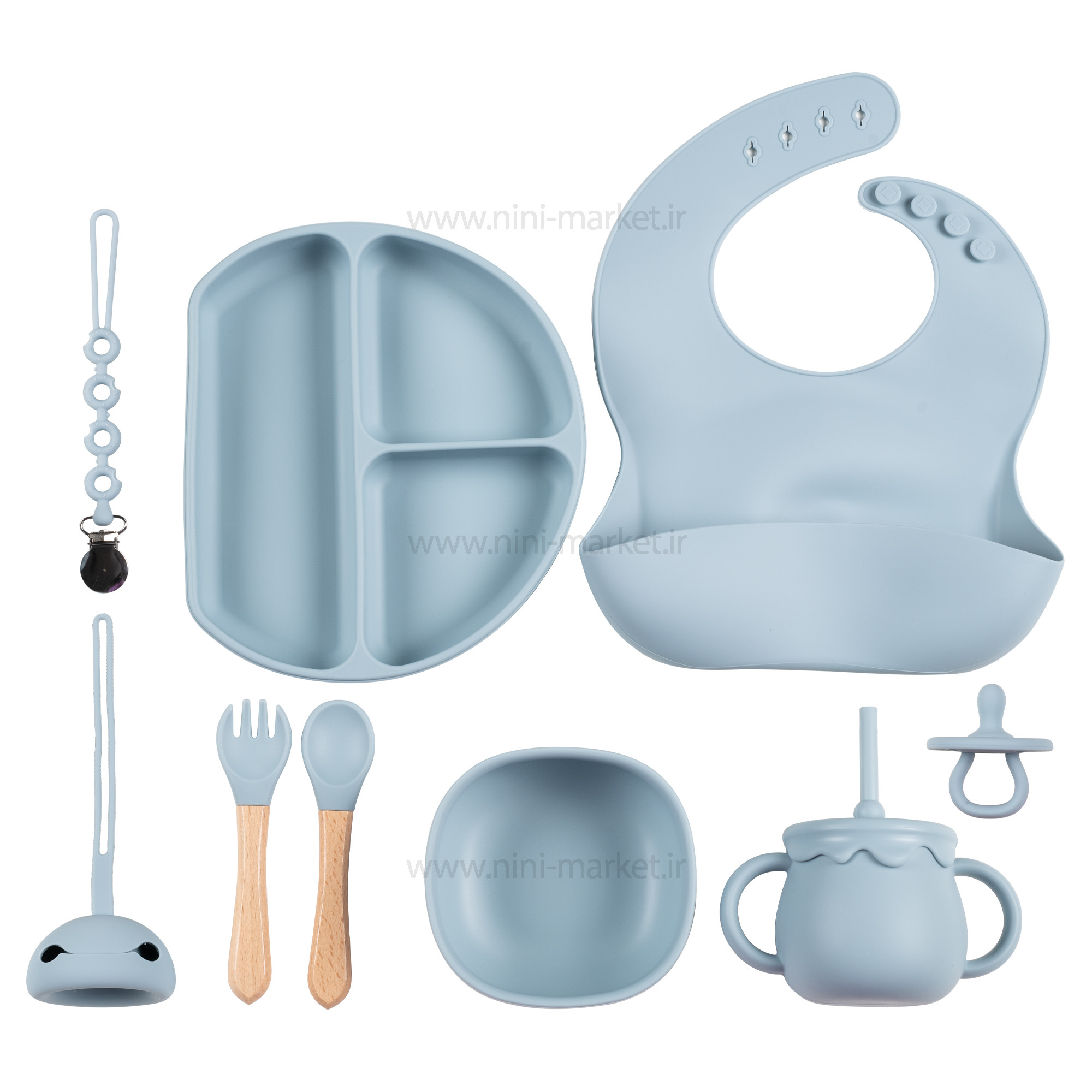 ست غذاخوری سیلیکونی 10 تکه رنگ آبی برند خارجی یک محصول بسیار کاربردی برای نوزادانیست که تازه شروع به غذا خوردن کرده اند . انتخاب یک ظرف غذای مناسب برای کودکان آن هم در بین طیف گسترده ای از محصولات می‌تواند کار دشواری باشد. با خرید ظرف غذا سیلیکونی خارجی می‌توانید خیال راحتی از بابت خرید یک محصول منحصر به فرد و کاملاً مرغوب داشته باشید. این ظرف با طراحی جذاب و همچنین قیمت بسیار مناسب خود یک انتخاب عالی برای کلیه کودکان عزیز به شمار می‌آید. این ست غذاخوری سیلیکونیشامل یک بشقاب تقسیم، کاسه ، پیشبند، قاشق و چنگال ، پستانک ، بند پستانک و قاب محافظ پستانک می باشد. جنس تمامی تکه ها از سیلیکونی بسیار با کیفیت است. تنها دسته قاشق و چنگال از جنس سیلیکون نیست. از بامبویی بسیار با کیفیت ساخته شده اند. بشقاب منقسم دمایی تا 200 درجه سانتی گراد را تحمل می کند؛ به همین علت قابل استفاده در ماکرویو است. پیشبند قابلیت تغییر سایز و استفاده برای سنین بالاتر را نیز دارد. از نوع کاسه دار است و هنگام غذاخوری کودک، بسیار مفید واقع می شود. این محصول کاملا عاری از BPA،PVC و فتالات است. هیچ ضرری برای کودک ندارد. قابل استفاده برای 6 ماهگی به بالا می باشد. اکثر ظروف روزمره دارای ساختار خاصی هستند که موجب لغزش آن‌ها بر روی میز می‌‌شود. قاعدتاً این لغزش می‌تواند موجب سر خوردن ظرف مدنظر در اثر حرکات کودک گردد و این موضوع نتیجه‌ای جز آسیب دیدن کودک و ظرف ندارد. ظروف غذاخوری کودکان باید به صورت کامل ضد لغزش باشد. سری پستانک این محصول به صورت گرد و منعطف طراحی شده است که این پستانک هیچ آسیبی به دندان و یا لثه کودک وارد نمی کند و از آن محافظت می کند. جنس پستانک از سیلیکون می باشد و فاقد طعم و بو می باشد. دسته پستانک طوری طراحی شده است که کودک می تواند آن را به آسانی بگیرد. این بند پستانک به صورت گیره ای می باشد که از یک سمت به لباس نوزاد و از سمت دیگر به پستانک متصل می شود. با استفاده از این بند پستانک دیگر نگران افتادن و آلودگی پستانک نوزاد خود نباشید. این بند قابل اتصال به پستانک های دسته دار است. این بدان معنی است که حتی در صورت تماس کودک با آن و وارد کردن فشار، ظرف مربوطه به هیچ وجه از جای خود تکان نخورد و ثابت باشد. چنین موضوعی یک امر مهم محسوب می‌شود . با خریداری این محصول می‌توانید خیال کاملاً راحتی از بابت ارائه غذای کودک خود بدون نگرانی در زمینه خراب شدن و یا شکسته شدن ظرف غذا داشته باشید. این در حالی است که با استفاده از ظروف معمولی همچون ظروف چینی در هر لحظه امکان آسیب دیدن فرزند شما وجود دارد. بهترین متریال موجود جهت تولید ظروف مناسب برای کودکان، متریالی به نام سیلیکون است. سیلیکون جزو معدود موادی به شمار می‌آيد که علاوه بر داشتن استحکام بالا، وزن بسیار کمی دارد. یکی دیگر از قابلیت‌های بسیار مناسب سیلیکون در مقابل پلاستیک آن است که سیلیکون به هیچ وجه وارد غذای کودک شما نمی‌شود. احتمالا‌ً از این امر مطلع هستید که با ریختن غذای داغ در درون ظروف پلاستیکی این احتمال وجود دارد که مقداری از مواد پلاستیکی مضر وارد غذای کودکتان گردد. خوشبختانه این امر در زمینه ظروف سیلیکونی به هیچ وجه صحت ندارد و می‌توانید بدون نگرانی در این باره از آن‌ها استفاده کنید. یکی دیگر از ویژگی‌های بسیار مناسب سیلیکون را می‌توان امکان قرار دادن ظروف تولید شده توسط آن در درون مایکرویو دانست. اگر جزو افرادی هستید که زمان کافی برای گرم کردن مناسب غذای فرزند خود ندارند، این ظروف می‌توانند یک خرید عالی برای شما باشند. لازم به ذکر است که شکل کلی این محصولات حتی در زمان ریخته شدن غذایی با حرارت بسیار بالا نیز به هیچ وجه تغییر پیدا نمی‌کند. در ساخت این محصولات به هیچ وجه از مواد مضر شیمیایی برای کودک (BPA FREE) استفاده نشده است. اگر به سلامت کودک خود اهمیت می‌دهید و دوست دارید که حتی ظروف غذای وی نیز کاملاً بهداشتی باشند، باید به سراغ خرید این محصول بروید. ن