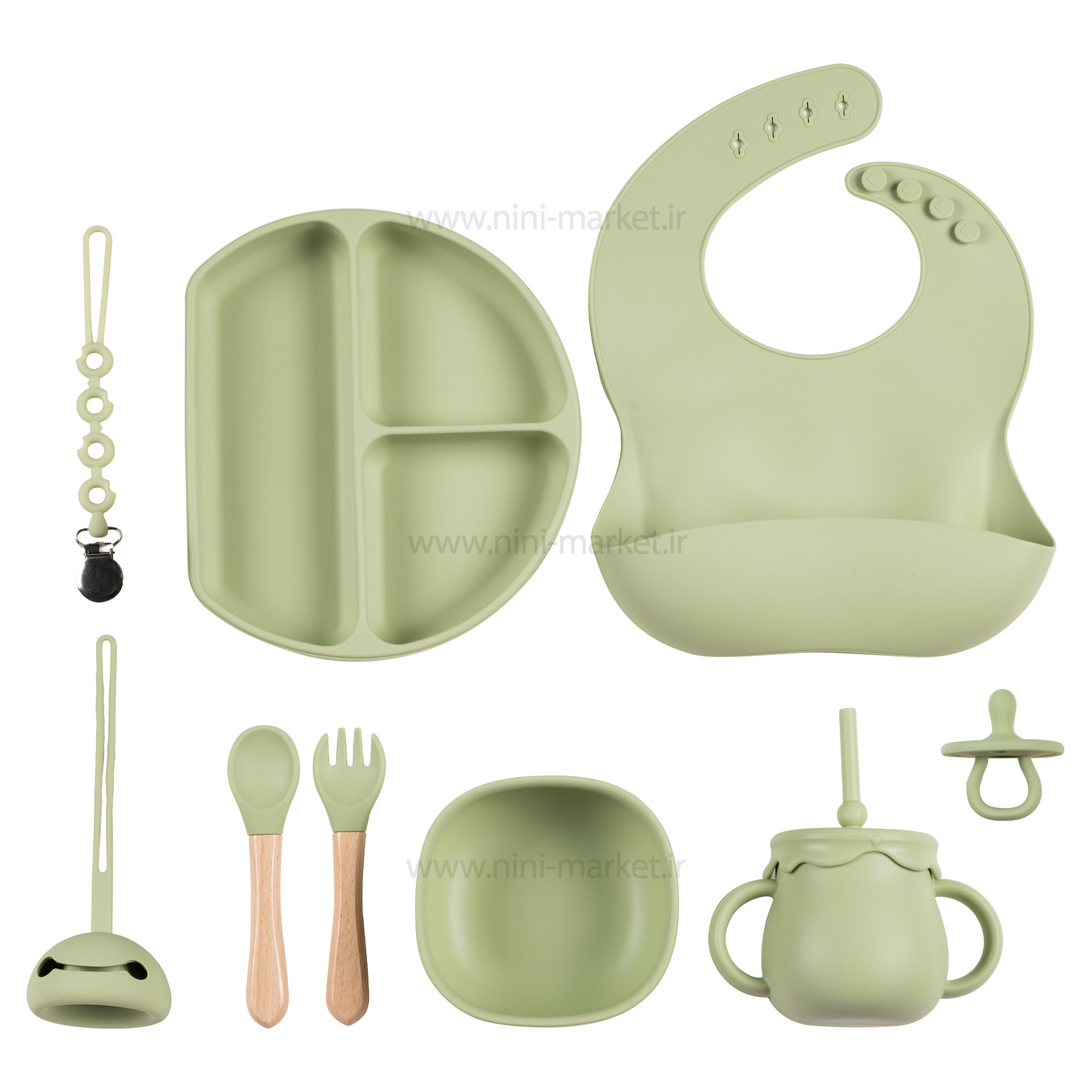 ست غذاخوری سیلیکونی 10 تکه رنگ سبز برند خارجی