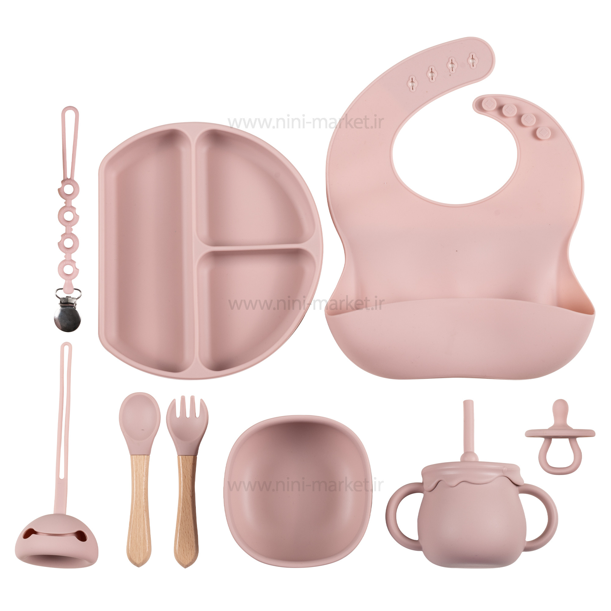 ست غذاخوری سیلیکونی 10 تکه رنگ صورتی برند خارجی