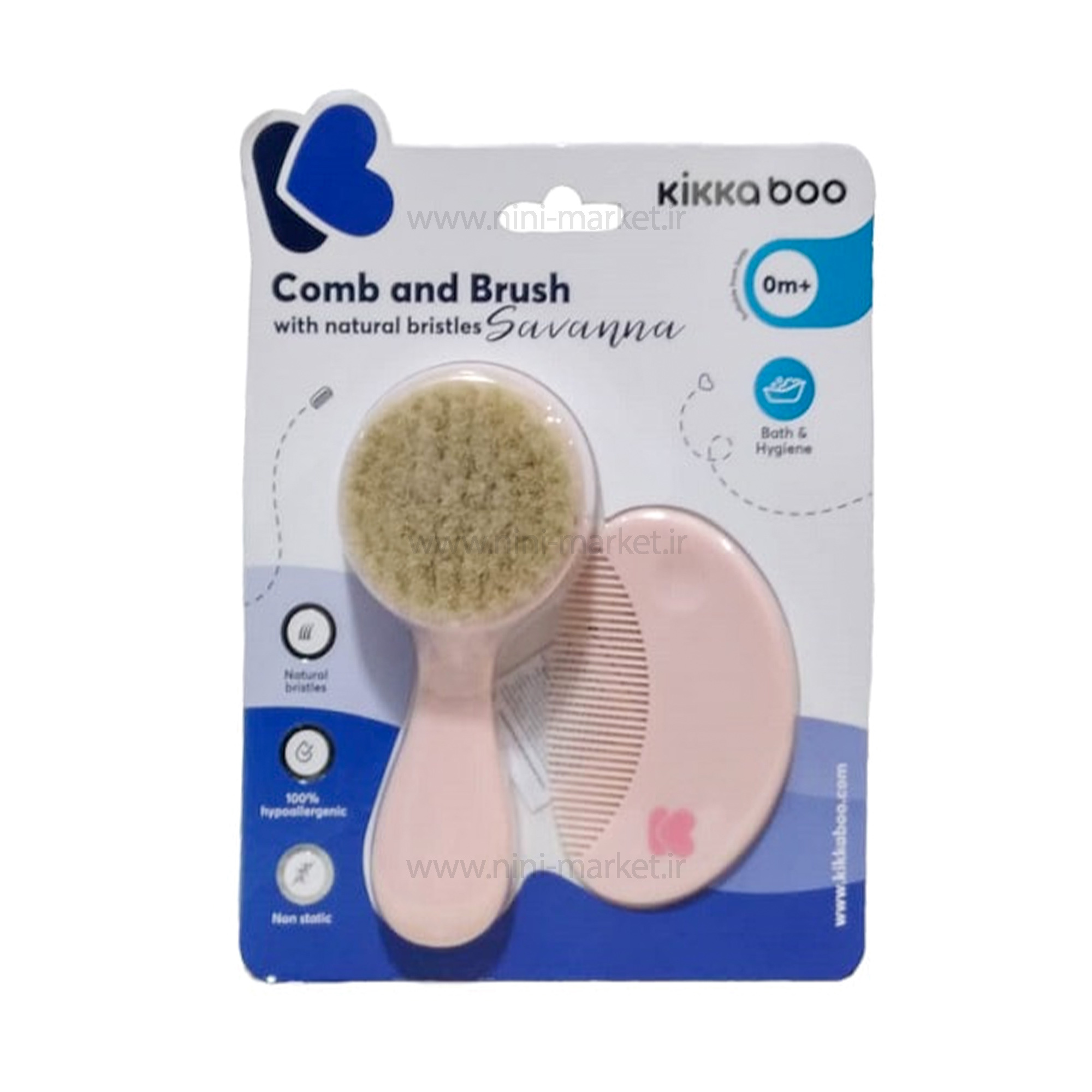 شانه و برس الیاف طبیعی رنگ صورتی کیکابو Kikkaboo