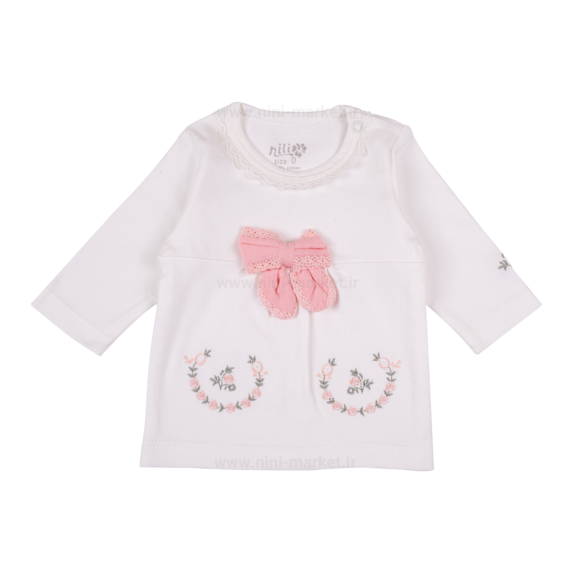 بلوز آستین بلند نوزاد طرح کاملیا نیلی Nili