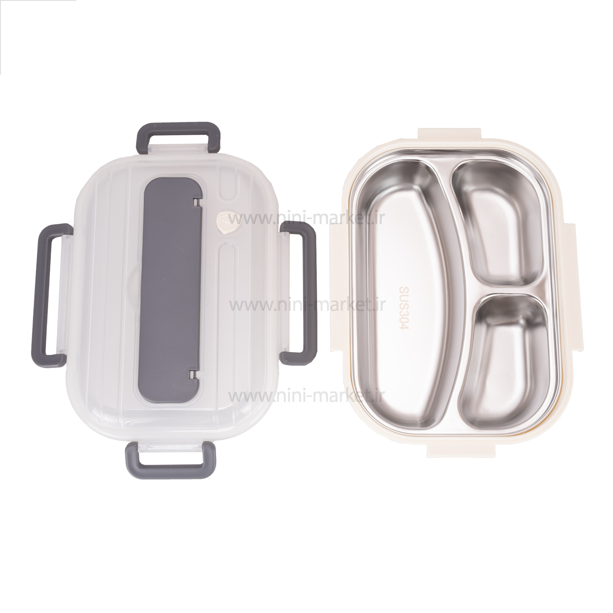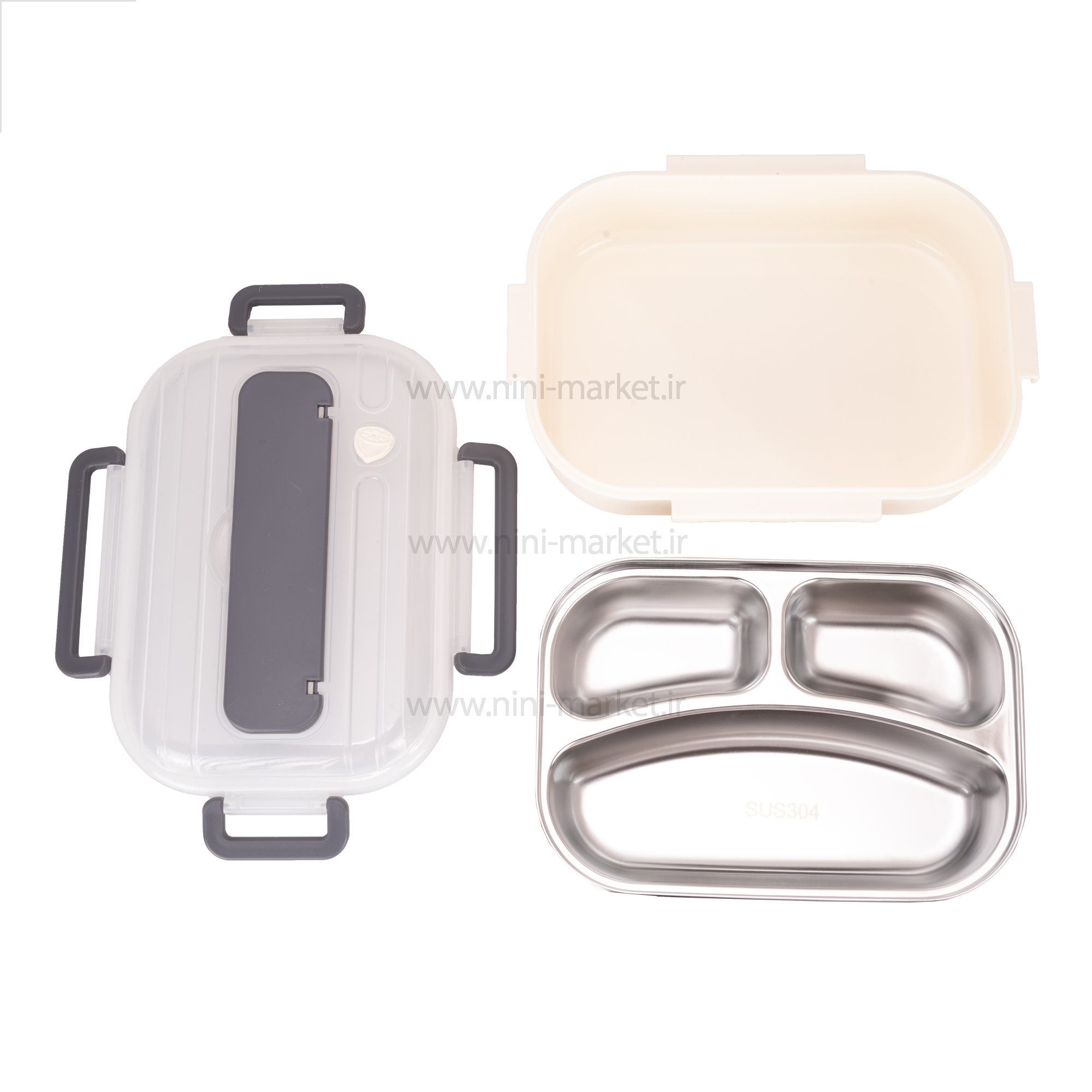 ظرف غذا استیل تقسیم دار طرح لیمو رنگ کرم خارجی