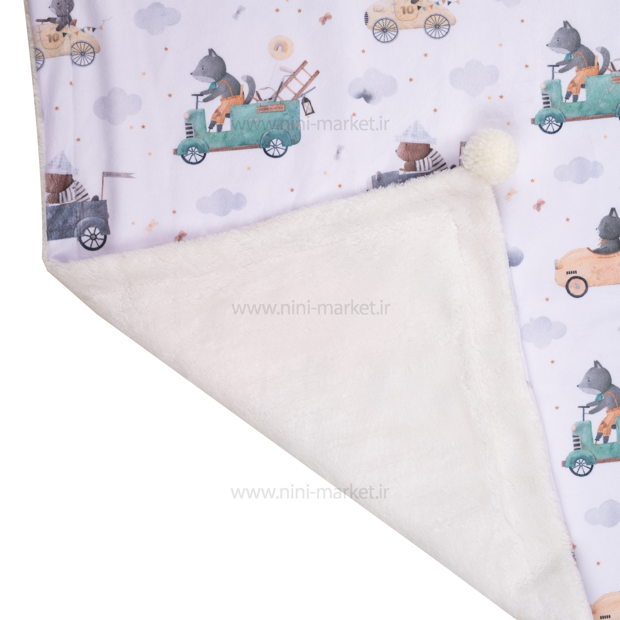 پتو دورپیچ مخمل طرح حیوانات ماشین سوار رنگ سفید کارترز Carters