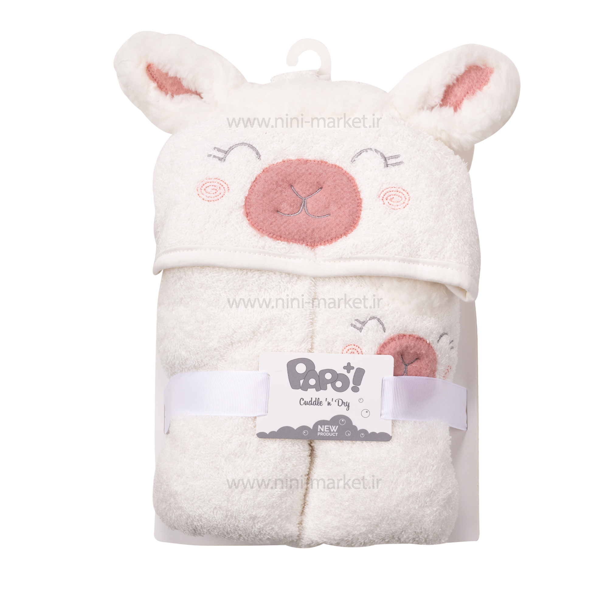 حوله تن پوش طرح لاما رنگ سفید صورتی پاپو Papo