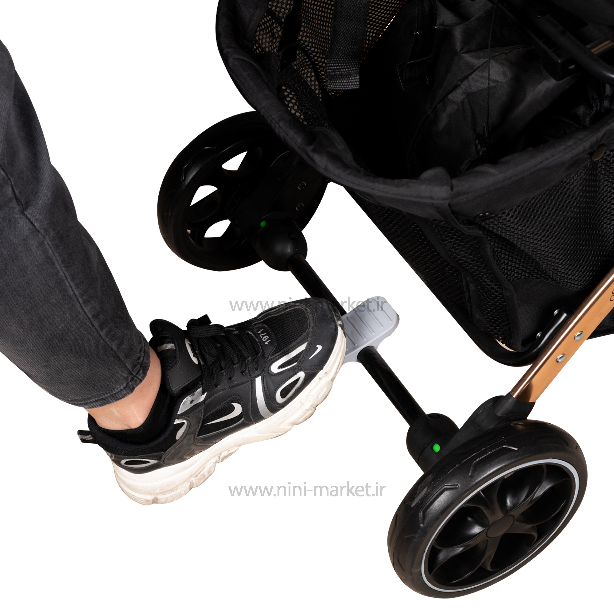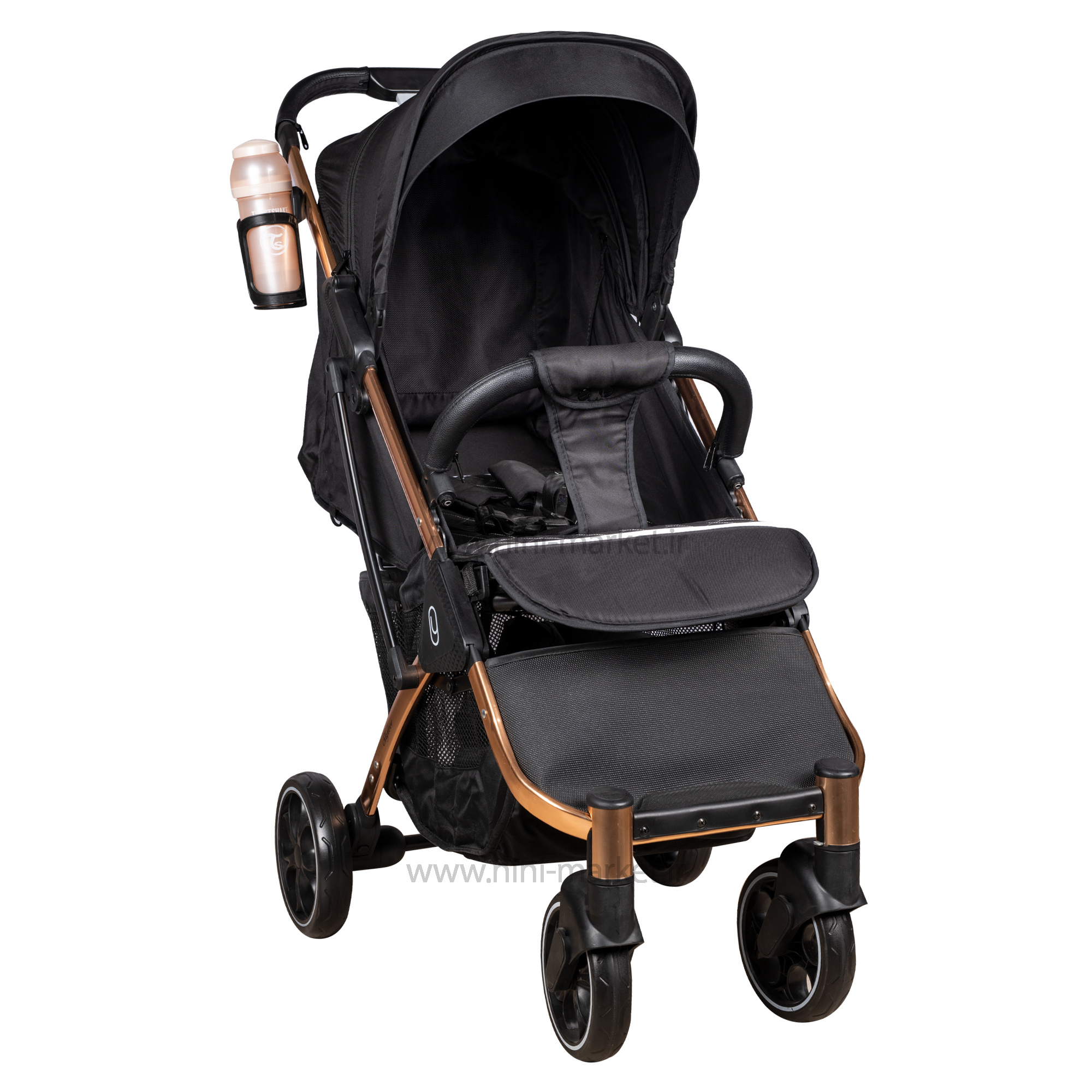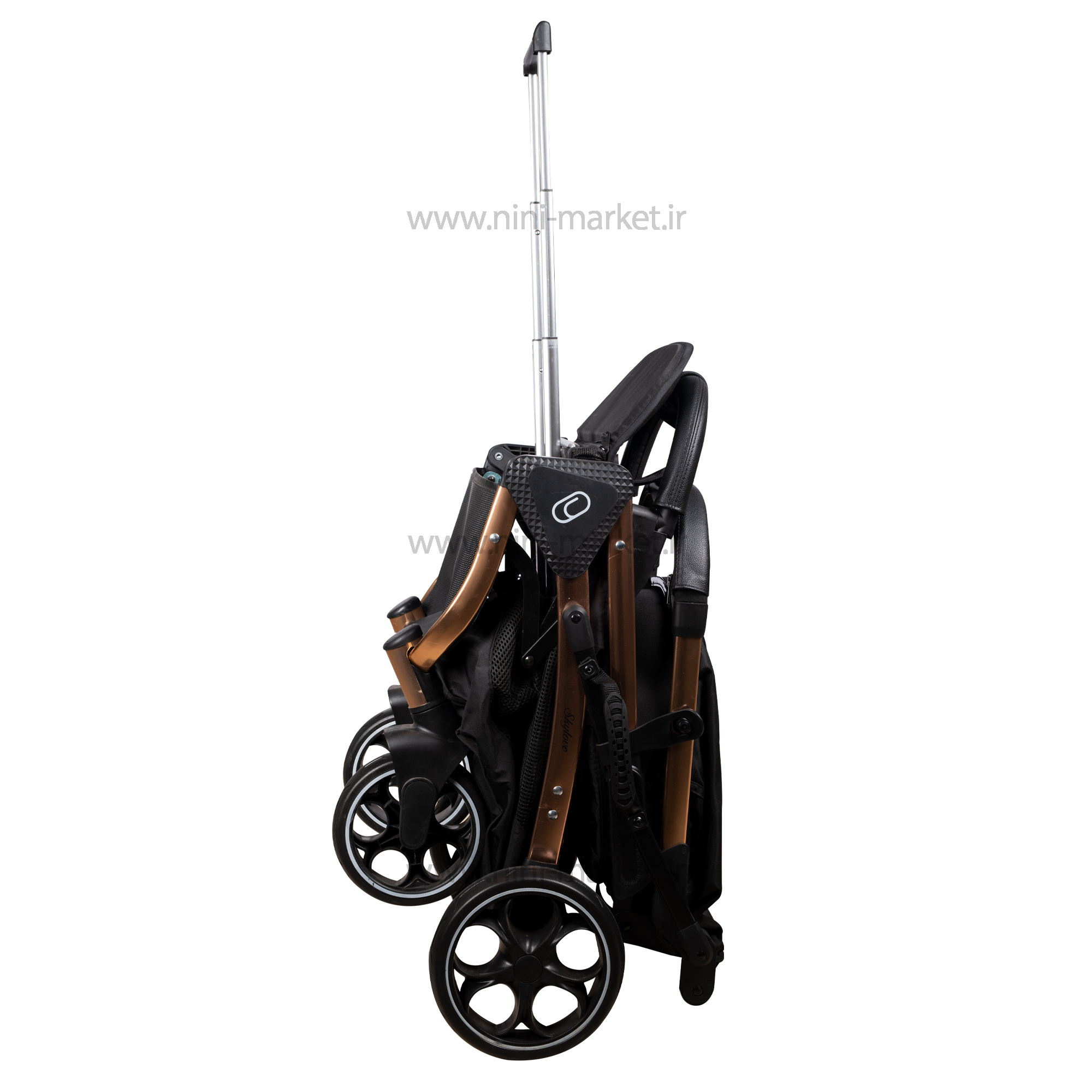 کالسکه تک تاشو جدید رنگ مشکی برند sky love یکی از ملزومات والدین برای حمل کودک است. این محصول کیفیت و کارایی قابل قبولی برای حمل کودک برخوردار می باشد. برای آن دسته از مادرانی که به سفر علاقه زیادی دارند و به دنبال یک کالسکه قابل حمل و جمع شو میگردند بسیار مناسب است. کالسکههای عصایی بهمراتب از کالسکههای مبله کوچکتر و سبکتر بودند و به هنگام بسته شدن فضای کمتری داخل صندوقعقب خودرو اشغال میکردند. علت نامگذاری این کالسکهها بهعنوان کالسکه تاشو این بود که به هنگام بستن از عرض نیز تا میشدند و همانند عصا لاغر ولی کشیده میشدند. تنها ایرادی که به آنها وارد بود این بود که قدبلندی داشتند و نمیشد در سفر به هواپیما آنها داخل کابین هواپیما برد. پسازآن کالسکههای مسافرتی کابین سایز وارد بازار شدند که وقتی آنها را میبستید از سه قسمت تا میشدند ؛ کمترین فضای ممکن را داخل صندوق خودرو اشغال میکردند و میتوانستید آنها را داخل کابین هواپیما ببرید و داخل باکس بالای سرتان قرار دهید. دارای خواب کامل برای قرار دادن نوزاد و تنظیم زاویه خواب تا چهارسالگی کودک است. چرخ های عقب دارای ترمز و چرخ های جلو دارای گردش 360 درجه بسیار روان میباشد بهراحتی جمع شده ، داخل یک کاور قرار میگیرد.به هنگام بسته بودن دارای یک دسته چمدانی است که بهراحتی میتوان آنها همانند یک چمدان روی زمین کشید و دیگر نیاز به بلند کردن کالسکه نیست.جلو پایی کالسکه برای راحتی هرچه بیشتر کودک در دو حالت قابل تنظیم میباشد. کالسکه اسکای لاو دارای یک جا لیوانی برای قرار دادن لیوان و یا شیشه شیر کودک است. بدنه طلاییرنگ ، دسته و گارد چرم ظاهری بسیار جذاب بخشیده است. سبد زیر کالسکه برای قرار دادن ملزومات کودک و همچنین وسایل والدین تعبیهشده است.در انتها اگر به دنبال یک کالسکه مسافرتی کابین سایز با بدنه طلایی جذاب و شیک و همچنین سبک و کم جا میگردید این کالسکه انتخاب بینظیری خواهد بود.