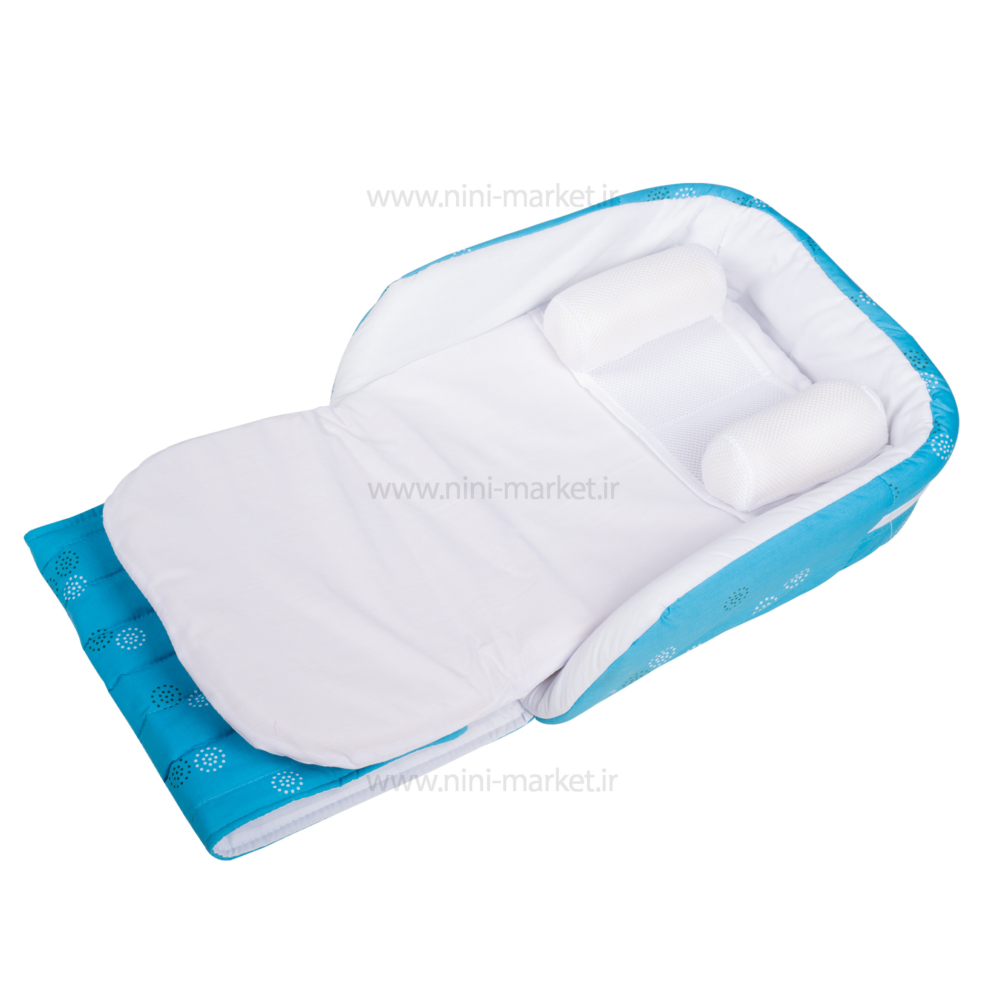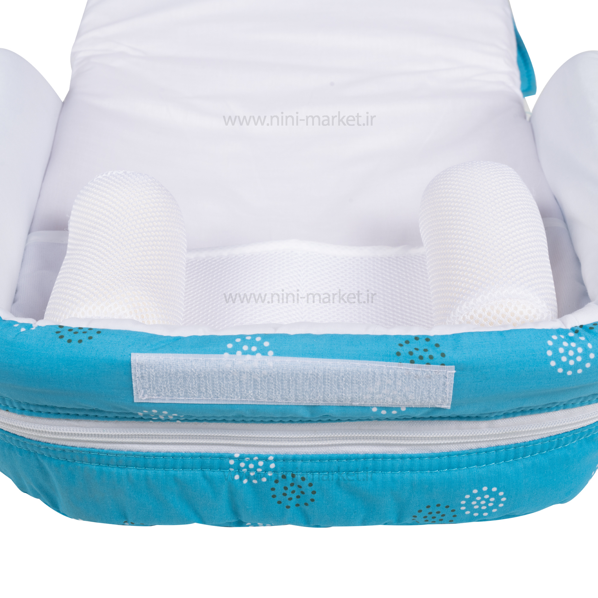 جاي خواب کودک رنگ آبی سناگل نست Snaggle Nest یک وسیله کاربردی برای مسافرت و گردش است که با خیال راحت و بدون استرس کودک را درون آن بگذارید و نگران جای خواب کودک نداشته باشید.نوزادان معمولا حدود ۱۷ ساعت در روز میخوابند، بنابراین باید گفت که یکی از مهمترین لوازم مورد نیاز آنها، تشک مناسب و راحت است. داشتن یک خواب شبانه خوب برای نوزاد ، علاوه بر اینکه باعث می شود که حس شادابی و سرحالی داشته باشد بر سلامت روان و جسم نوزاد هم تاثیر می گذارد . از طرفی یکی از نگرانی های والدین بیدار شدن و یا ناراحتی کودک به هنگام جابجایی نوزاد به قسمت های مختلف خانه، در هنگام سفر و بیرون از خانه می باشد. جهت رفع این دغدغه استفاده از تشک مخصوص نوزاد توصیه می شود و ما به شما جاي خواب که یک وسیله ای مناسب برای نوزاد دلبند شما است را معرفی می کنیم . تشک جای خواب نوزاد snaggle nest وسیله ای مناسب جهت محافظت از سر و بدن و پای نوزاد است و ایمنی کامل را با گردش هوای مناسب ایجاد می کند. این تشک به راحتی در گهواره و یا روی تخت پدر و مادر قرار می گیرد . جنس این تشک نخی و پلی استر و به راحتی قابل شستشو می باشد. تشک به آسانی جمع می شود و به صورت کیف در می آید در نتیجه به راحتی قابل حمل است . این تشک ۴ لایه بوده و دارای یک روکش بسیار لطیف و ضد حساسیت، یک لایه ضد آب و یک لایه فوم نرم می باشد. داخل این تشک، یک لایه طلقی وجود دارد که به استحکام بیشتر آن کمک می نماید. این لایه در قسمت زیرین تشک دارای منافذ کوچکی می باشد که به جریان یافتن هوا کمک می نماید و مانع از تعریق الیاف تشک می گردد. این طلق در قسمت طرفین تشک، یک لبه دیواره مانند را ایجاد می نماید که به وسیله یک روکش بسیار نرم پوشانده شده است. این لبه ها از سر نوزاد محافظت کرده و مانع از غلت زدن و بیرون افتادن وی از تشک می گردد. جای خواب snaggle nest قابل شستشو می باشد. شما می توانید آن را داخل ماشین لباسشویی قرار داده و بشویید.