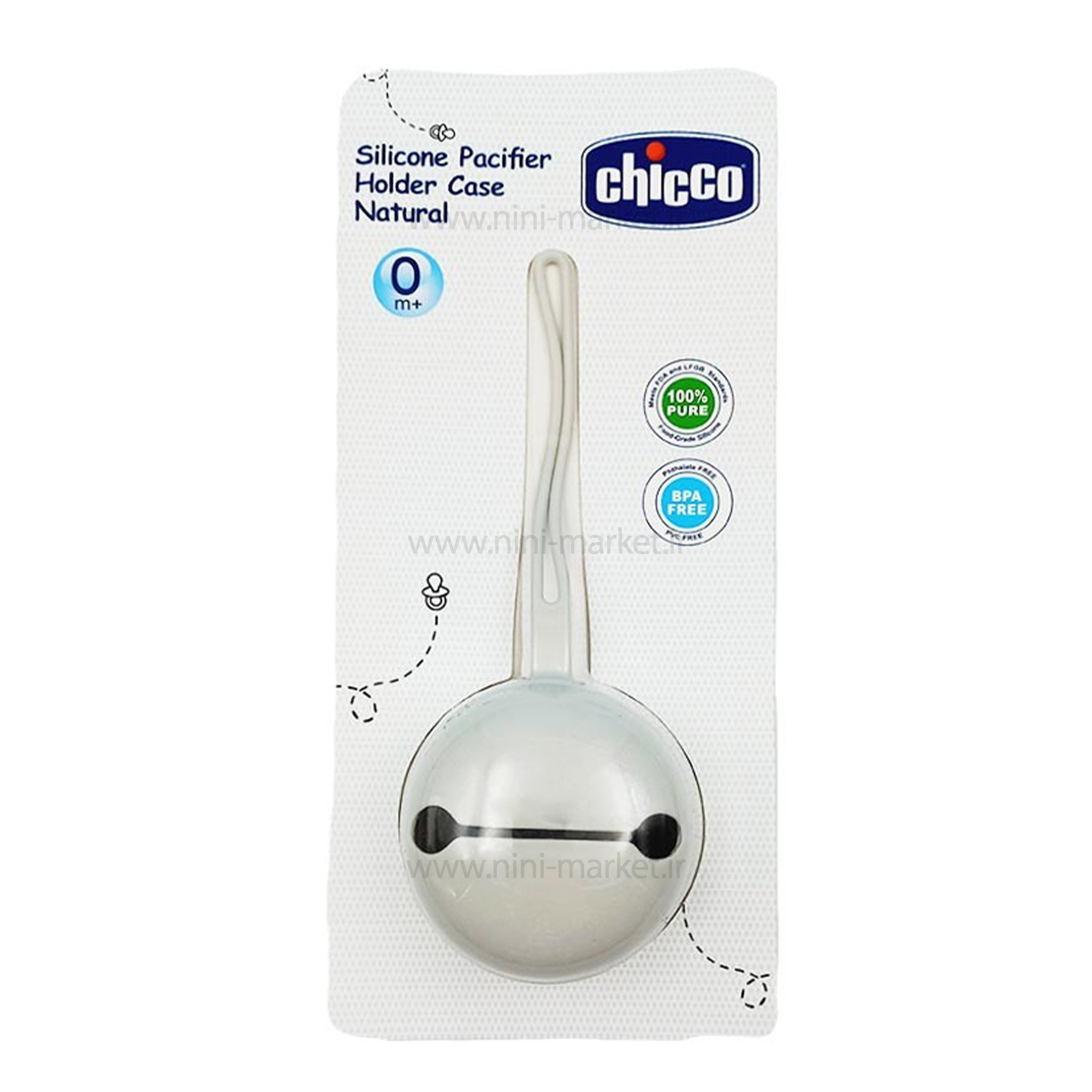 قاب پستانک سیلیکونی رنگ سفید چیکو Chicco یک وسیله کاربردی برای مادرانی نوزاد می باشد که نگران گم شدن یا کثیف شدن پستانک نوزادشان هستند می باشد و هر زمان پستانک را نیاز نداشتید می توانید داخل محفظه بگذارید تا از آلودگی در امان بماند. قاب پستانک چیکو دارای یک بند بلند و قابل اتصال به دسته ی کالسکه یا کریر است. شکاف میانی روی قاب، برای این است که دسته ی پستانک بیرون باشد.این قابلیت سبب می شود تا هر زمانی که خواستید به راحتی پستانک را بیرون بیاورید.این محصول تهیه شده از 100 درصد سیلیکون و فاقد هر گونه مواد مضر مانند بیسفنول آ BPA است.برای دیدن نمونه های بیشتر اینجا کلیک کنید