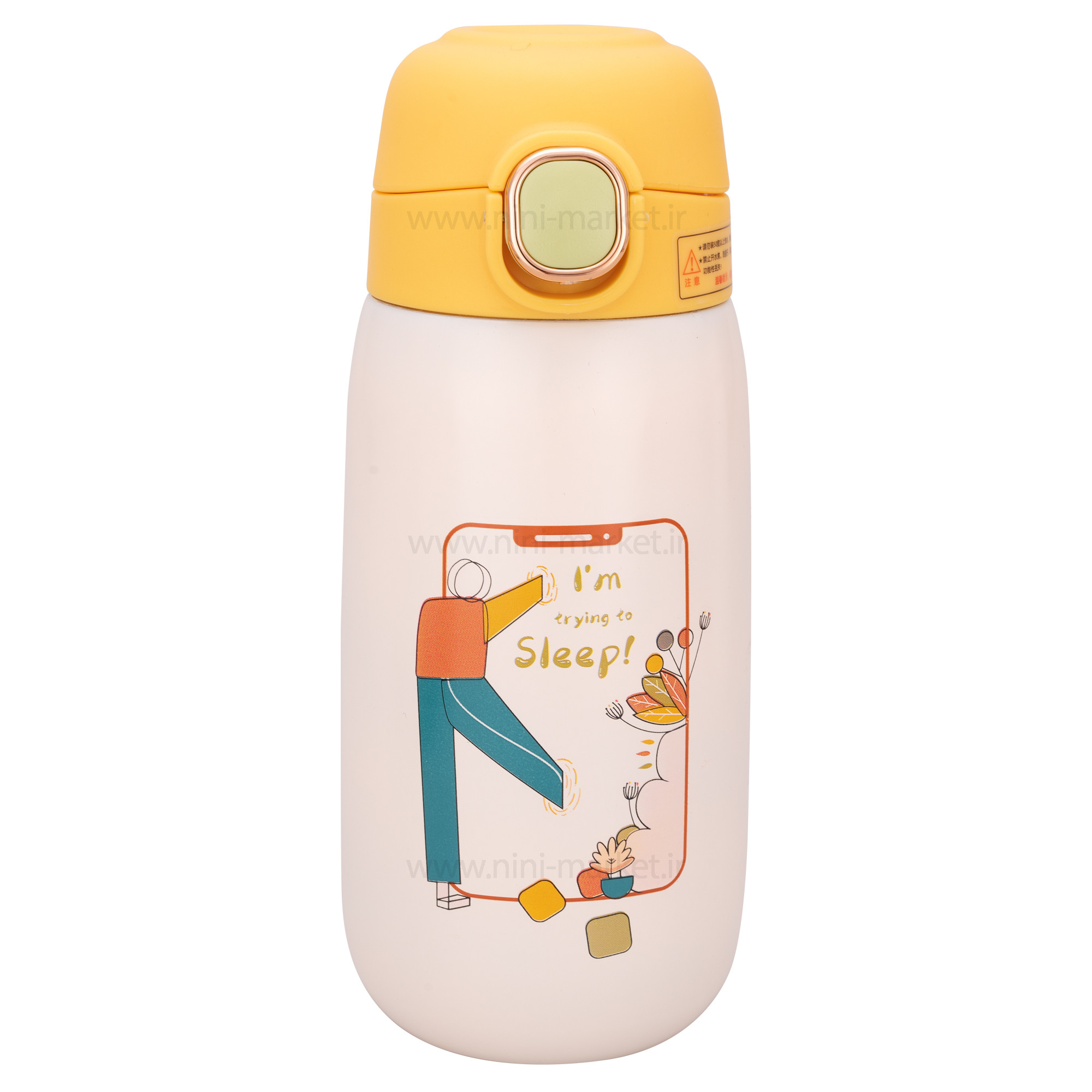 فلاسک آب استیل قفل دار تپل عروسکی رنگ زرد برند خارجی