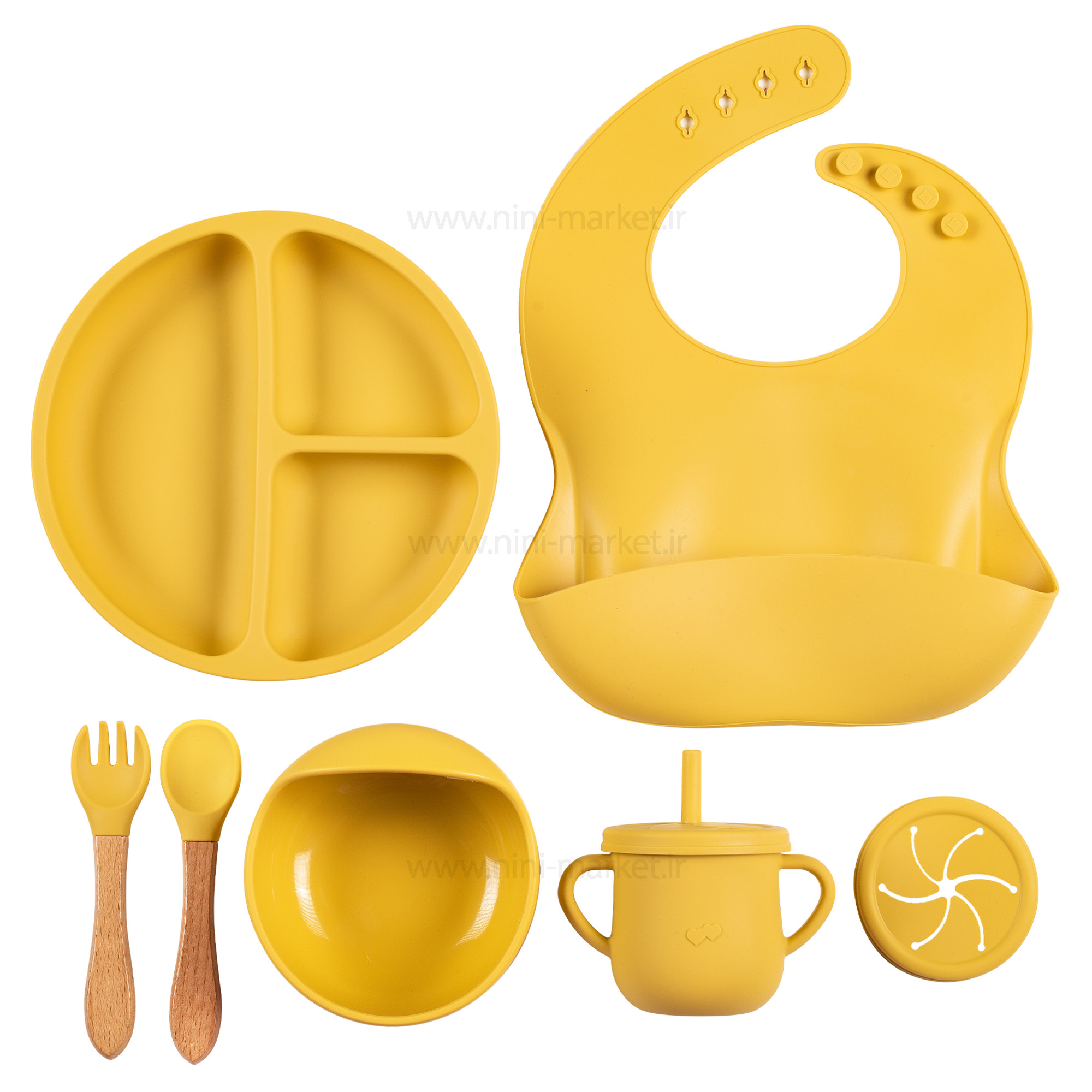 ست غذاخوری سیلیکونی 6 تکه رنگ خردلی برند خارجی