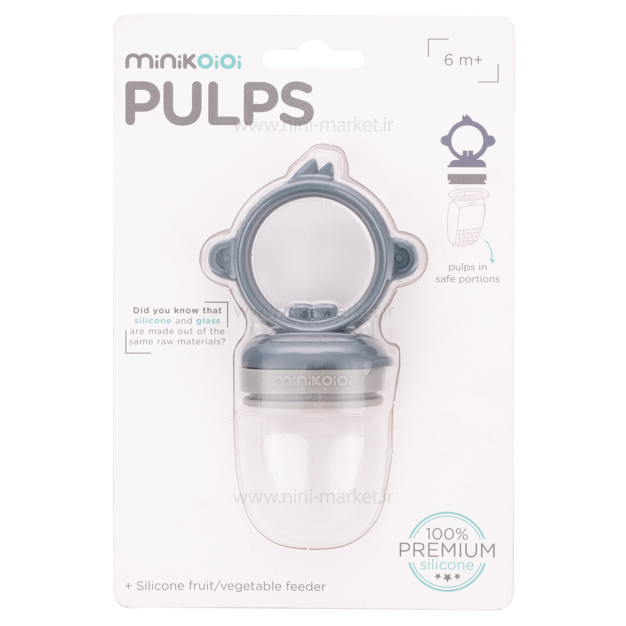 پستانک میوه خوری رنگ سرمه ای مینیک اوی اوی Minik Oioiیکی از پرطرفدار ترین کالاهای کودک در بین مادران می باشد. توری میوه خوری به شما این امکان را می دهد تا قطعات میوه و انواع پوره را بدون هیچگونه نگرانی از پریدن آن در گلوی کودک در اختیار فرزندتان قرار دهید. همینطور که می دانید کودکان از سن ۶ ماهگی قادر به خوردن برخی از میوه جات و غذاهای کمکی هستند که این محصول در سهولت خوردن خوراکیها به والدین و کودک کمک می کند. شما با داشتن یک توری میوه خوری می توانید از بابت پریدن غذا در گلوی کودکتان مطمئن باشید. زیرا توری میوه خوری MinikOiOi دارای یک سری سیلیکونی منعطف و در عین حال مقاوم می باشد تا از پریدن غذا در دهان کودک خودارری کند.کودک با مکیدن این پستانک می تواند از عصاره میوه ای که داخل این محصول قرار گرفته است تغذیه کند. داشتن یک دستگیره مناسب با سایز دست کودک کمک می کند تا فرزندتان به راحتی پستانک را نگه دارد و به تنهایی از آن استفاده کند. روی سری سیلیکونی عصاره خوری MinikOiOi سوراخ های کوچکی است که اجازه می دهد تا کودک بتواند با خیال راحت خودش تغذیه کند. کودک به راحتی و بدون اینکه غذا به گلویش بپرد میتواند آن را مانند پستانک بمکد. نرم و در عین حال بادوام است و می تواند هر چیزی را از میوه و سبزیجات پخته و غذای تازه گرفته تا میوه های یخ زده را در خود جای دهد. جنس سری ۱۰۰% سیلیکون بادوام و مقاوم در برابر گاز گرفتن است- اندازه سری مناسب برای دهان های کوچک طراحی شده و هیچگونه آسیبی به فک و دهان کودک وارد نمی کند. قابلیت استرل کردن با مایع استریل و شستشو با ماشین ظرفشویی را داراست. از همه مهم تر دارای درپوش برای جلوگیری از کثیف شدن محتویات و سری آن می شود. داشتن یک دستگیره مناسب با سایز دست کودک کمک می کند تا فرزندتان به راحتی پستانک را نگه دارد و به تنهایی از آن استفاده کند.