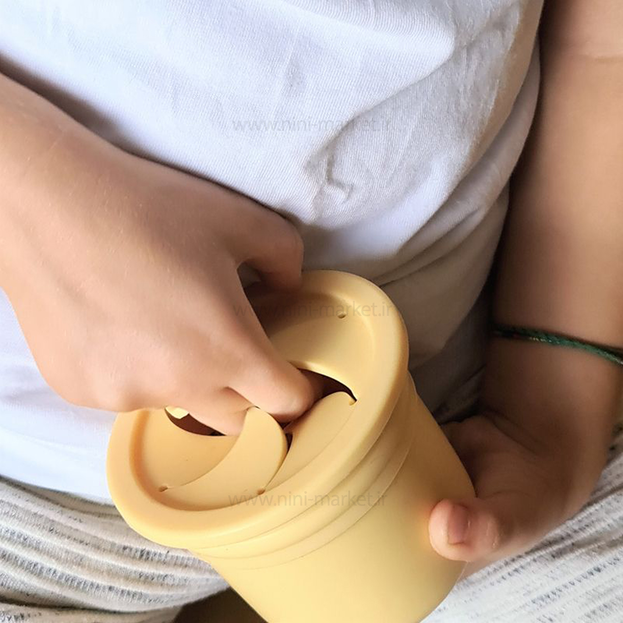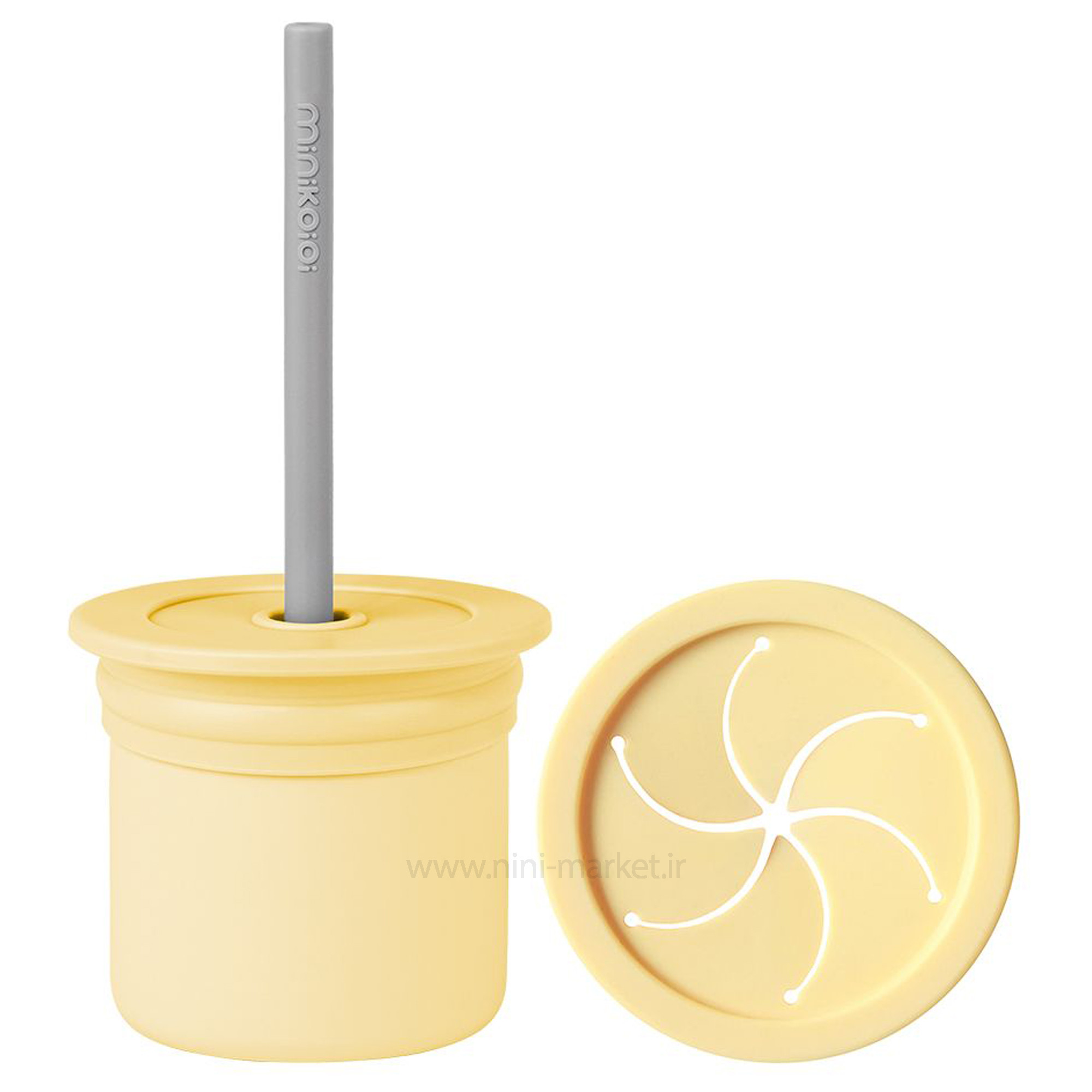 لیوان دو کاره سیلیکونی رنگ زرد مینیک اوی اوی Minik Oioi