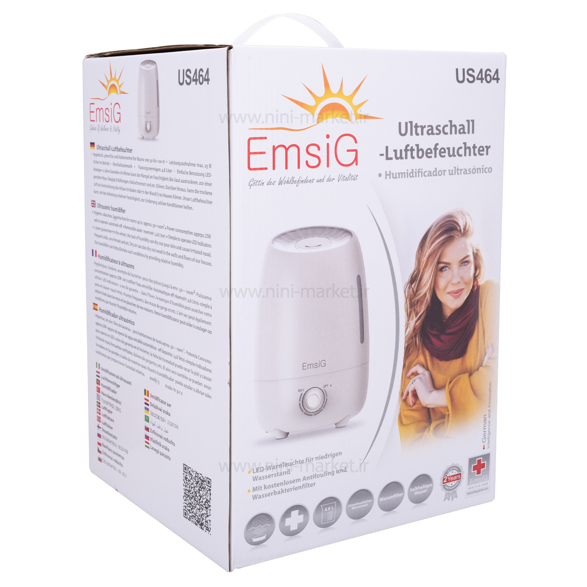 دستگاه بخور سرد التراسونیک 4.8 لیتر مدل Us464 رنگ سفید امسیگ Emsig
