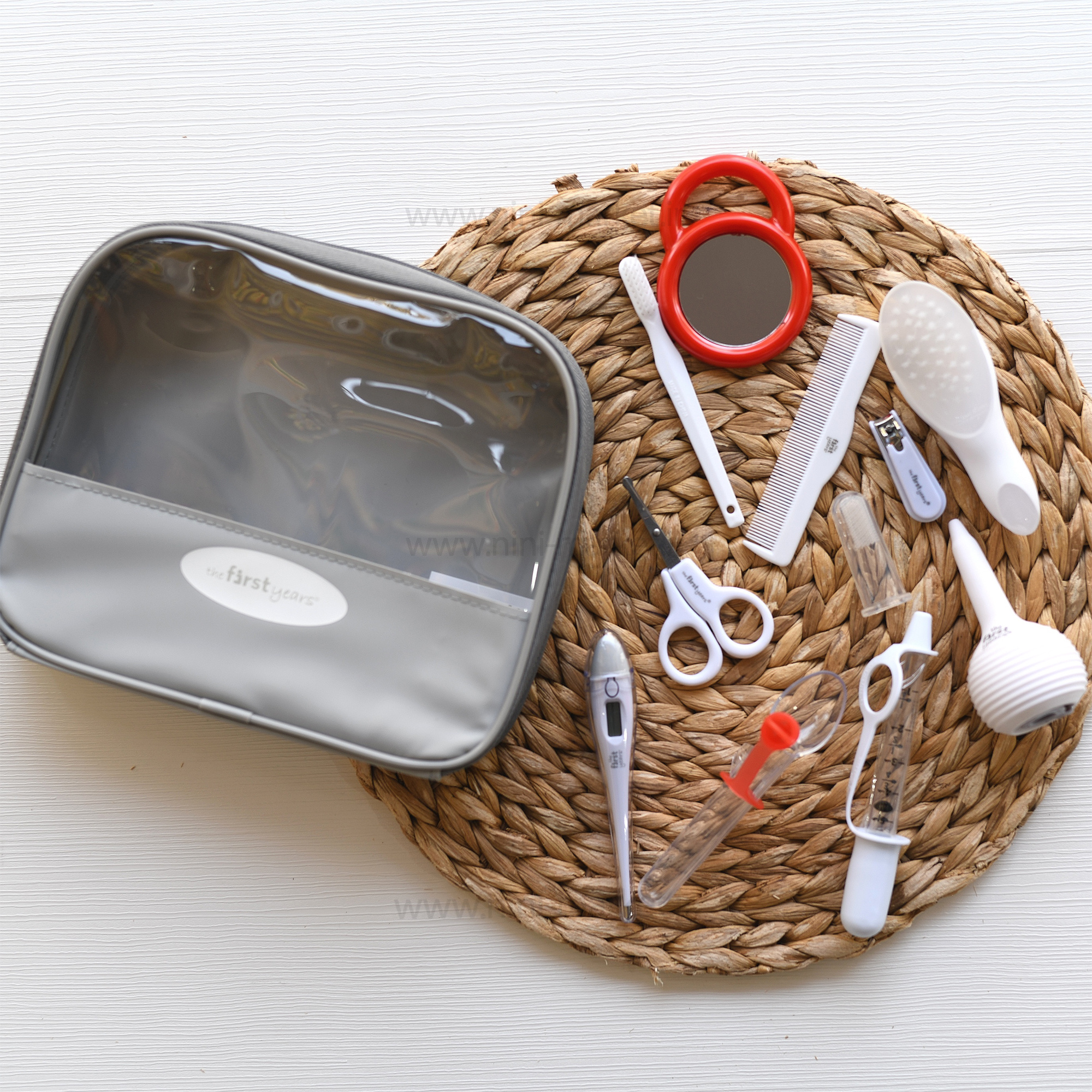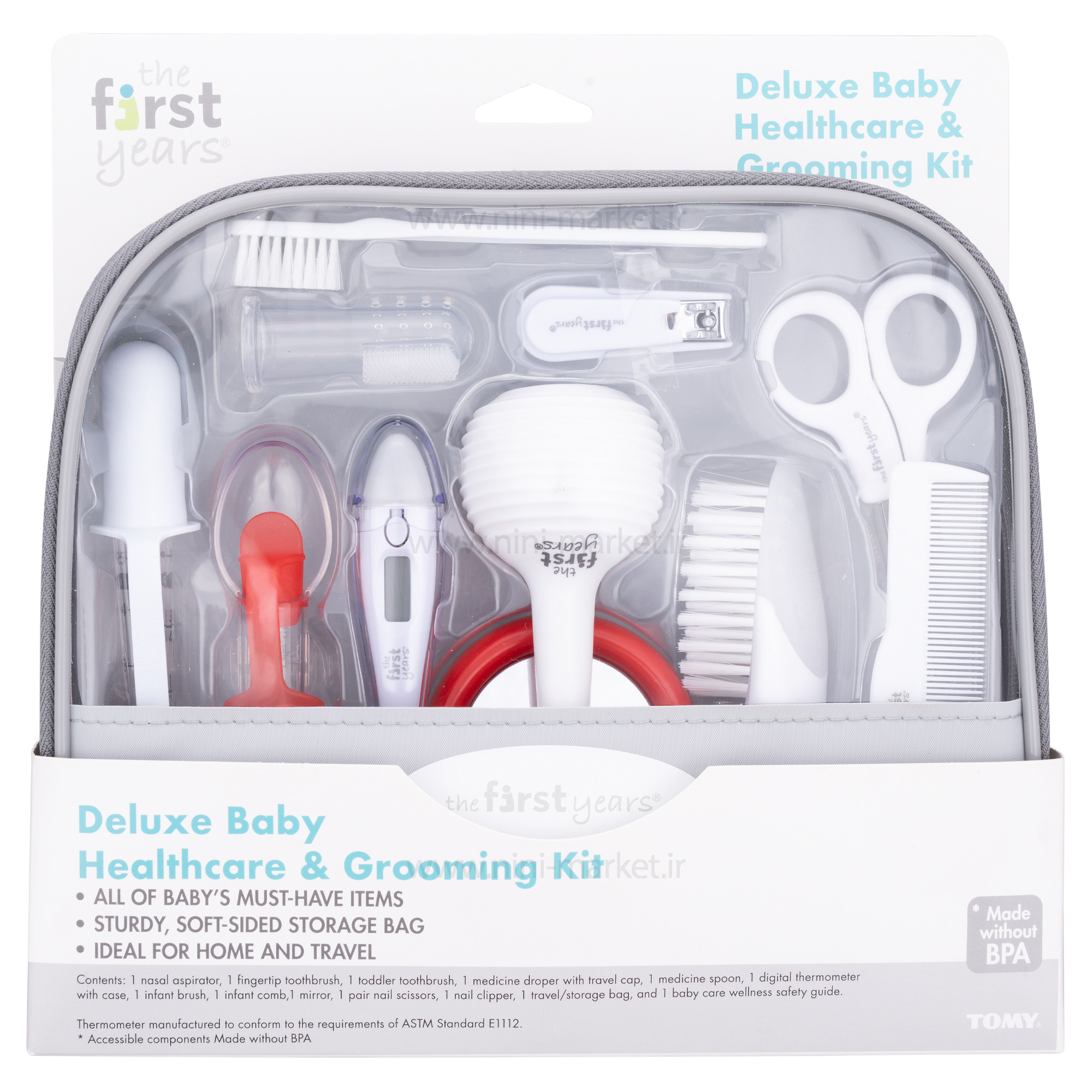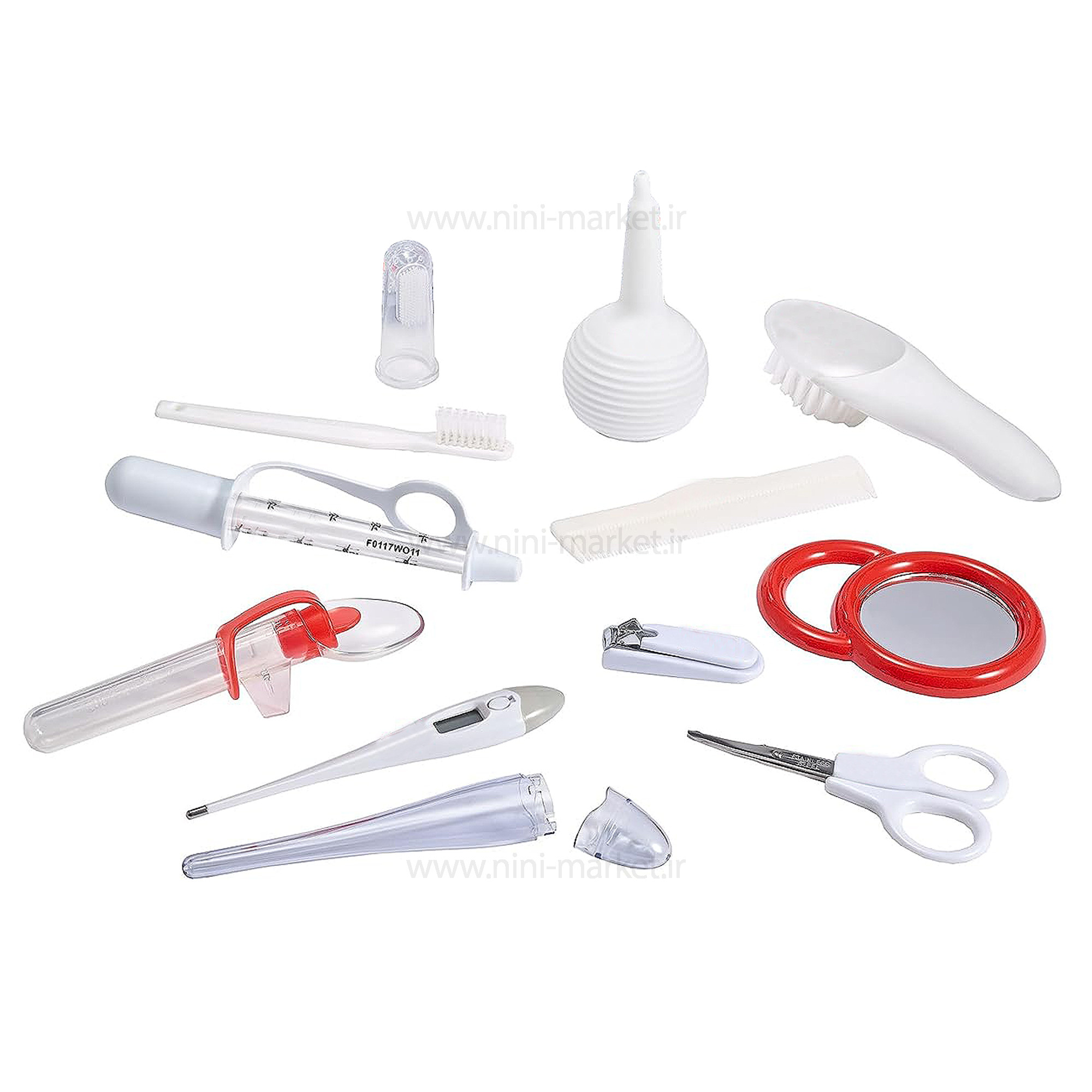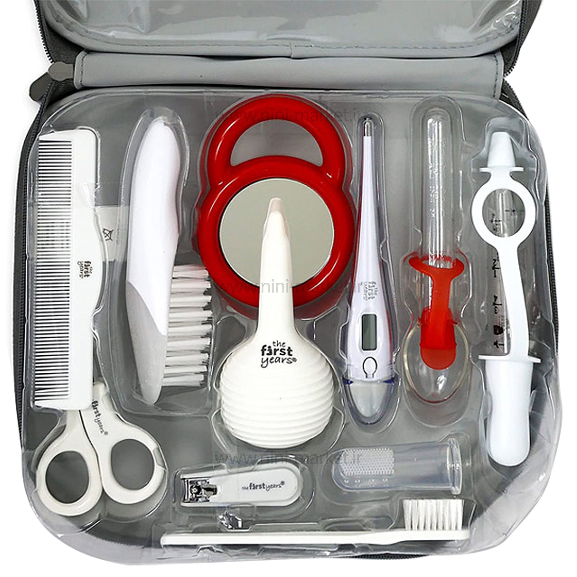 ست بهداشتی 12 تکه رنگ سفید دفرست یرزThe First Yearsیک پک کامل برای نوزادان تازه متولد شده بسیار حساس هستند و نیاز به مراقبت های خاصی دارند تا سلامت آن ها حفظ شود. چرا که در صورت بیمار شدن، فرایند درمان دشواری خواهند داشت و هم خود کودک و هم والدین بسیار اذیت می شوند. از این رو بهتر است برای نوزاد وسایل بهداشتی و مراقبتی وِیژه ای فراهم شود تا به کمک این وسایل بتوان نیاز های کودک را برطرف کرد. داشتن یک ست بهداشتی کامل و کارآمد برای نوزادتان بسیار با ارزش می باشد و چه بهتر که این ست داخل یک کیف متناسب با همان ست باشد و شما بتوانید کاملا جمع و جور آن را با خودتان به سفر برده و در کل همیشه همراه داشته باشد. برند آمریکایی فرست یرز The First Years با ارائه ست های بهداشتی با بسته بندی و کیف بسیار با کیفیت کار را برای والدین بسیار راحت کرده و شما با خریدن ست های بهداشتی این برند که با توجه به نیاز نوزاد طراحی شده از دردسر های مربوط به پیدا کردن اقلام مختلف بهداشتی سیسمونی نوزاد دلبندتان رهایی پیدا می کنید . ست بهداشتی دفرست یرز 12 تکه بوده و شامل شانه،برس،ناخنگیر، پوآر بینی، قاشق داروخوری، قطره چکان، قیچی، 4 عدد سوهان ، آینه ، تب سنج ، مسواک و مسواک انگشتی به همراه یک کیف می باشد . ست بهداشتی دفرست یرز بهترین گزینه برای مادرانی است که به مراقبت بهداشتی نوزاد خود اهمیت می دهند. کل این مجموعه به صورت کاملا مرتب داخل یک کیف قرار گرفته اند.ست بهداشتی فرست یرز شامل يک تب سنج مخصوص زير بغل يا مقعد بوده که با دقت بالایی عمل دماسنجی را انجام می دهد.قطره چکان داروخوری این ست نیز، دارای درجه بندی مجهز به درپوش ضد نشت جهت ذخيره دارو است.همچنین یک قاشق دارو خوری با درب پوش و بدنه ی مندرج دارد. يک پوآر بينی ضد حساسيت هم برای پاک کردن مخاط بینی نوزاد در این ست موجود است.شامل یک ناخن گیر استیل می شود که به وسيله آن به راحتی می توانيد ناخنهای نوزاد خود را کوتاه کنيد، بدون اینکه هیچ گونه نگرانی داشته باشید. قیچی ناخن فرست یرز دارای تیغه ی استیل و دسته های پلاستیکی برای گرفتن ناخن نوزاد است. یک شانه با دندانه های ایمن و یک برس با الیاف نرم برای موهای لطیف سر نوزاد دارد. مسواک انگشتی فرست یرز مناسب برای دوران دندان درآوردن نوزاد و همچنین ماساژ لثه هاست. مسواک دیگر این ست برای تمیز کردن دندان های کوچک نوزاد با فرچه ای نرم و دسته ی بلند است.یک آینه ی ایمن با قاب قرمز در این ست موجود است که جهت شناخت اعضای چهره ی نوزاد است.البته کاربرد آن در این ست برای زمان های شانه کردن موهای نوزاد و نگه داشتن آینه و دیدن خودش است. در نظر داشته باشید که تمامی این اقلام در یک کیف مخصوص قرار می گیرند که از گم شدن و پراکنده شدن آن ها جلوگیری به عمل می آورد.