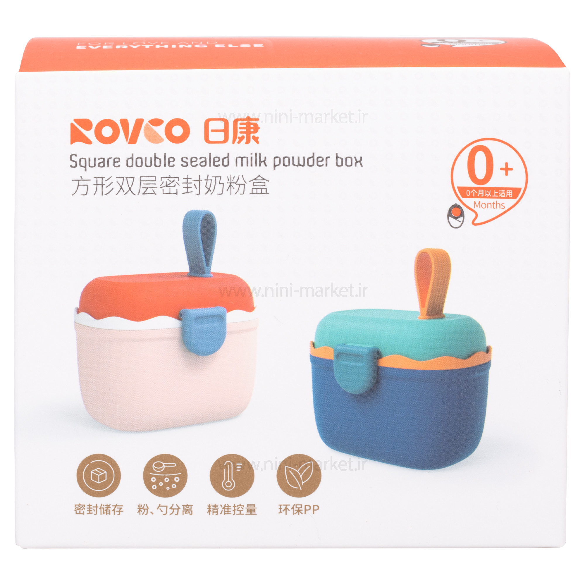 انباری شیرخشک رنگ سرمه ای روکو Rovco یک وسیله ای بسیار مناسب جهت نگهداری شیرخشک در بیرون از منزل می باشد. حمل قوطی شیرخشک بعلت جاگیر بودن آن در ساک لوازم واحتمال باز شدن درب آن یکی از مشکلات والدین است. گاهی اوقات شما فقط به یک یا دو وعده شیر خشک نیاز دارید و لازم نیست که کل قوطی شیر را حمل کنید. چاره این مساله استفاده از ظروف ذخیره شیر خشک یا انبار شیر می باشد.انبار شیرخشک رووکو دارای یک پیمانه جهت ریختن شیرخشک بداخل شیشه شیر بوده و همچنین یک لبه جهت صاف نمودن پیمانه نیز تعبیه شده است. مدرج بودن بدنه از مزایای دیگر این ظرف می باشد.جنس بدنه ظرف ذخیره شیرخشک پلی پروپیلن فاقد مواد مضر و سمی می باشد. از این ظرف جهت نگهداری مواد غذایی و تنقلات نیز می توان استفاده کرد. واشر روی درب از نفوذ مایعات بداخل آن جلوگیری می کند.داخل ظرف یک بخش برای تنظیم میزان شیرخشک داخل پیمانه دارد. یک درب اصلی دارد که روی ظرف را پوشش می دهد. واشر میانی این ظرف، از نشتی مواد داخل به بیرون جلوگیری می کند. درب انباری شیرخشک روکو با یک قفل کامل بسته می شود و نشتی ندارد. تهیه شده از مواد اولیه با کیفیت بالا و فاقد هر گونه مواد مضر مانند بیسفنول آ است. دارای ابعاد مناسب برای قرار دادن داخل ساک لوازم که برای سفر و گردش های بیرون از منزل یک گزینه عالی است. همچنین یک دسته ی کوچک برای سهولت در جابجایی دارد.