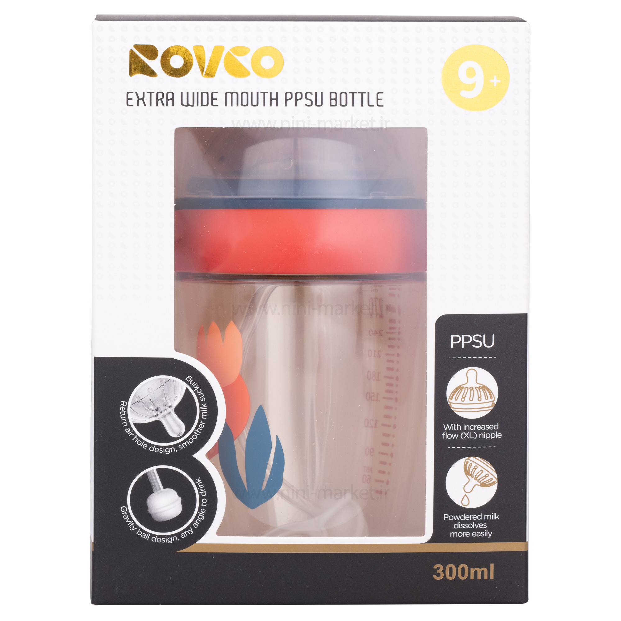 شیرخوری دسته دار 330 میل رنگ سرمه ای قرمز رووکو Rovco مناسب برای استفاده همزمان تغذیه با شیر مادر (سینه مادر) که مناسب برای کودکان 9ماه به بالا است . جنس بدنه تهیه شده از تریتان شفاف که ضد خش و نشکن میباشد که بدون هیچ نگرانی ندارید بعد از این که از دست کودک رها شد و زمین افتاد چون بسیار باکیفیت و مقاوم است. همچنین این محصول دارای دسته های ارگونومیک که به راحتی کودک میتواند آن را درست بگیرد و شیر را میل کند. یکی مهم ترین ویژگی های شیر خوری رووکو سرشیشه آن است که سری سیلیکونی پهن که شبیه سازی بسیار زیاد به سینه مادر دارد . ایده آل برای سفرهای در حال حرکت یا کوتاه هم همراه خود برد. دسته به گونه ای طراحی شده است که برای محافظت از مچ کودک قابل چرخش باشد. به لطف دهانه گشاد شیر خوری روکو می توان به سرعت تمیز و پر کرد و به شما در صرفه جویی در زمان کمک می کند. دارای نی 360 درجه که باعث نوشیدن راحت تر و تا آخرین قطره است، می باشد. همچنین دسته ها را می توان آزادانه چرخاند. این بر استفاده از کودک تأثیری نخواهد گذاشت. نی آب توپ گرانشی به کودک کمک می کند بدون توجه به نشستن، دراز کشیدن یا دراز کشیدن روی شکم از نوشیدن آب لذت ببرد، پایه پهن نوک پستان به بچه ها کمک می کند دهان خود را باز کنند و به راحتی میل کند. این نیز برای جلوگیری از تماس لب های بچه ها با کلاه در هنگام اتصال است. کودک می تواند یک مهر و موم قوی روی سیلیکون ایجاد کند تا به طور موثرتری مکیدن کند. روی شیر خوری درجه بندی وجود دارد، شما می توانید به وضوح ببینید که کودک شما چقدر آب نوشیده است.