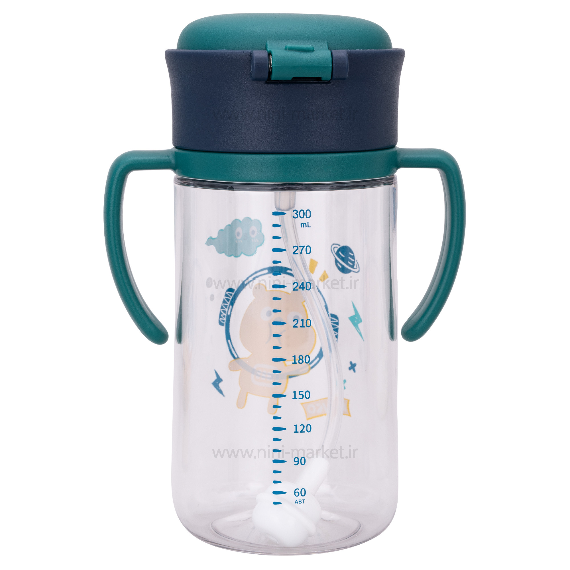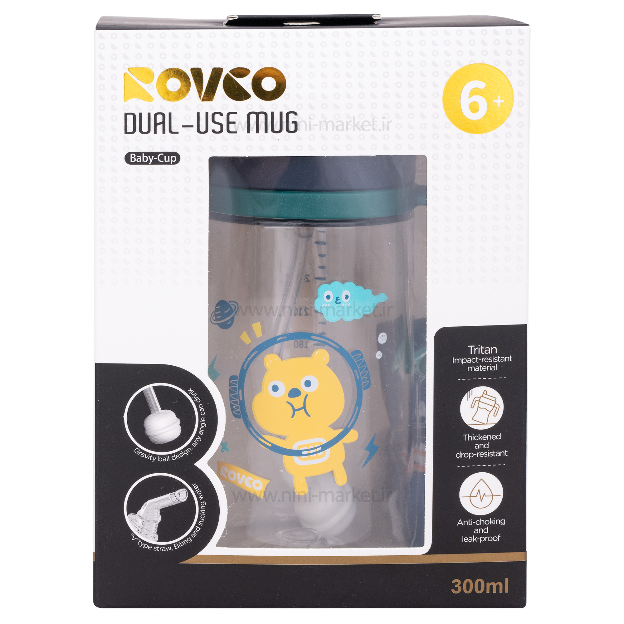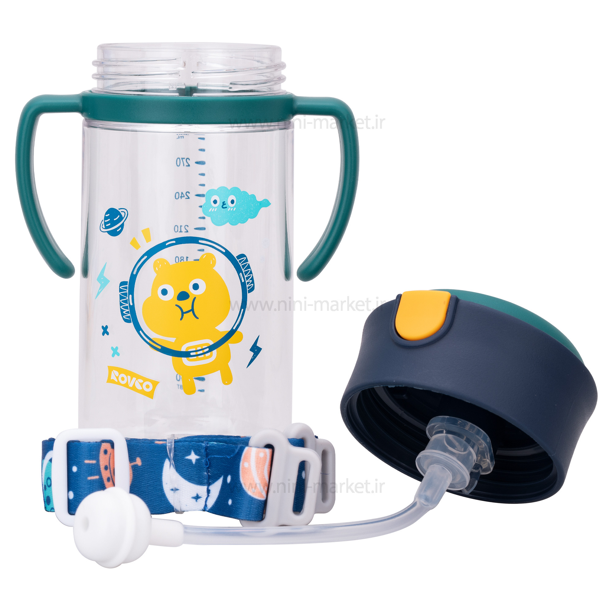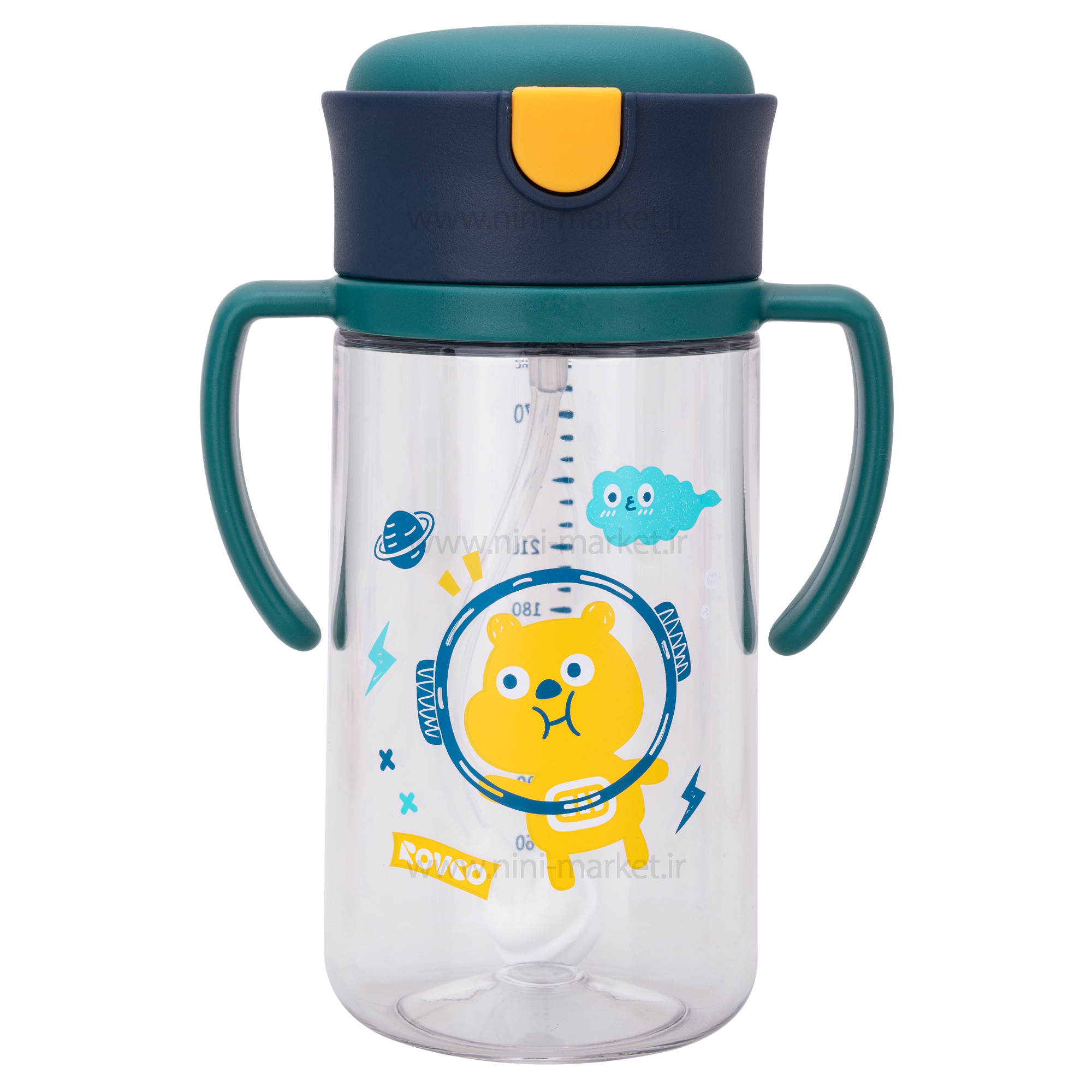لیوان نی دار 300 میل طرح خرس فضانورد رنگ سبز سرمه ای رووکو Rovco