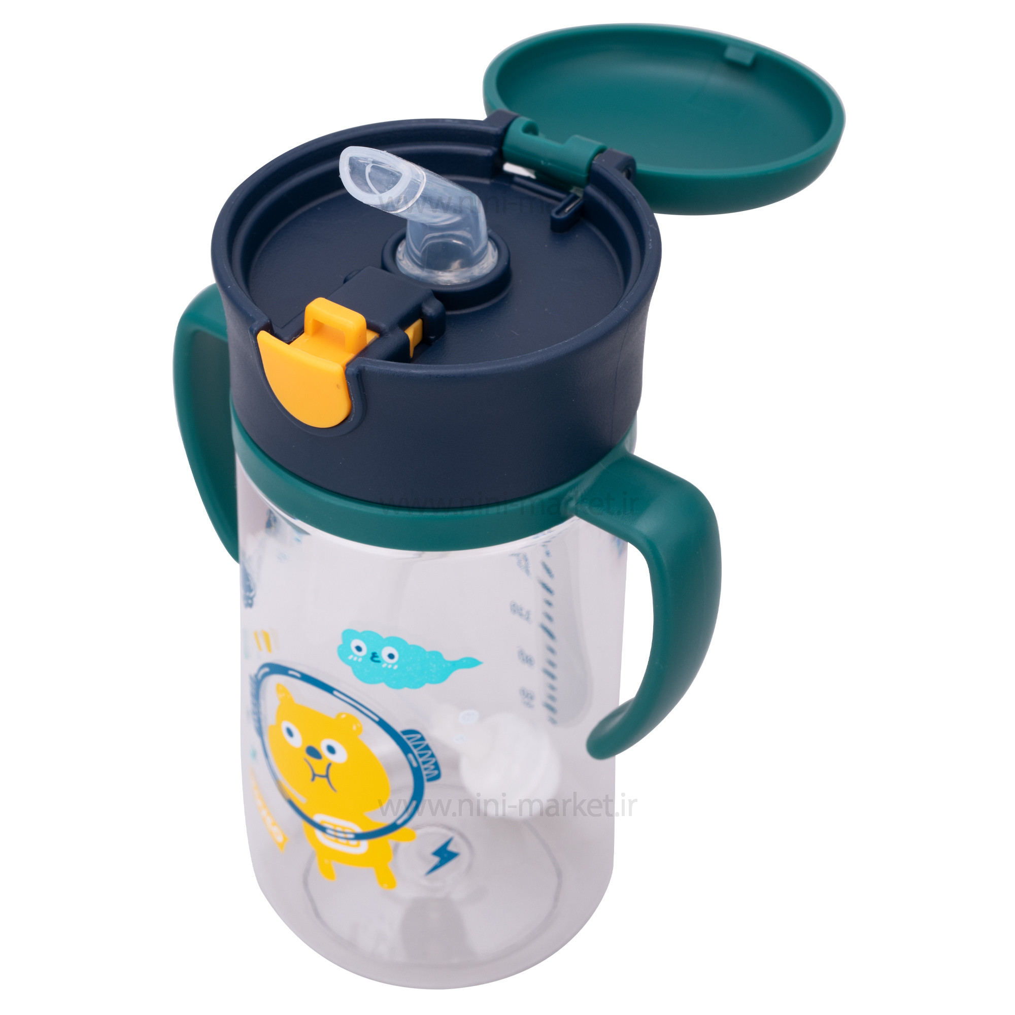 لیوان نی دار طرح خرس فضانورد رنگ سبز سرمه ای رووکو Rovco دارای ظرفیت 300 میلی لیتر می باشد و به کودک آموزش می دهد که چگونه از لیوان استفاده کند و کمی از شیشه شیر جدا شود. کودک از لحظه ای که بدنیا می آید با مکیدن آشنایی دارد و به همین دلیل وقتی به سن 6 ماهگی و غذا خوردن می رسد استفاده از لیوان و جدایی از شیشه شیر برایش سخت می شود. لیوان های نی دار آموزشی بهترین وسیله برای آشنایی کودک با لیوان می باشد، شکل ظاهری آنها شبیه لیوان است اما کودک می تواند توسط مکیدن مایعات داخل آنها را بخورد. ایده آل برای سفرهای در حال حرکت یا کوتاه هم همراه خود برد. دسته به گونه ای طراحی شده است که برای محافظت از مچ کودک قابل چرخش باشد، دسته ارگونومیک آن به راحتی برای کودک قابل درک است، کاملاً با دست کودک مناسب است و برای کودک راحت است که از هر زاویه ای بنوشد. لوله گزش V شکل، نی نرم و سیلیکونی آن مانند پستانک کودک است. و با درب ضد نشت؛ حتی زمانی که فنجان به شدت برگردانده یا تکان داده شود، آب نمی ریزد.برای کنترل سرعت گاز بگیرید، برای جلوگیری از سرعت جریان خیلی سریع و خارج از آب است، معمولاً در حالت بسته برای جلوگیری از نشتی، طول نازل متناسب با دهان کودک، به طوری که نوزادان راحت تر استفاده کنند. ساخته شده از پلاستیک با کیفیت و سیلیکون سازگار با محیط زیست با کیفیت بالا، ایمن و سالم، می تواند با جوشاندن در دمای بالا استریل شود، بنابراین کودک شما می تواند آن را با خیال راحت بنوشد. به لطف دهانه گشاد، این لیوان نی دار کودک یا کودک نوپا را می توان به سرعت تمیز و پر کرد و به شما در صرفه جویی در زمان کمک می کند. این لیوان ضد چکه است و نشتی ندارد. دارای نی 360 درجه که باعث نوشیدن راحت تر و تا آخرین قطره است، می باشد. همچنین دسته ها را می توان آزادانه چرخاند. این بر استفاده از کودک تأثیری نخواهد گذاشت. نی آب توپ گرانشی به کودک کمک می کند بدون توجه به نشستن، دراز کشیدن یا دراز کشیدن روی شکم از نوشیدن آب لذت ببرد، پایه پهن نوک پستان به بچه ها کمک می کند دهان خود را باز کنند و به راحتی میل کند. این نیز برای جلوگیری از تماس لب های بچه ها با کلاه در هنگام اتصال است. کودک می تواند یک مهر و موم قوی روی سیلیکون ایجاد کند تا به طور موثرتری مکیدن کند. روی بطری درجه بندی وجود دارد، شما می توانید به وضوح ببینید که کودک شما چقدر آب نوشیده است. این لیوان آموزشی کودک دسته هایی در دو طرف است تا کودک به راحتی آن را به دست بگیرد. لیوان نی دار رووکو دارای بند آویز برای استفاده راحت کودک و حمل آسان آن است.