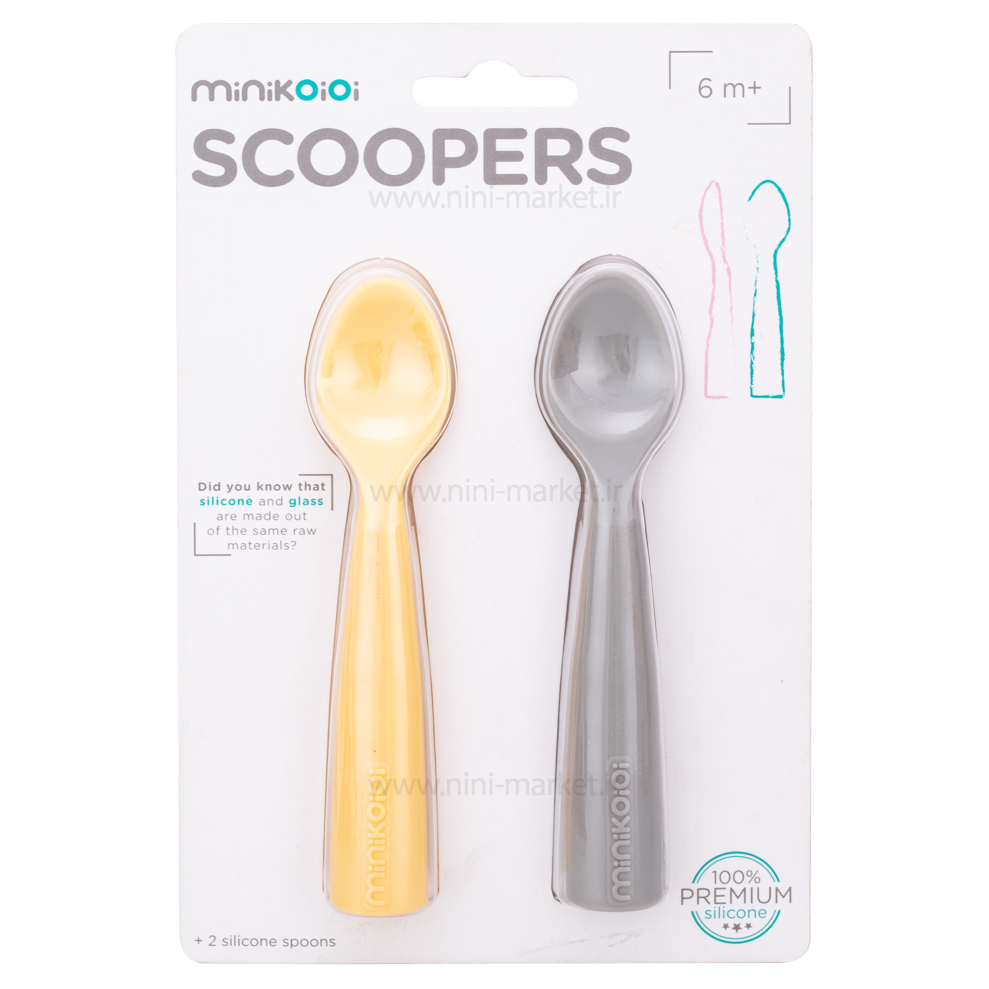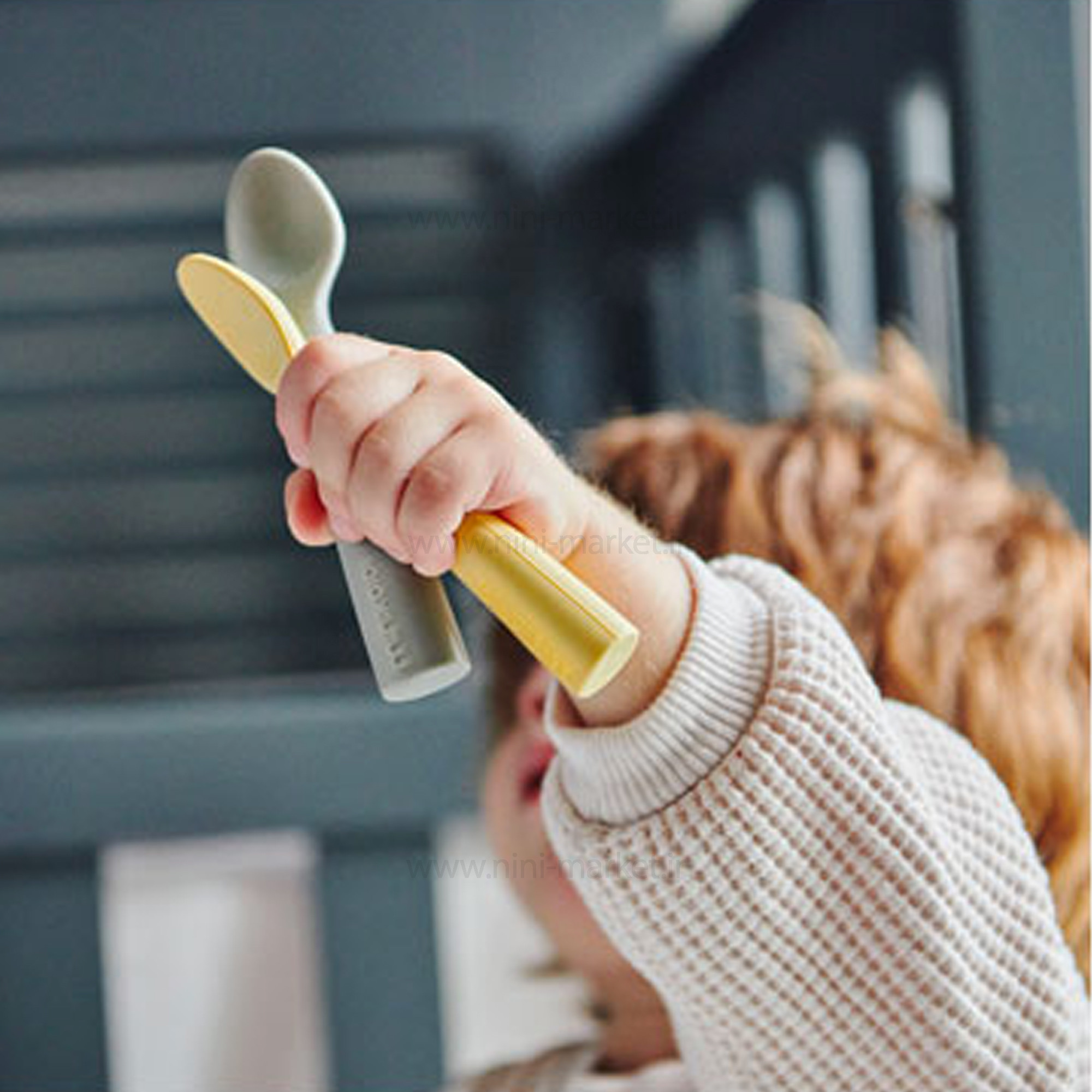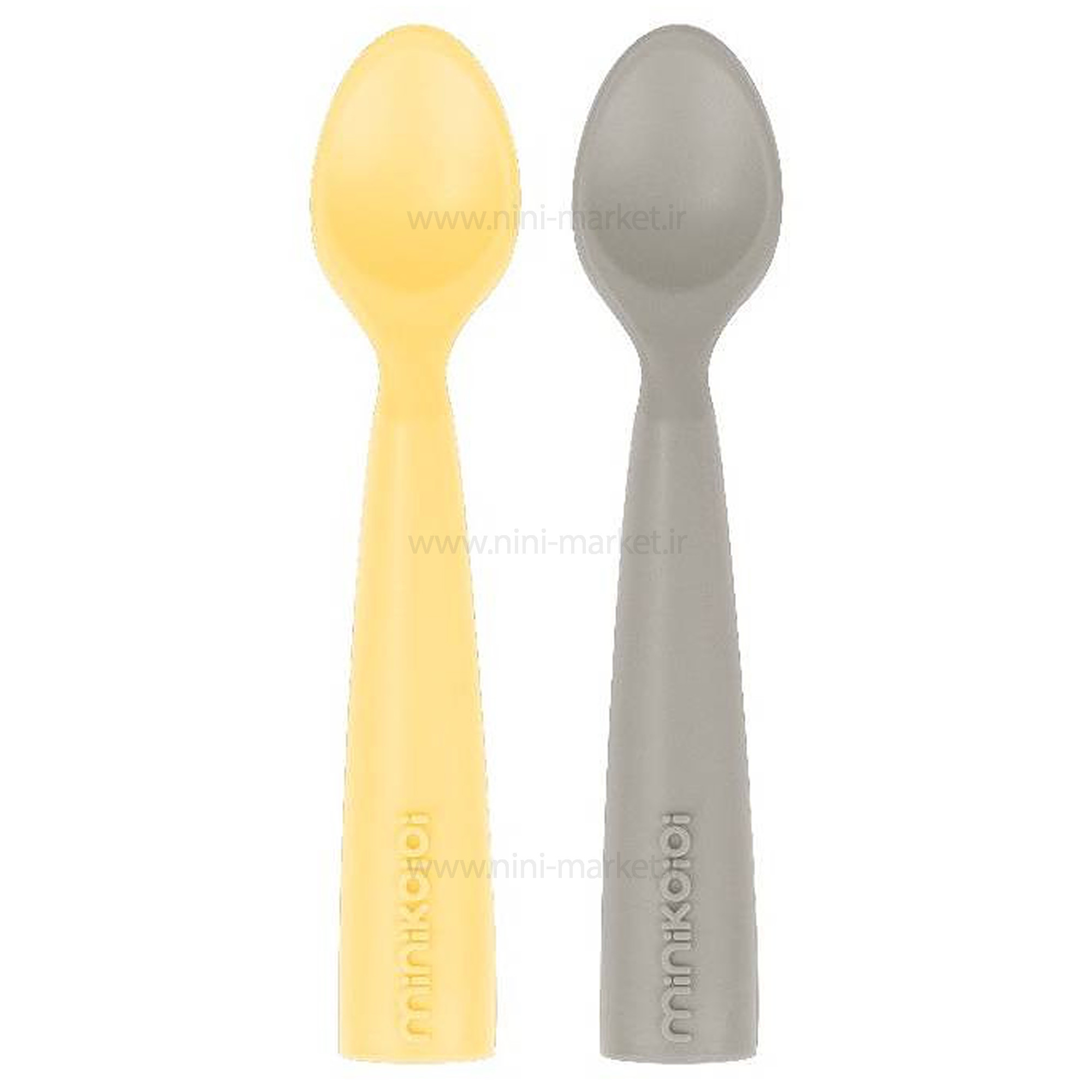 قاشق دو عددی رنگ طوسی زرد مینیک اوی وای Minik Oioi