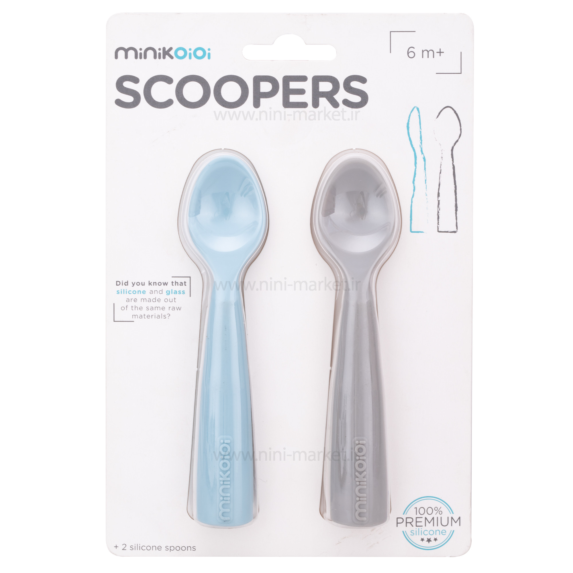 قاشق دو عددی رنگ طوسی آبی مینیک اوی وای Minik Oioi
