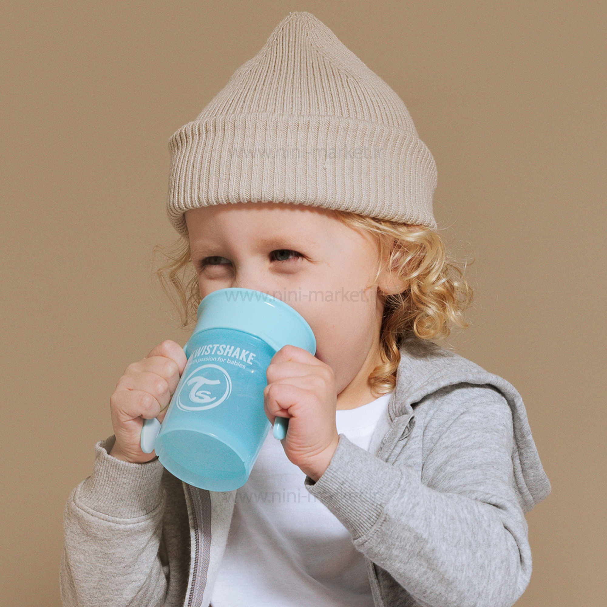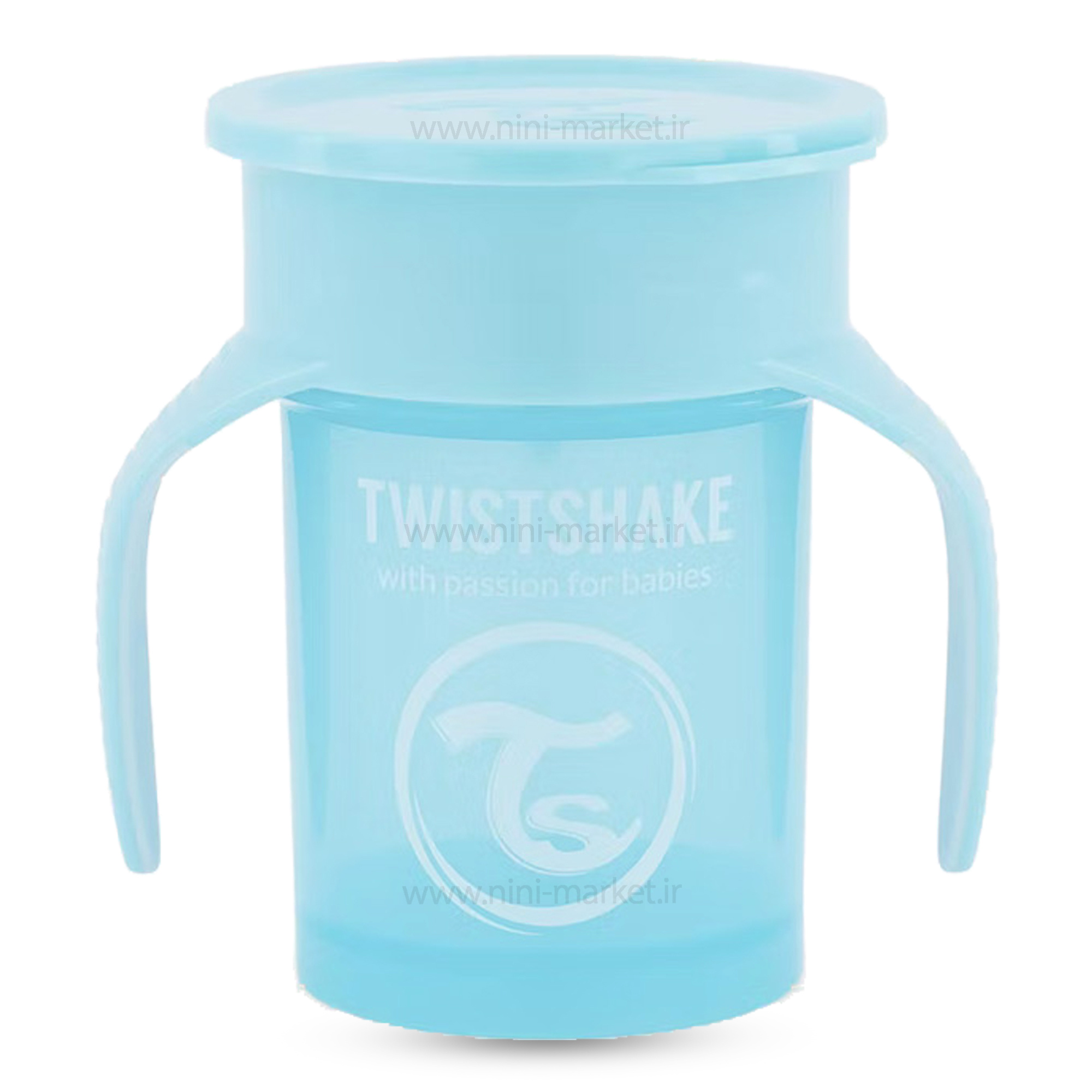 لیوان ۳۶۰ درجه تویست شیک Twistshake یک لیوان آموزشی است که به کودکان کمک میکند تا بهصورت مستقل بتوانند خودشان آب و مایعات را بنوشند. این لیوان برای کودکان بالای شش ماه مناسب است و به آنها کمک میکند تا بتوانند کمکم شیشه شیر را رها کرده و به طور مستقل با لیوان آب و آبمیوه بنوشند، سری لیوان از جنس سیلیکون و ۳۶۰ درجه است که سبب میشود تا کودک راحت از آن بنوشد.و چون ضد نشت و چکه است و میتوانید با خیال راحت آن را دست فرزند خود بدهید. بدنهٔ این لیوان شفاف است و میتوانید مشاهده کنید که چقدر مایعات در آن باقیمانده است.این محصول دارای درب پوش است که از آلودهشدن سر لیوان جلوگیری میکند. دهانهٔ بزرگ لیوان شستشوی آن را ساده کرده و همچنین دسته دار بودن محصول باعث شده که کودک به راحتی آن را به دست بگیرد.
