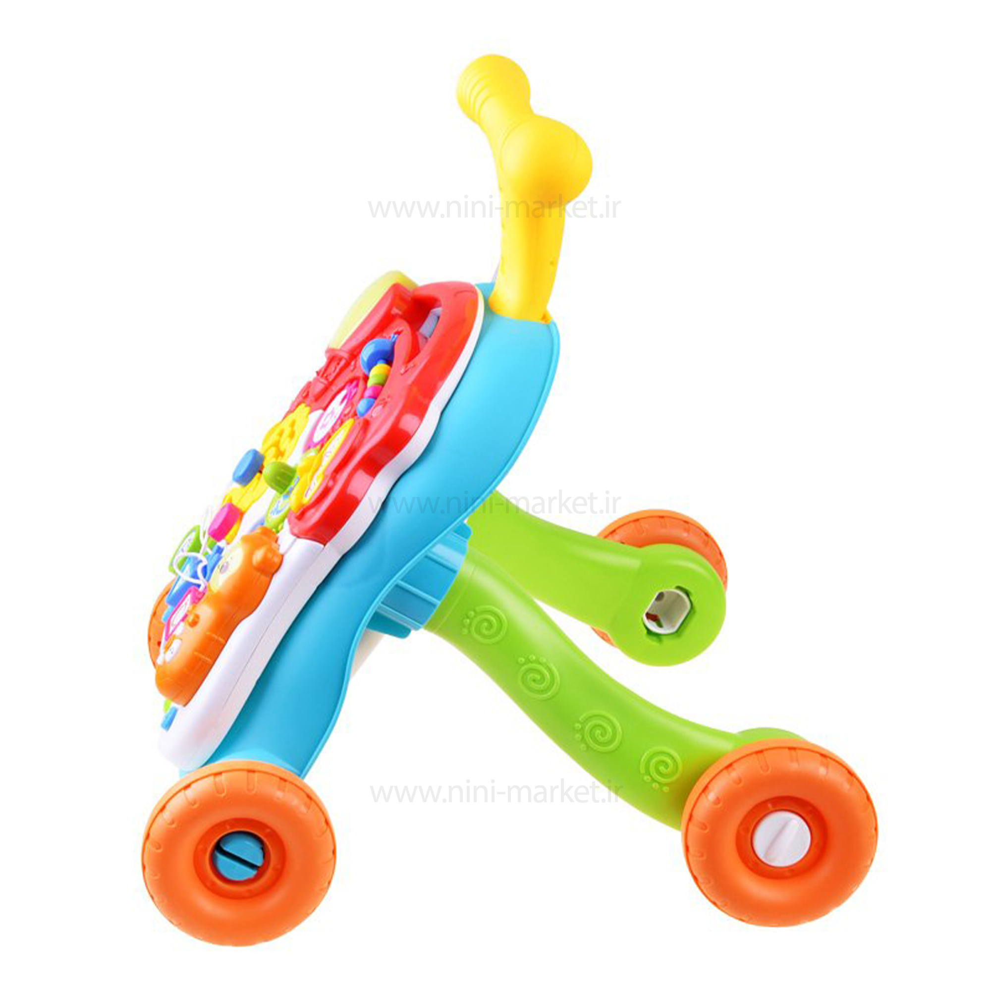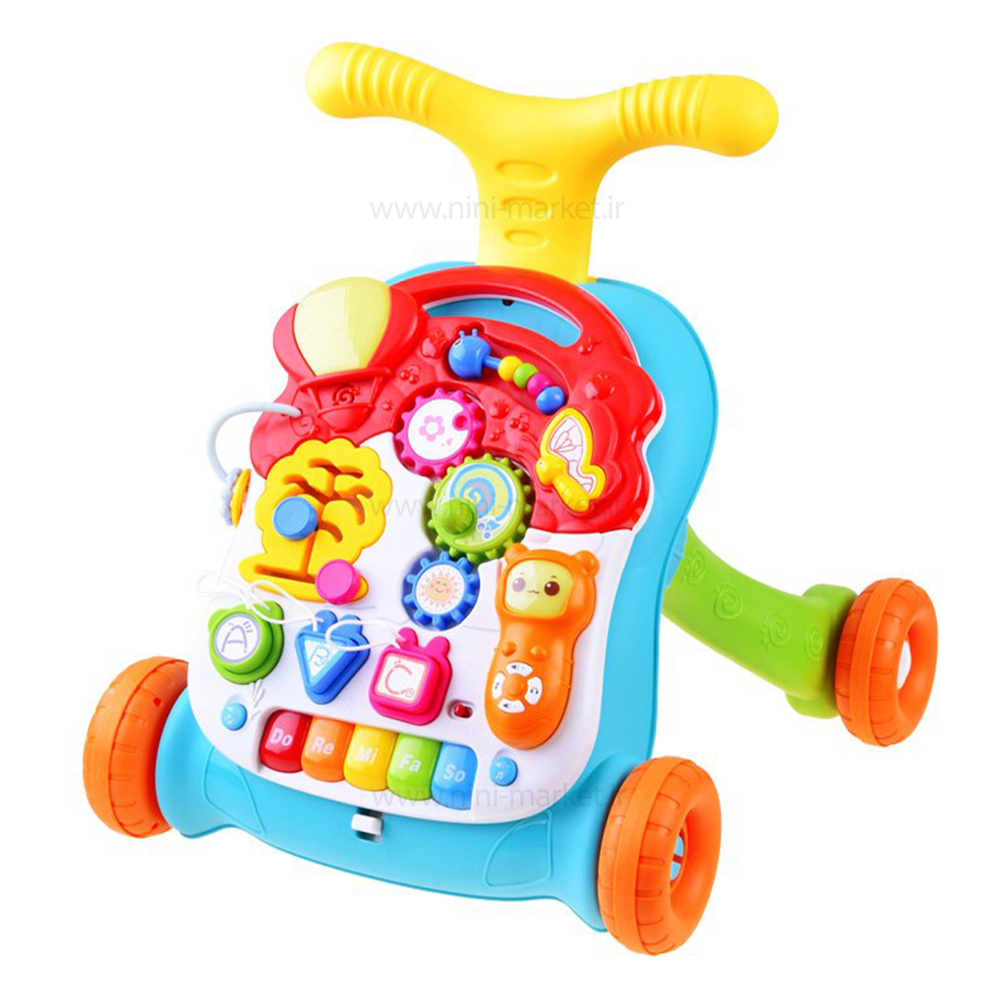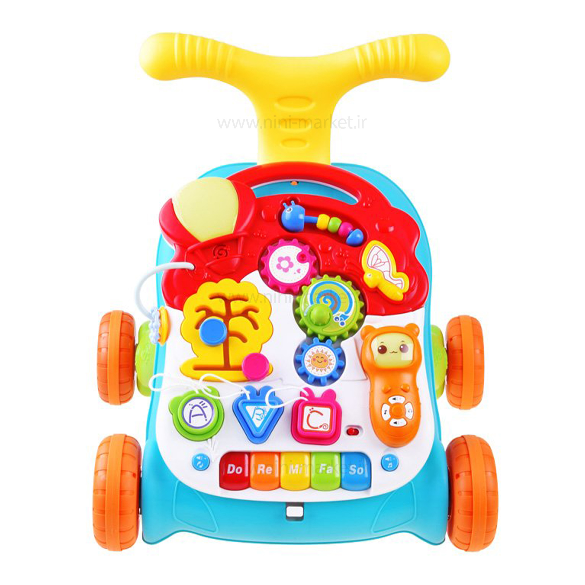 واکر موزیکال دوکاره یک وسیله بازی جالب با ترکیب رنگی شاد برای کودک دلبندتان است. روی بدنه این واکر طرح های و اشکال مختلف برای سرگرمی کودک تعبیه شده است. نوزاد بالای شش ماه در حالت نشسته می تواند با این وسیله های کوچک بازی کند و سرگرم شود. برای نوزادان بالای 9 ماه، این محصول یک واکر برای کمک به راه رفتن نوزاد است. این کار به تقویت ماهیچه های او و تعادل بهترش کمک می کند. پس از آنکه کودک وارد 12 ماهگی شد، این واکر مثل یک اسباب بازی هم همراه او برای راه رفتن است و هم سرگرم کننده. کمک به ایستادن و قدم زدن بهتر از ویژگی های استفاده از این واکر است.دسته ی این محصول مناسب برای به دست گرفتن کودک است.کودک نوپا با تکیه بر واکر و کاهش فشار به پاهای خود میتواند قدم بزند و مجذوب راه رفتن خود شود. به این ترتیب راه رفتن آسانتر شده و خطر ناشی از افتادن کاهش می یابد.اسباب بازی واکر موزیکال دوکاره با قابلیت تبدیل شدن به میز میباشددارای اسباب بازیهای متنوع برای سرگرمی کودک مانند پیانو چراغدار ، موبایل موزیکال ( قابل جداشدن)  ، مکعب های پازلی ( قابل جداشدن) .چرخ های این واکر دارای ترمز میباشددر ساخت این محصول از انواع رنگ های مهیج استفاده شده که به شناخت رنگ ها توسط کودک کمک می کند. چرخ های این واکر به راحتی حرکت می کند و مقاومت بالایی دارد.
