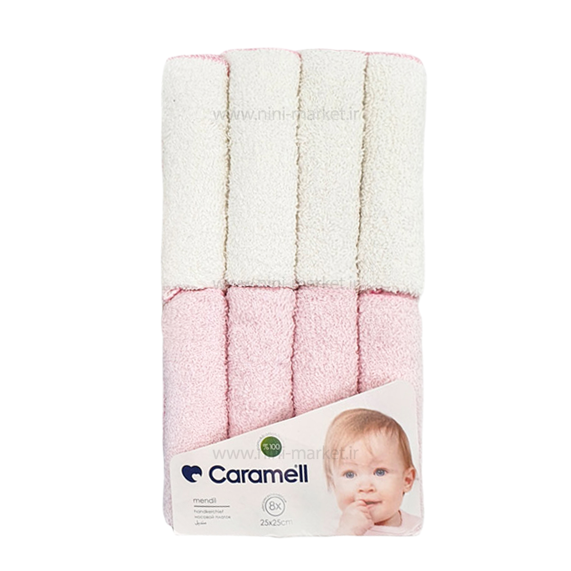 حوله دست و صورت 8 عددی رنگ سفيد صورتی کارامل Caramell